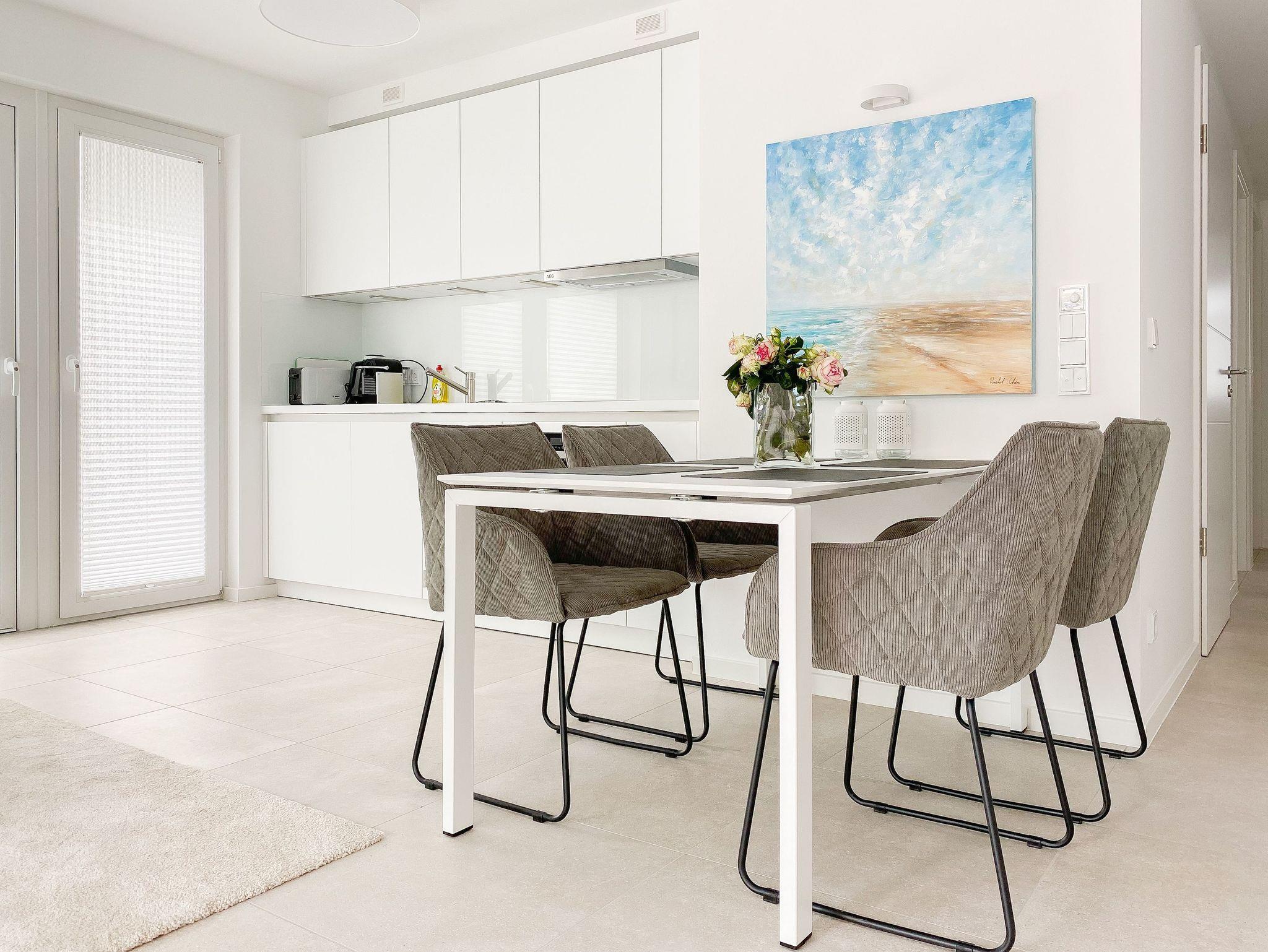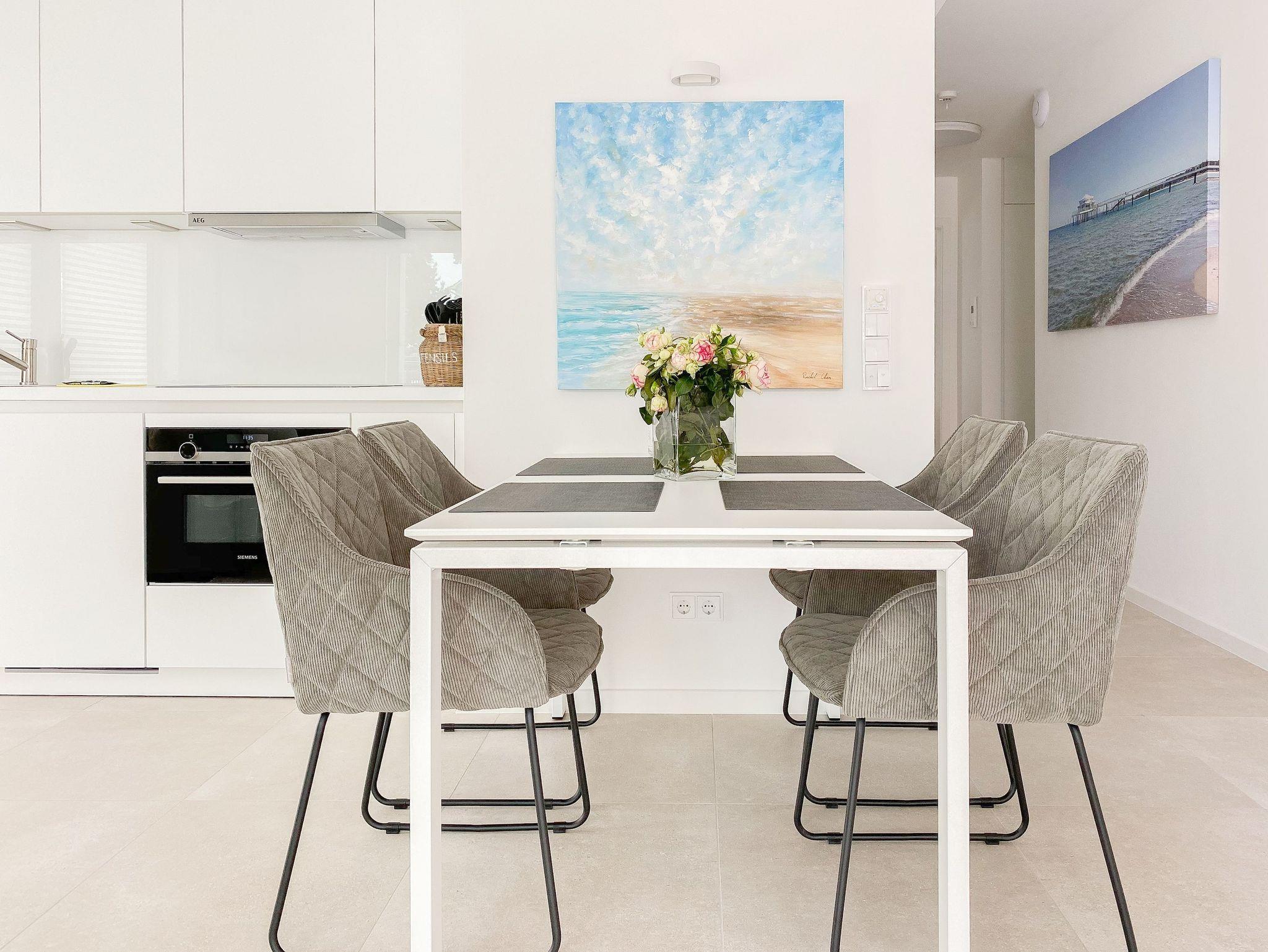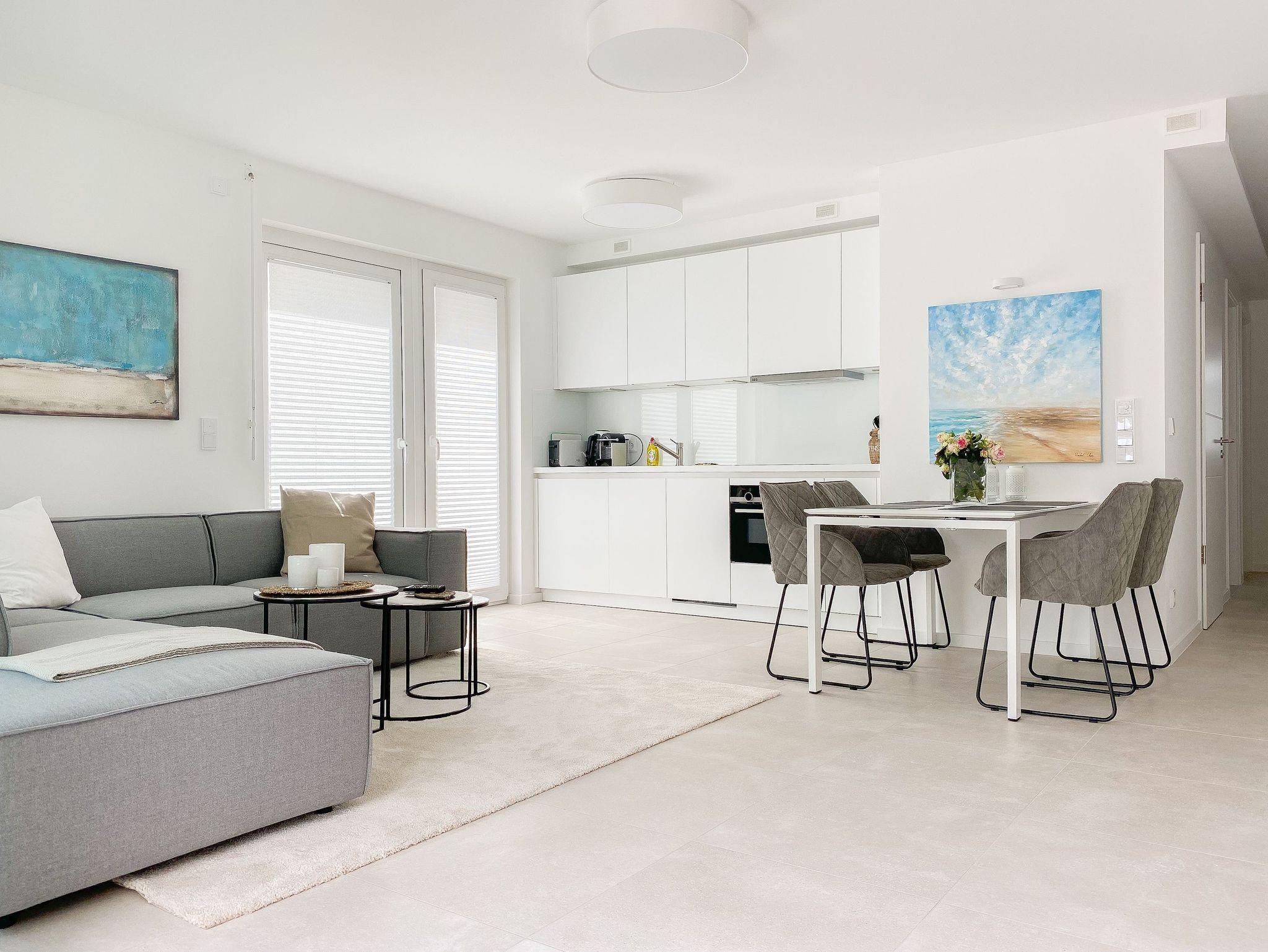 Zehn exklusive Wohnungen mit Balkonen und Terrassen zur Meerseite bieten traumhafte Ausblicke bis auf die Ostsee und jeglichen Komfort zur Gewährleistung eines hohen Wohnstandards in schönem Ambiente. Alle Wohnungen verfügen über moderne Bäder mit Walk In Duschen, Fußbodenheizung und elektrische Außenjalousien mit einstellbaren Lamellen, die gleichermaßen für Tageslicht und Privatsphäre sorgen.