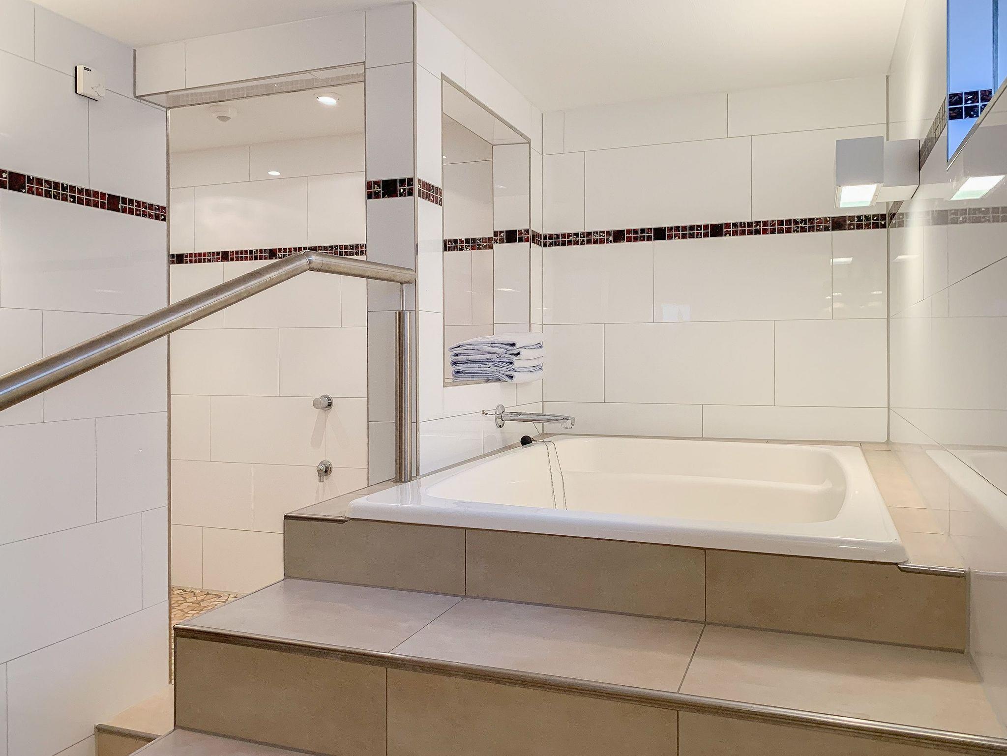 Entspannen können Sie im hauseigenen Wellnessbereich mit Sauna (Nutzung gegen Gebühr), Tauchbecken, Dusche, Crosstrainer und Kicker, der unseren Gästen zur gemeinschaftlichen Nutzung zur Verfügung steht. Ebenso Waschmaschine und Trockner (Münzgeräte).[nbsp] Ein fester PKW Stellplatz und Fahrradständer(außen) befinden sich[nbsp] direkt auf dem Grundstück.