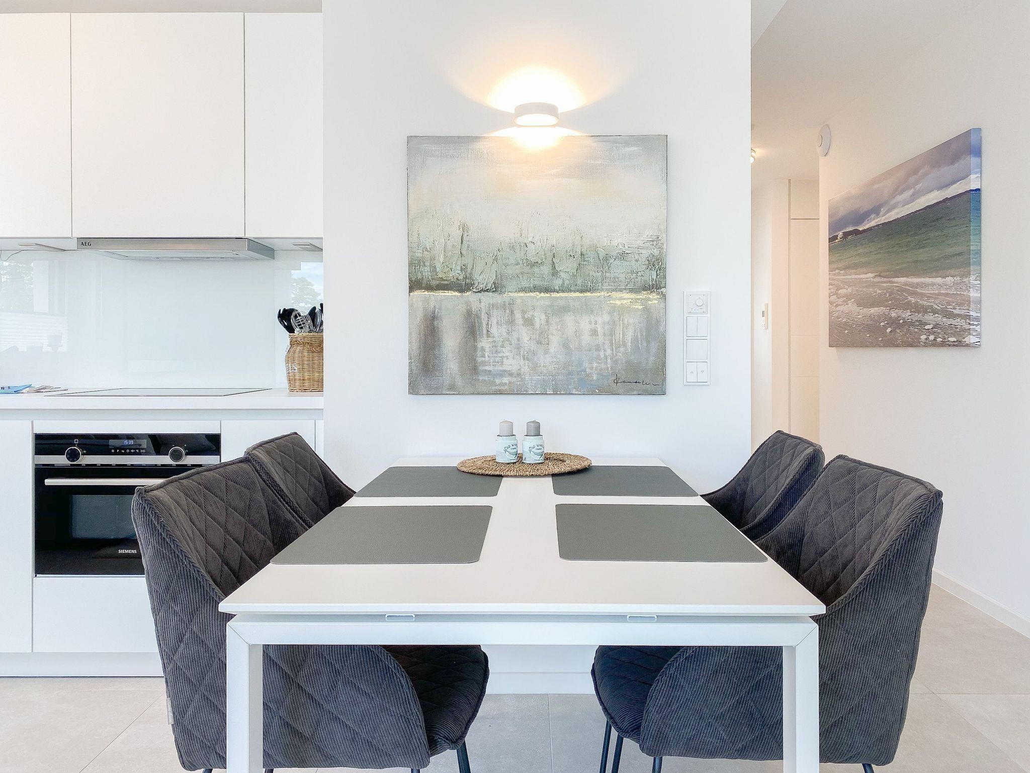 Zehn exklusive Wohnungen mit Balkonen und Terrassen zur Meerseite bieten traumhafte Ausblicke bis auf die Ostsee und jeglichen Komfort zur Gewährleistung eines hohen Wohnstandards in schönem Ambiente. Alle Wohnungen verfügen über moderne Bäder mit Walk In Duschen, Fußbodenheizung und elektrische Außenjalousien mit einstellbaren Lamellen, die gleichermaßen für Tageslicht und Privatsphäre sorgen.