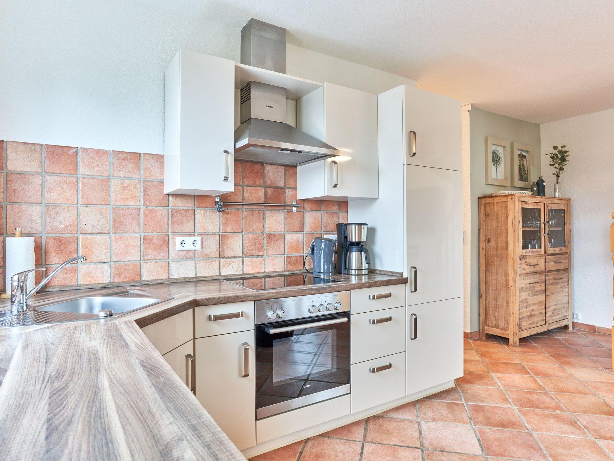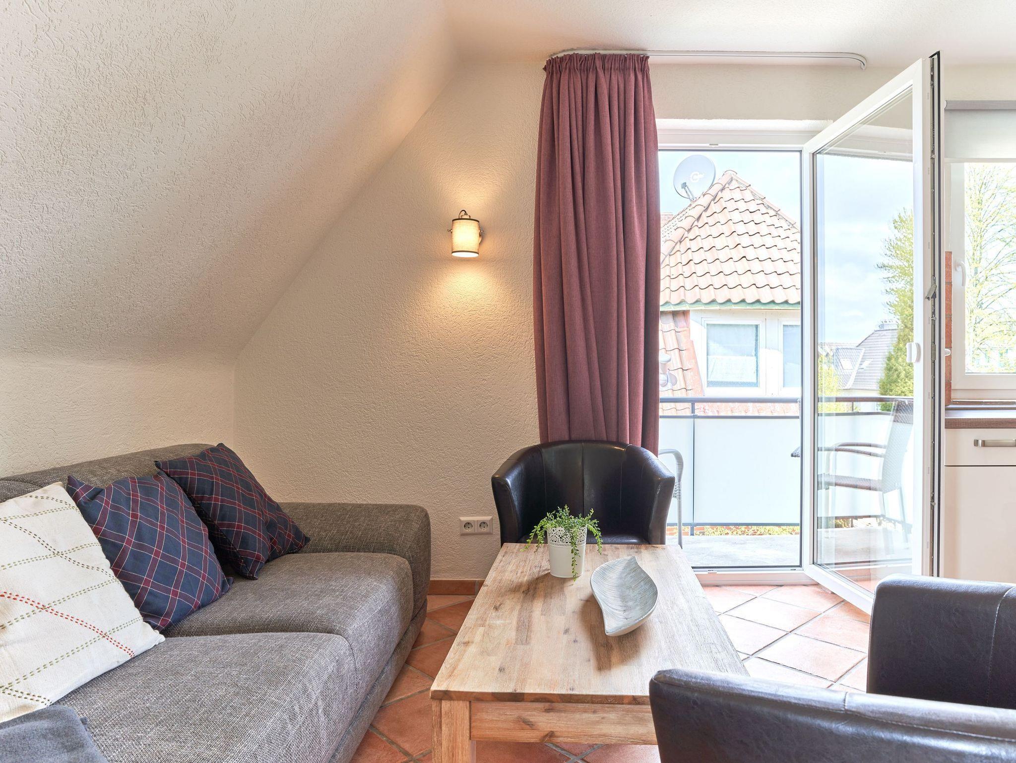 Dieses in 2022 umfassend renovierte und großzügig geschnittene Apartment über zwei Ebenen teilt sich auf in Wohnbereich mit offener Küche, Badezimmer, Gäste-WC, 2 Schlafzimmer und möblierten Balkon. Im Wohnbereich finden Sie einen großen Essplatz, Sitzecke, Flachbildschirmfernseher und die angrenzende, komplett ausgestattete Küche mit Geschirrspüler und neuer Filter Kaffeemaschine. Im komplett neu gestalteten Badezimmer finden Sie eine begehbare Dusche, Lichtspiegel, neue Badobjekte, zwei Waschbecken mit Unterschränken sowie einen Badheizkörper für Handtücher. Das zusätzliche WC und die beiden Schlafräume finden Sie im oberen Bereich der Wohnung. Ein Schlafzimmer ist mit einem Doppelbett und extra Fernseher eingerichtet, das zweite Schlafzimmer bietet drei Einzelbetten und einen kleinen, begehbaren Kleiderschrank. Verdunkelungsgardinen sorgen in Wohn- und Schlafzimmern für eine gemütliche Atmosphäre und ungestörten Schlaf.