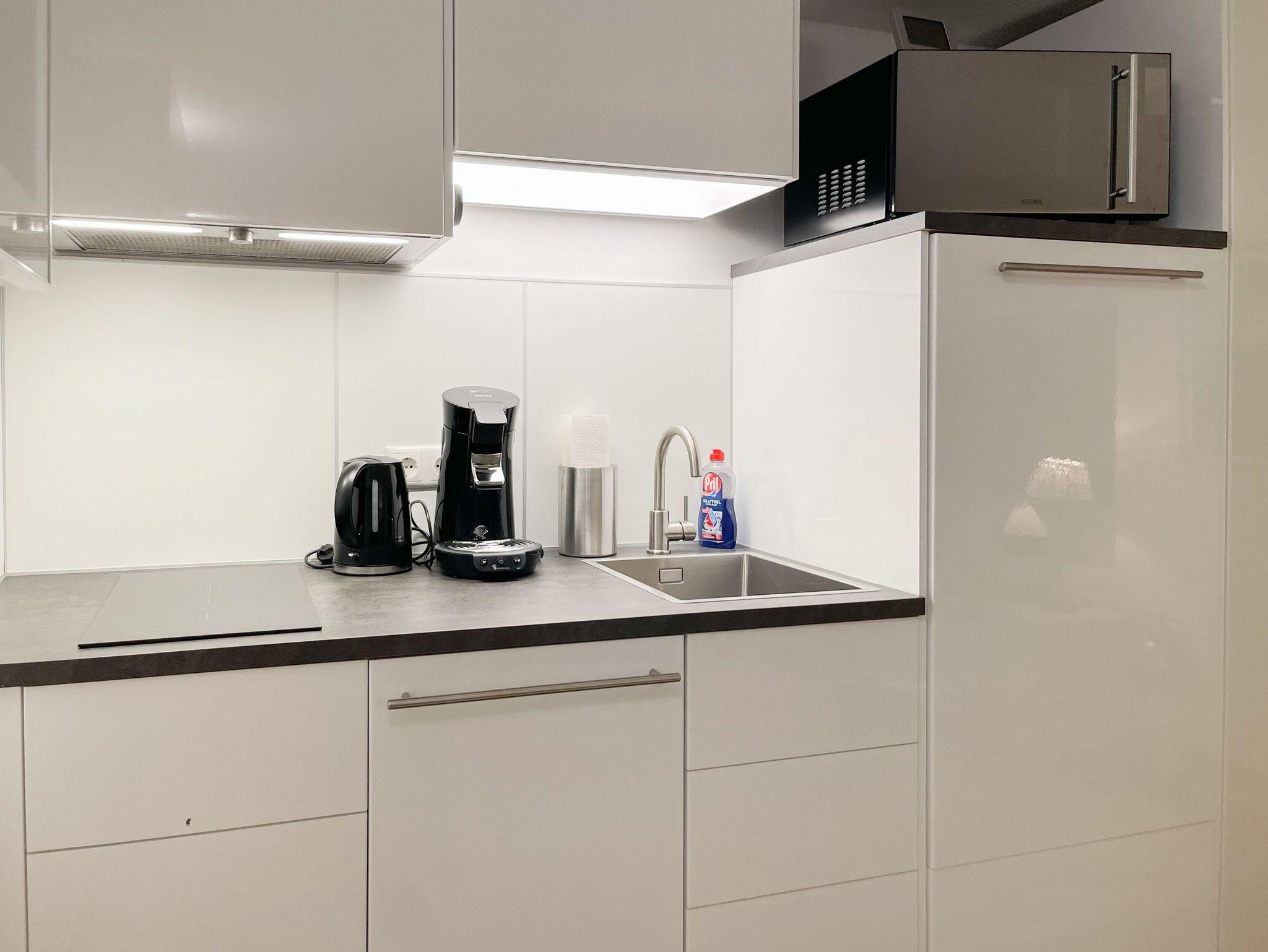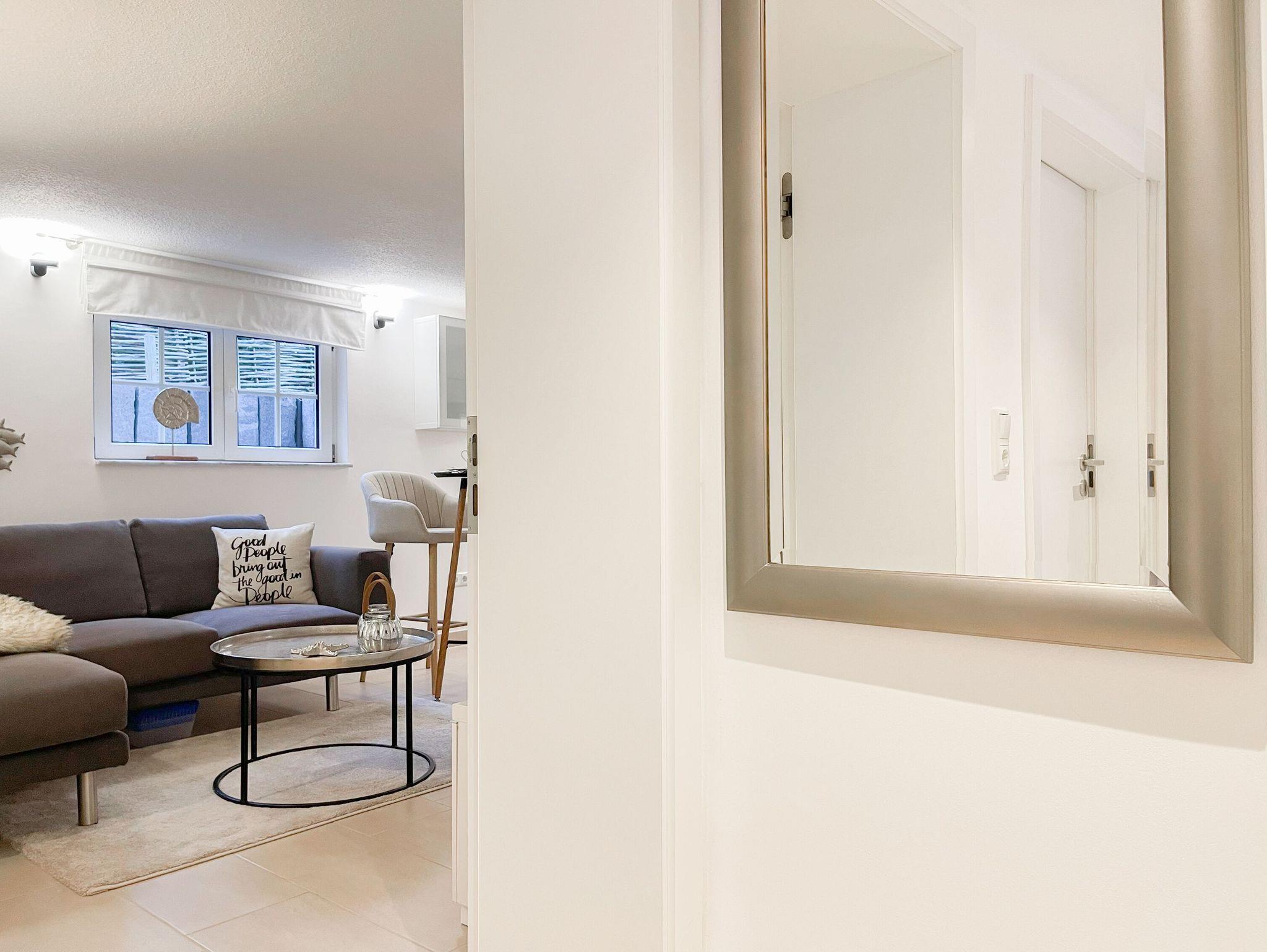 Frisch und aufwendig renoviert in 2024, erwartet Sie eine mit vielen liebevollen Details eingerichtete Ferienwohnung, die im Souterrain liegt und über einen eigenen, privaten Eingang verfügt. Der Wohnbereich ist mit einem bequemen Sofa zum Relaxen sowie einem TV ausgestattet. WLAN steht selbstverständlich zur Verfügung. Die offene Küchenzeile verfügt über Spülmaschine,[nbsp] Mikrowelle, Ceranfeld, Kühlschrank und Gefrierfach. Der Essbereich ist mit einem Bartisch und 2 Stühlen für 2 Personen ausgerichtet. Das separate kleine Schlafzimmer ist mit einem Boxspringbett (140x200) eingerichtet. Das moderne Bad umfasst eine Walk-In Dusche, Waschtisch, Spiegel[nbsp] Beleuchtung, Handtuchtrockner und WC.