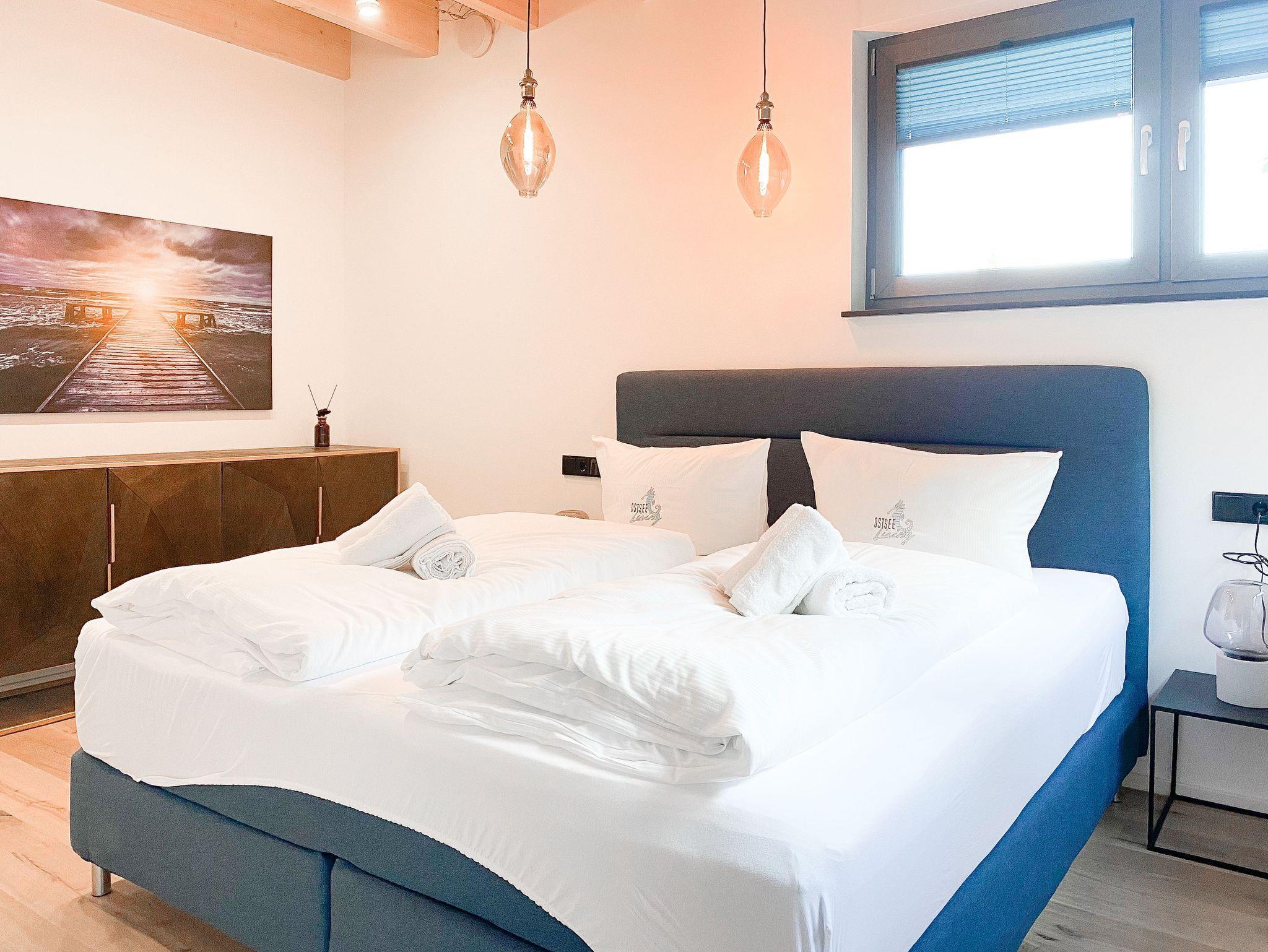 Das traumhafte Penthouse gewährleistet einen hohen Wohnstandard in einem herrlichen Ambiente und bietet jeglichen Komfort auf 100 qm Wohnfläche für 4 Personen. Das Penthouse befindet sich im 2. Obergeschoss und verfügt über zwei separate Schlafzimmer mit Boxspringbetten (180x200), TV und Plissees zur Abdunkelung der Räumlichkeiten (keine vollständige Verdunkelung) sowie zwei exklusive Tageslichtbäder ensuite mit Walk In Duschen. Der überaus großzügige Wohnbereich mit bodentiefen Fensterflächen zum Südbalkon, ist mit einem XXL Sofa und TV ausgestattet. WLAN steht selbstverständlich zur kostenlosen Nutzung zur Verfügung. Der anschließende Essbereich, eingerichtet mit Esstisch, Stühlen und Sofa, lädt zum gemütlichen Beisammensein ein und die hochmoderne Wohnküche ist selbstverständlich bestens ausgestattet. Entspannt wird zu jeder Jahreszeit in der im Bad integrierten Sauna.