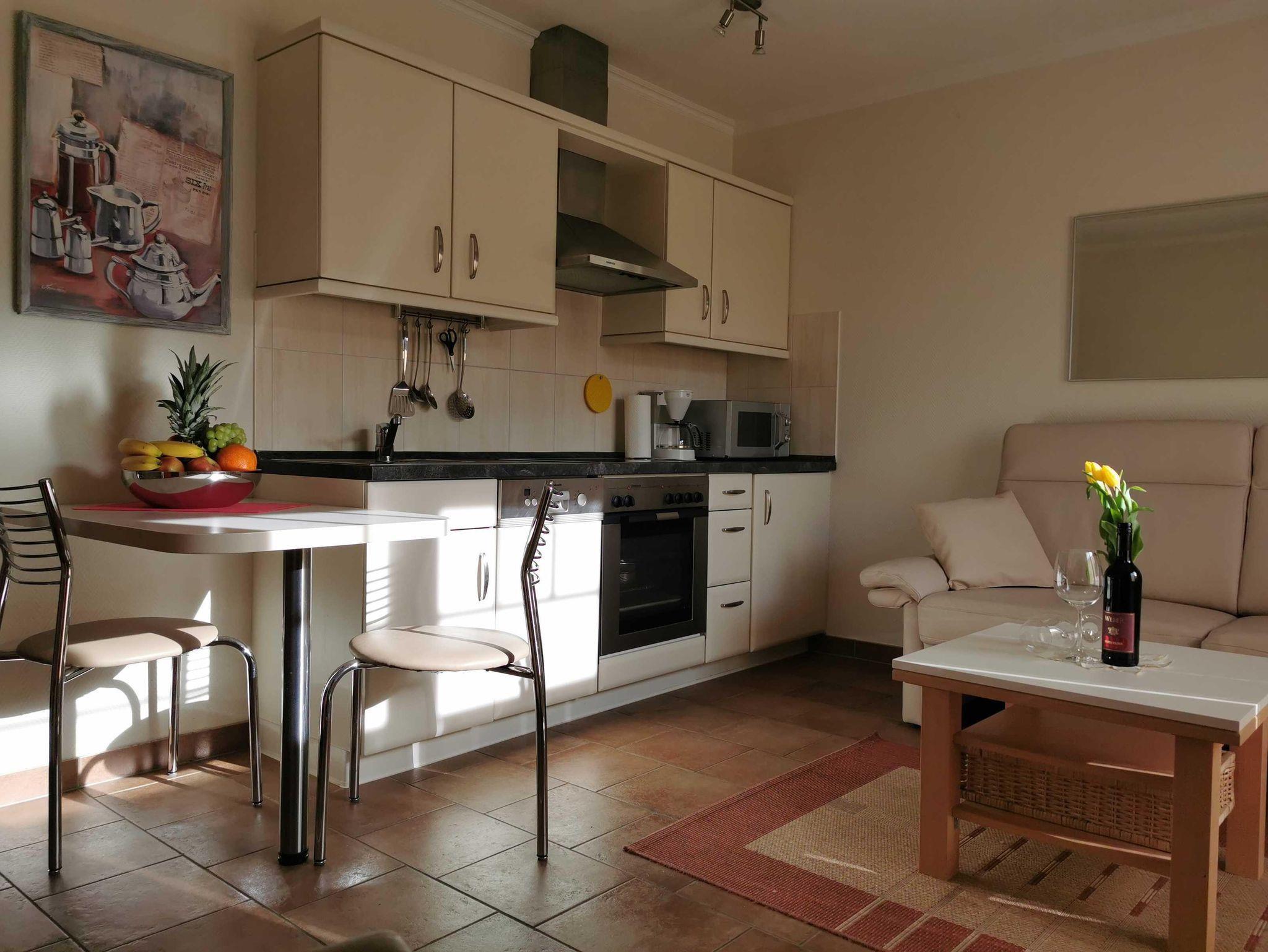 Die Wohnung befindet sich im Erdgeschoss am Kurpark, Kurparkstr. 7, optimale Appartment-Aufteilung ca.44m². Sie ist neuwertig, voll möbliert und mit allem Komfort wie zwei Fernseher mit Radio u. Musiksender versehen. Wohn- und Essbereich mit Ausgang auf die abgeschlossene möblierte Süd-West Sonnenterrasse mit Strandkorb u. Markiese, Schlafzimmer, Flur, Duschbad, Einbauküche im Wohnbereich (Geschirrspüler, Backofen, Ceranfeld, Gefrierfach, Mikrowelle usw.) Alle Räume Terrakottafliesen, moderne Einrichtung, TV-Überwachung, Kabel-TV, Wlan, Aufzug, Fahrradabstellplatz. Im Haus befindet sich ein Sauna-Wellnessbereich, sowie Waschmaschine und Trockner. Unsere Preise variieren, je nach Saison, zzgl. Endreinigung, zubuchbar Wäschepaket Parkplatz Hund. Diese Ferienwohnung ist für 2 Personen, modern und mediterran, eingerichtet.