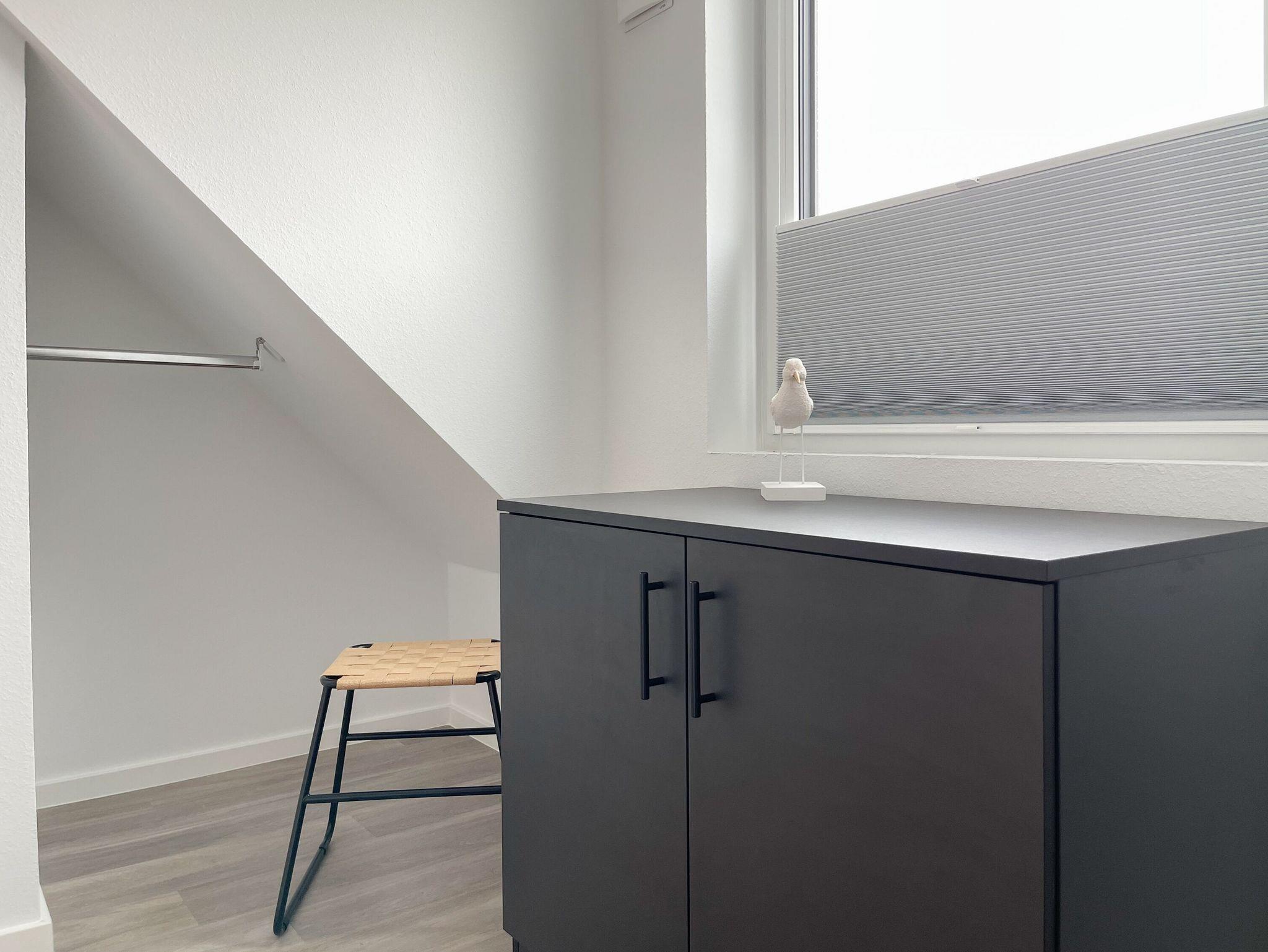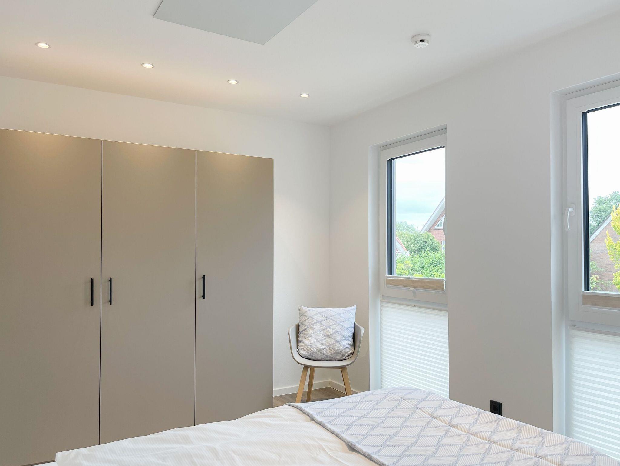 Es erwartet Sie eine wunderschönes Ferienhaus im skandinavischen Stil. Sonnige Räumlichkeiten und die äußerst hochwertige Einrichtung garantieren einen hohen Wohnstandard in einem schönen Ambiente. Mit 4 Schlafzimmern, einem exklusiven Bad mit Walk In Dusche, Radio und Sauna sowie einem zusätzlichen Gäste WC, bietet das Hygge Hus auf über 100 qm Wohnfläche ausreichend Raum für 6 Personen, um einen erholsamen Ostseeurlaub in Strandnähe zu verleben. Im Erdgeschoss erwartet Sie ein lichtdurchfluteter Wohn- Essbereich, großzügig geschnitten und hochwertig möbliert. Die integrierte Einbauküche in perfekter Ausstattung eignet sich hervorragend für gemeinsames Kochen. Die vorgelagerte Terrasse in Südwestausrichtung ist mit Gartenmöbeln und einem Strandkorb ausgestattet. Im Eingangsbereich befindet sich die Garderobe und ein modernes Gäste WC mit Fenster. Im Obergeschoss gibt es zwei separate Schlafzimmer mit Boxspringbetten (180x200 und 140x200), TV und Kleiderschrank. Das hochwertige Wellnessbad mit großzügiger Walk-In Dusche und integrierter Sauna befindet sich ebenfalls im Obergeschoss. Die Schlafzimmer 3 und 4 befinden sich im Dachgeschoss und sind jeweils mit Boxspringbetten (120x200) und Kommode eingerichtet. Alle Fenster sind mit elektrischen Außenjalousien versehren, außer[nbsp] 1 Schlafzimmer im Dachgeschoss, das mit Verdunkelungsplissees ausgestattet ist. Waschmaschine und Trockner sind im separaten Technikraum neben der Terrasse untergebracht.
