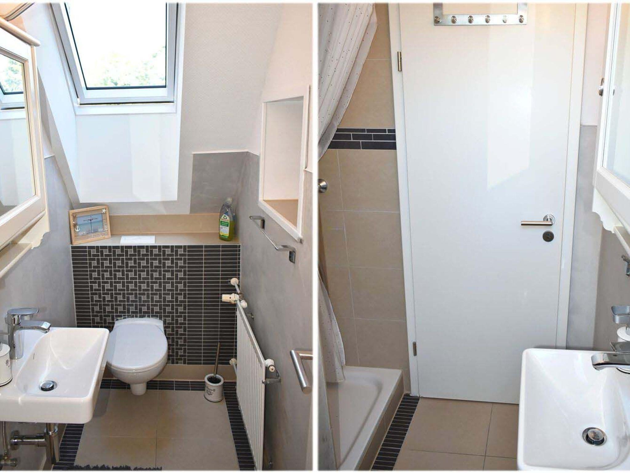 Bad 2: Dusche, Spiegelschrank, Waschbecken, WC