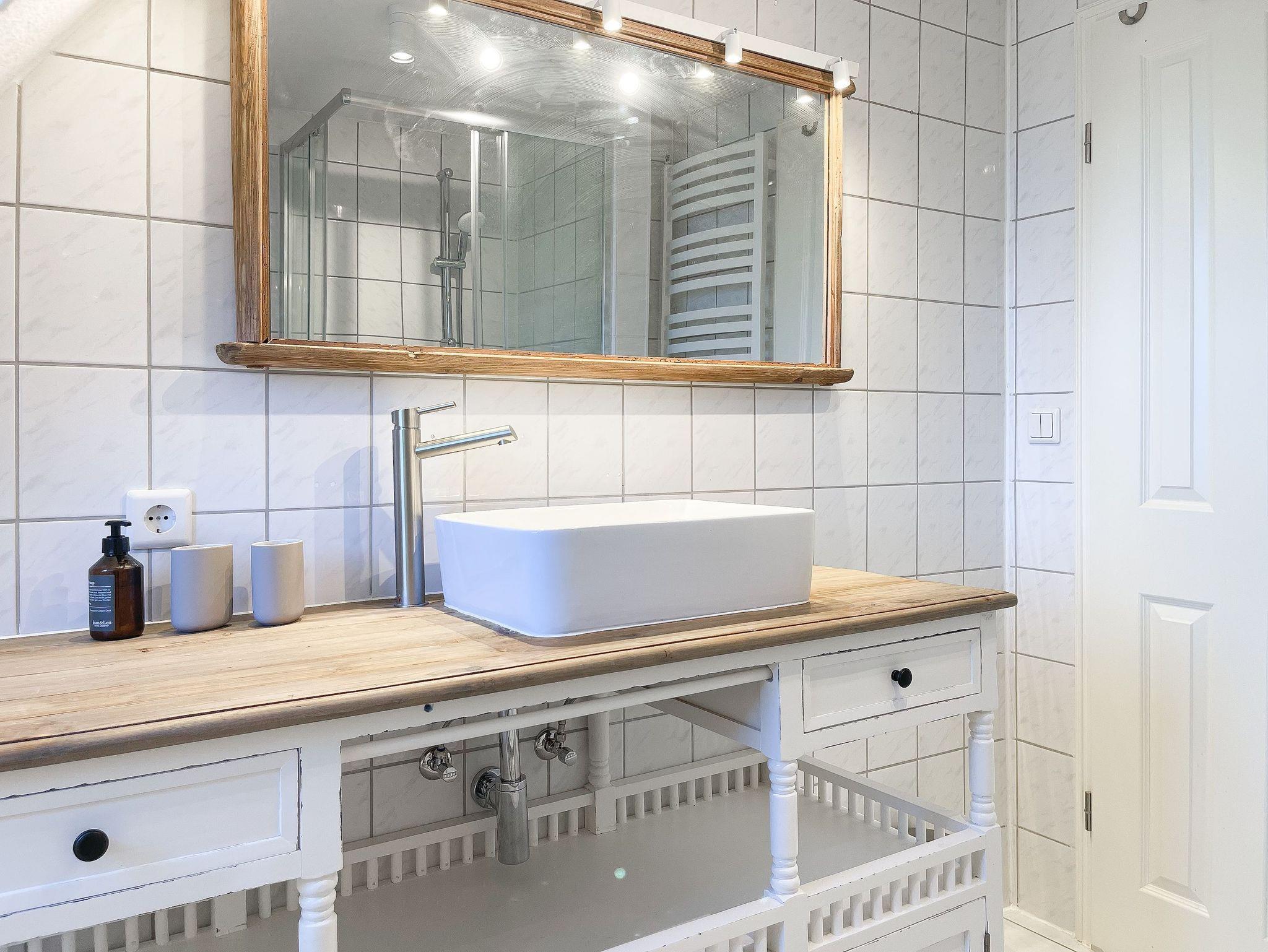 Strandflair pur! Das renovierte und mit viel Liebe zum Detail ausgestattete Ferienhaus Strandbude bietet tolles Strandambiente, um einen entspannten Urlaub in Ostseenähe zu verleben. Natürliche Materialien und die äußerst geschmackvolle Einrichtung des Altbaus sorgen für eine herrliche Wohnatmosphäre im Hampton Style. Es erwartet Sie ein charmanter Wohnbereich mit einem hochwertigen Sofa, Sessel und XL TV. Auf der vorgelagerten Terrasse 1 können sie bereits die ersten Sonnenstrahlen beim Morgenkaffee genießen. Die anschließende Küche ist gut ausgestattet und der geschmackvoll gestaltete Essbereich ist ebenso Treffpunkt für gemütliches Beisammensein wie auch die[nbsp][nbsp]anschließende Terrasse 2 mit Sonne satt. Die Außenbereiche sind mit Gartenmöbeln und einem Strandkorb ausgestattet. Im Obergeschoss befindet sich ein Schlafzimmer mit einem Boxspringdoppelbett (180x200), Kleiderschrank und TV und ein weiteres Schlafzimmer mit einem Einzelbett, kleinem Kleiderschrank und einem Schreibtisch. Im Spitzboden (Deckenhöhe 1,80 m), der über eine Raumspartreppe zu erreichen ist, befindet sich das 3. Schlafzimmer mit einem Doppelbett (180x200) und eine Kleiderstange auf Rollen. Die Fenster der Schlafräume lassen sich verdunkeln. Ein Bad mit Badewanne befindet sich im Erdgeschoss, das zweite Bad mit Dusche im Obergeschoss. WLAN steht selbstverständlich zur kostenlosen Nutzung zur Verfügung. Eine Waschmaschine und ein Trockner sind im Keller untergebracht. Ein Parkplatz und ein abschließbarer Fahrradschuppen befinden sich direkt am Haus.