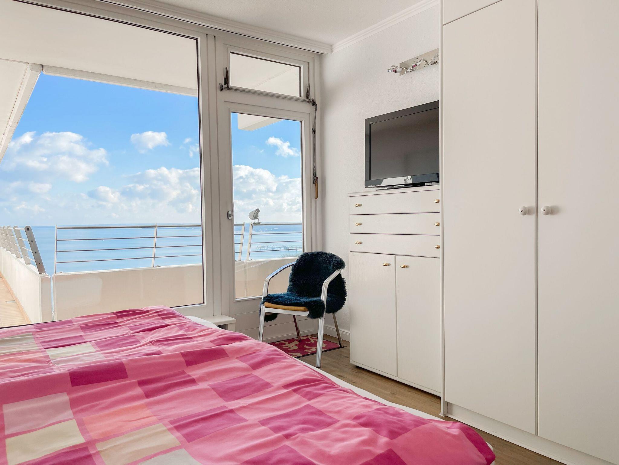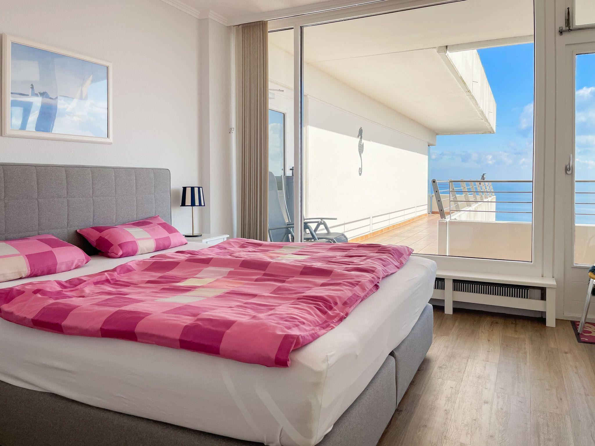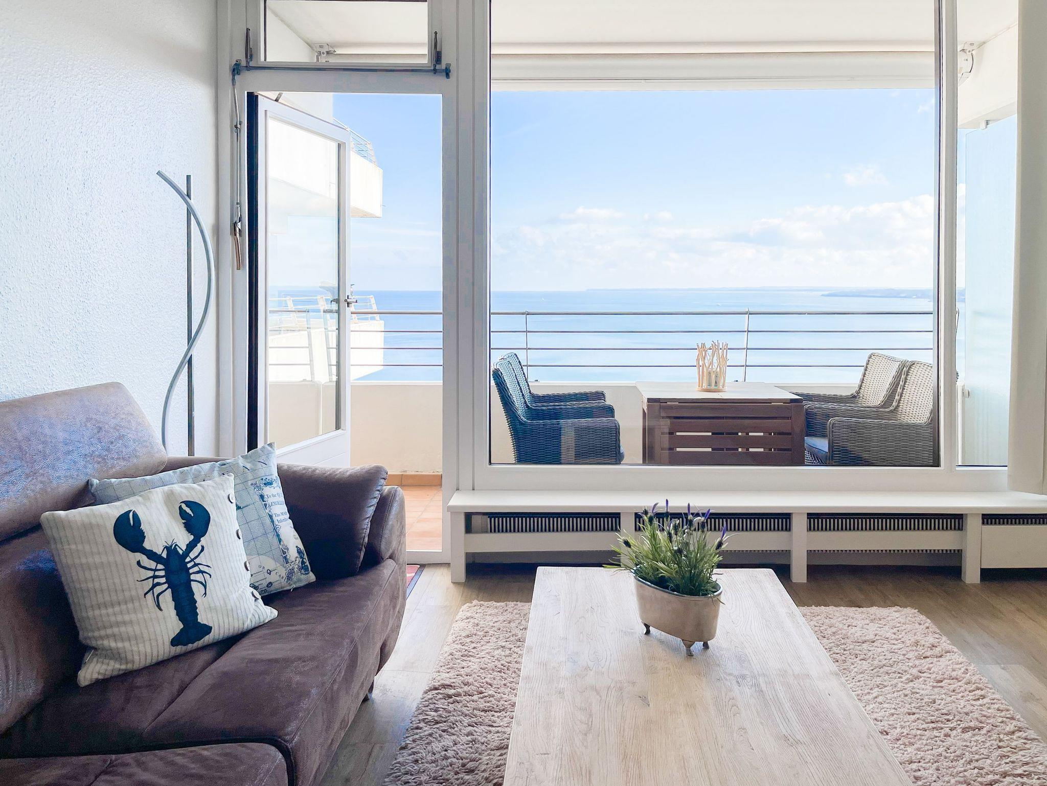 Die Ferienwohnung Traumblick bietet auf 75 qm hohen Wohnkomfort mit einer traumhaften Aussicht über die gesamte Lübecker Bucht. Der weitläufige Sonnenbalkon[nbsp] ist mit Gartenmöbeln, Sonnenstühlen und einer Markise ausgestattet und sowohl vom Wohnbereich als auch vom Schlafzimmer zu erreichen. Genießen Sie tagsüber das traumhafte Meerblickpanorama aus nahezu jedem Raum und bei Dunkelheit die besondere Atmosphäre der beleuchteten Lübecker Bucht. Der großzügige Wohn- Essbereich verfügt neben dem phantastischen Meerblick über eine hochwertige Einrichtung. Es steht ein gemütliches XL Sofa, TV und WLAN zur Verfügung sowie ein integriertes Schrankbett (160x200). Der anschließende Essbereich bietet ausreichend Platz für 4 Personen und die offene Einbauküche ist bestens ausgestattet. Das geräumige Schlafzimmer bietet ebenfalls einen wunderschönen Meerblick und ist mit einem Boxspringbett (180x200), einem weiteren TV sowie einem Kleiderschrank eingerichtet, der ausreichend Stauraum für die Urlaubsgarderobe bietet. Das moderne Bad verfügt über Waschtisch, Dusche und WC.
