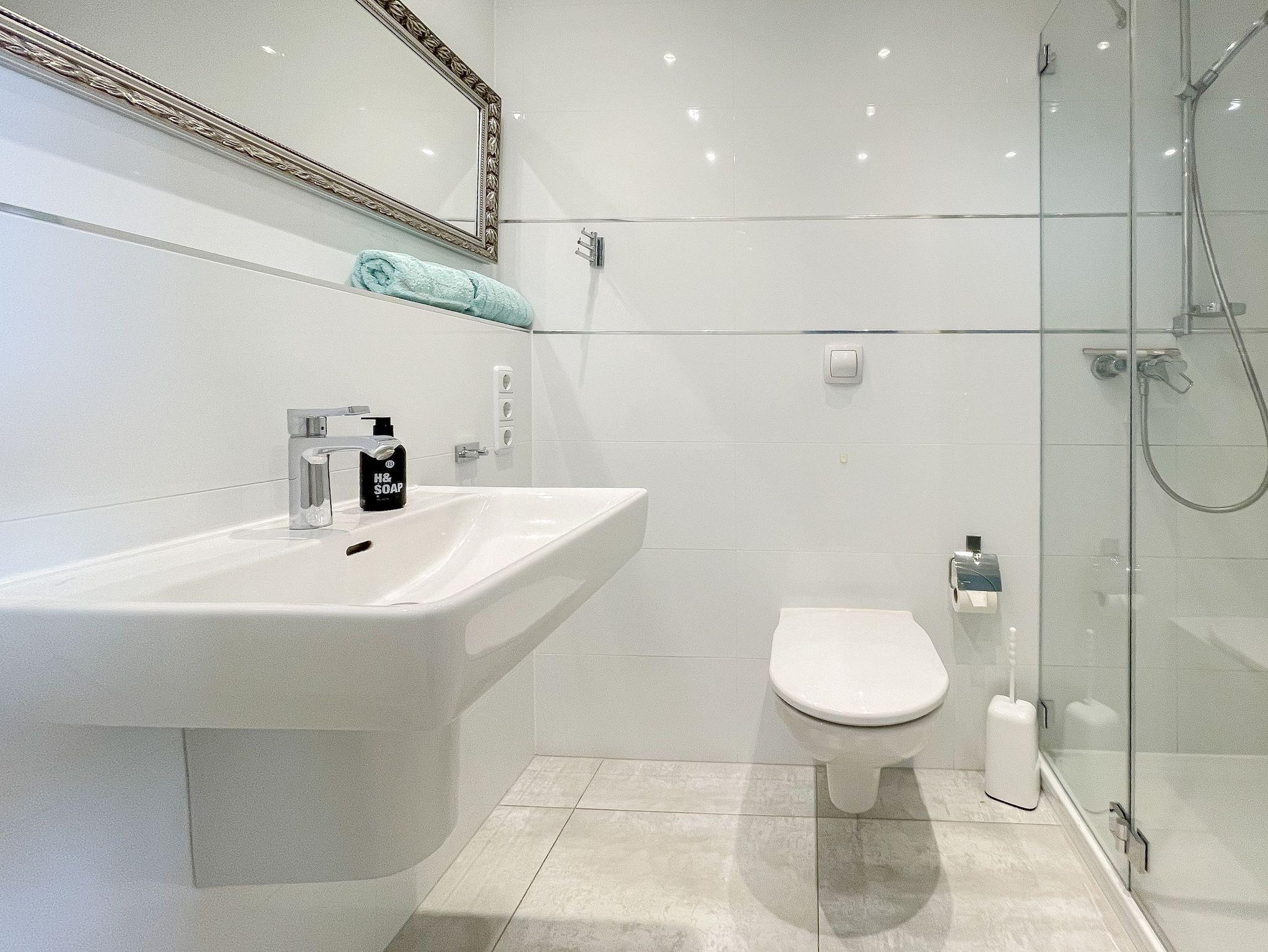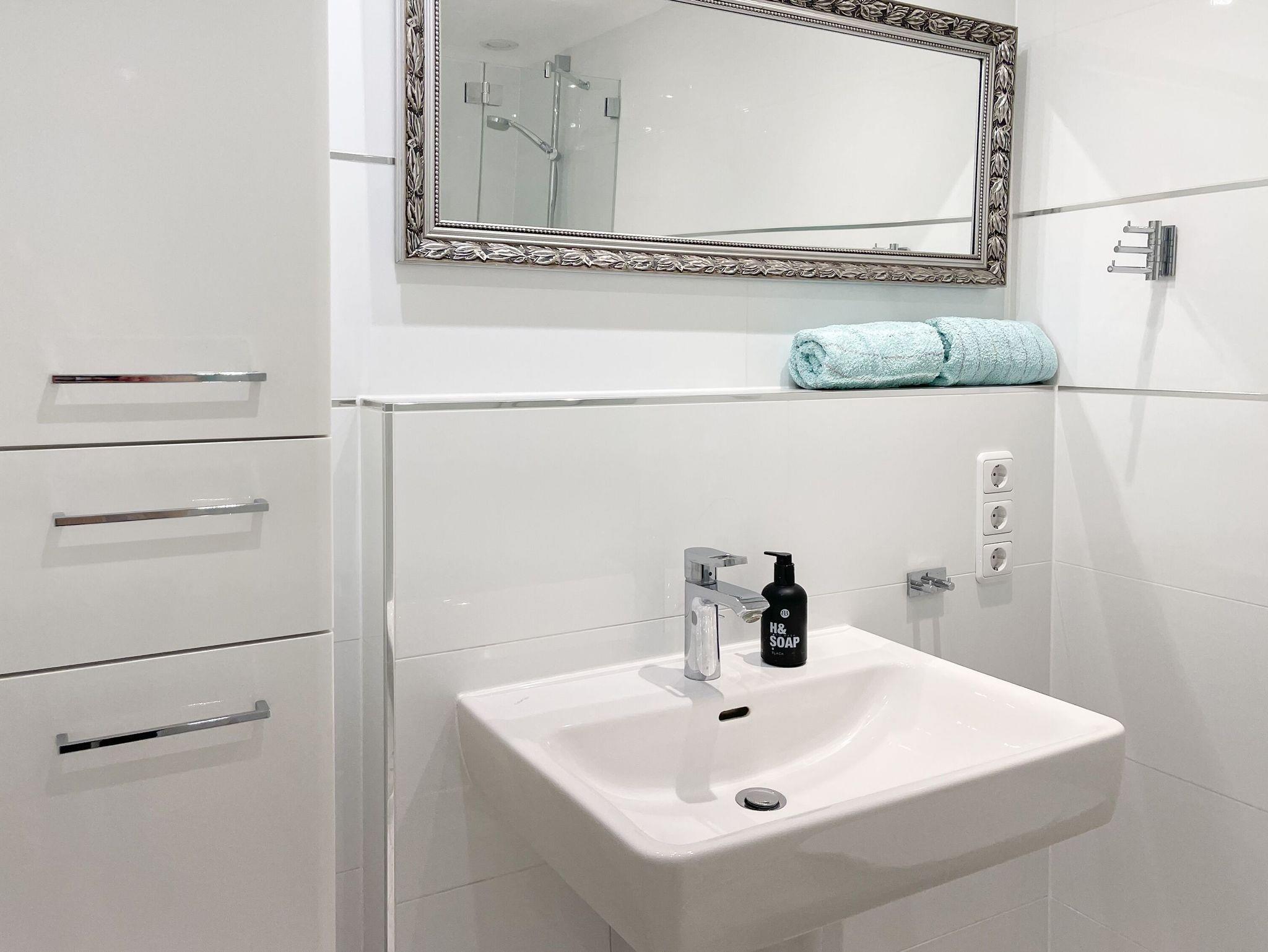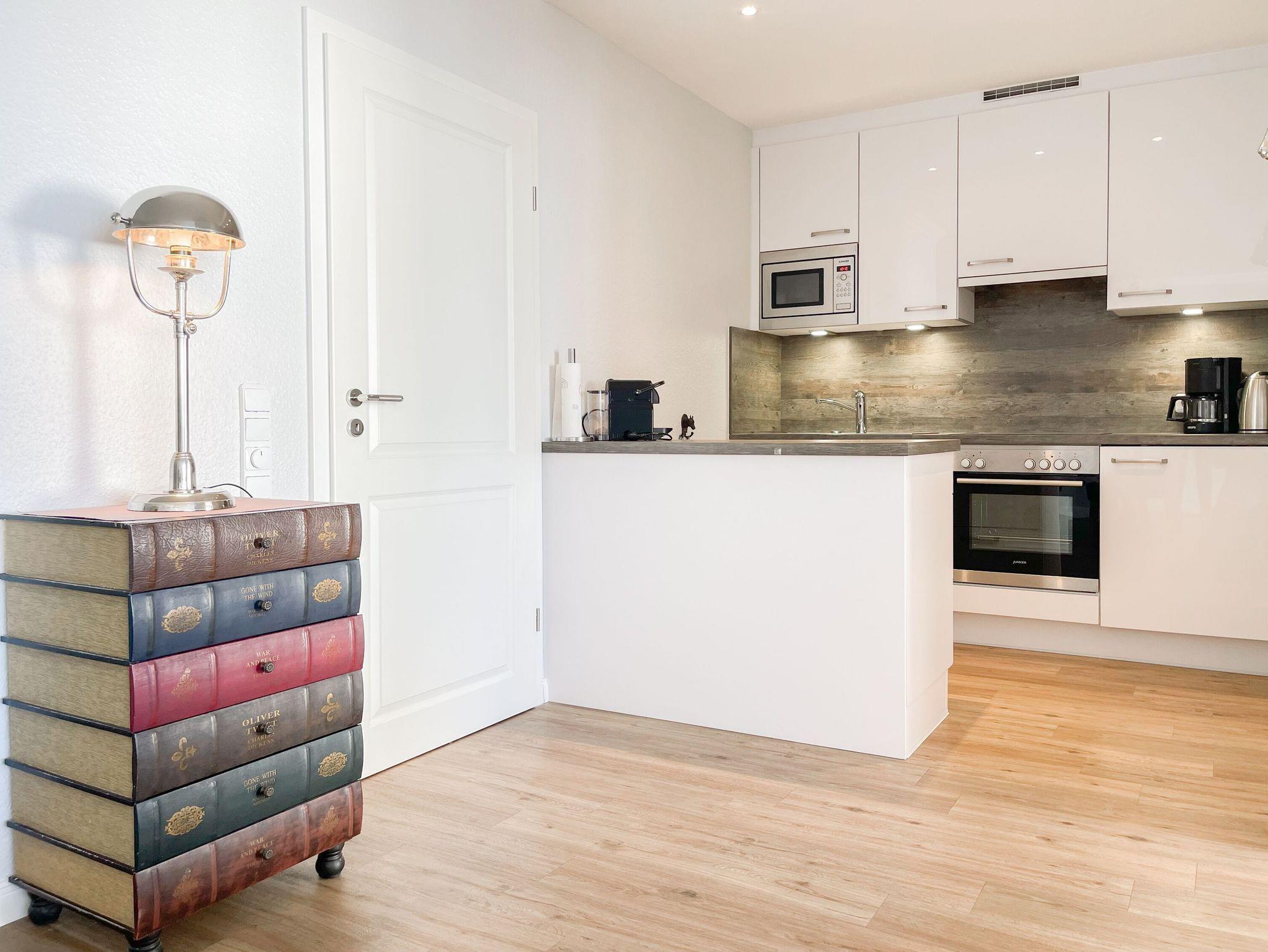 Die Ferienwohnung Traumblick bietet auf 75 qm hohen Wohnkomfort mit einer traumhaften Aussicht über die gesamte Lübecker Bucht. Der weitläufige Sonnenbalkon[nbsp] ist mit Gartenmöbeln, Sonnenstühlen und einer Markise ausgestattet und sowohl vom Wohnbereich als auch vom Schlafzimmer zu erreichen. Genießen Sie tagsüber das traumhafte Meerblickpanorama aus nahezu jedem Raum und bei Dunkelheit die besondere Atmosphäre der beleuchteten Lübecker Bucht. Der großzügige Wohn- Essbereich verfügt neben dem phantastischen Meerblick über eine hochwertige Einrichtung. Es steht ein gemütliches XL Sofa, TV und WLAN zur Verfügung sowie ein integriertes Schrankbett (160x200). Der anschließende Essbereich bietet ausreichend Platz für 4 Personen und die offene Einbauküche ist bestens ausgestattet. Das geräumige Schlafzimmer bietet ebenfalls einen wunderschönen Meerblick und ist mit einem Boxspringbett (180x200), einem weiteren TV sowie einem Kleiderschrank eingerichtet, der ausreichend Stauraum für die Urlaubsgarderobe bietet. Das moderne Bad verfügt über Waschtisch, Dusche und WC.
