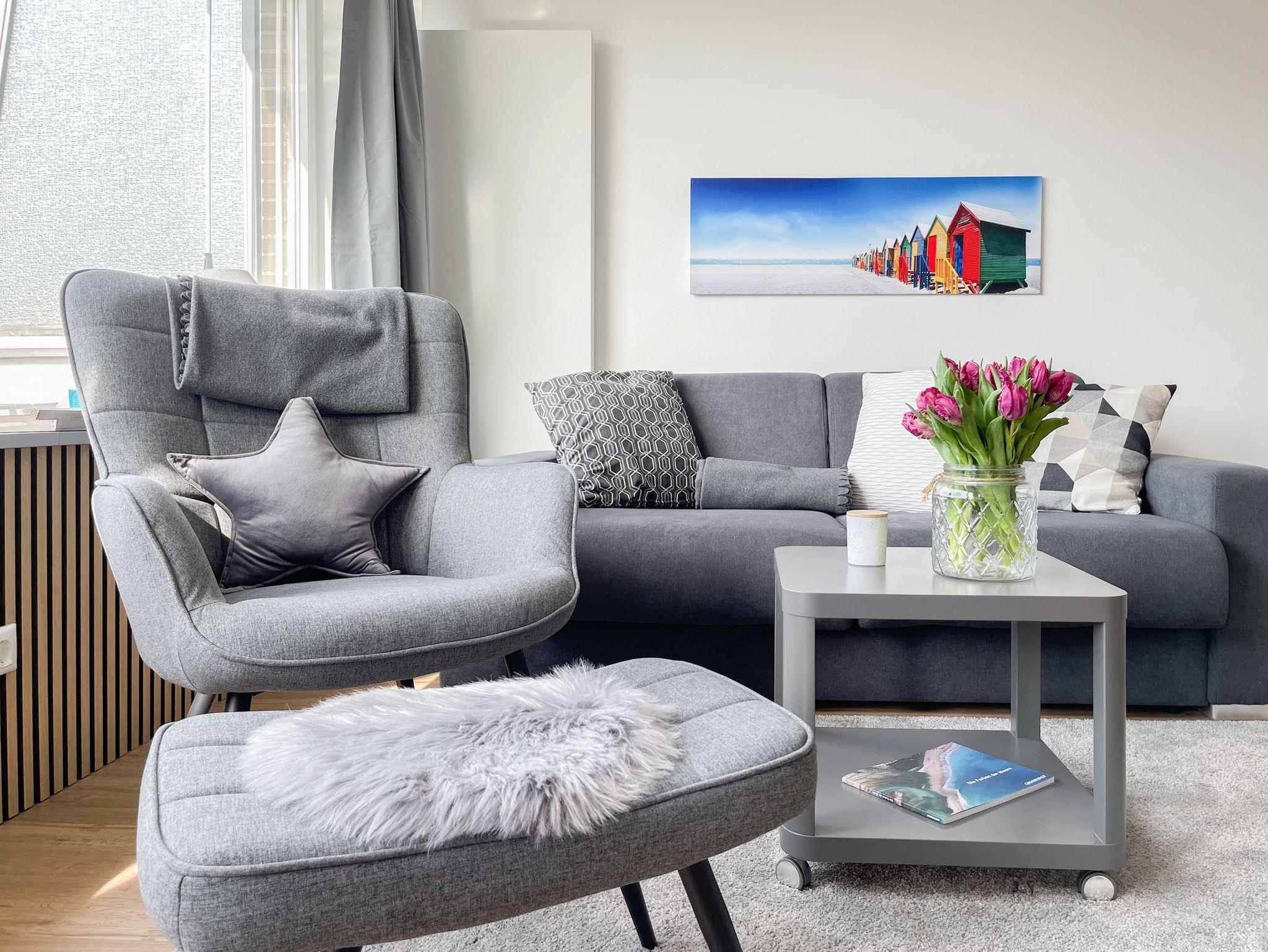 Die Ferienwohnung im 1. Obergeschoss besticht durch ihr gelungenes Raumkonzept und lädt 2-3 Personen zum Wohlfühlen in Strandnähe ein. Der herrliche Sonnenbalkon befindet sich direkt vor dem Wohnbereich und ist mit Gartenmöbeln und einer Markise ausgestattet, um zu jeder Tageszeit erholsame Stunden an der frischen Luft zu genießen. Es erwartet Sie ein heller, freundlicher Wohnraum mit großzügigen Fensterflächen, geschmackvoll gestaltet und hochwertig eingerichtet mit einem Sofa mit Schlaffunktion, TV, Bluetoothradio und einem Essbereich für 4 Personen. WLAN steht selbstverständlich zur kostenlosen Nutzung zur Verfügung. Die offene Küche ist bestens ausgestattet, unter anderem mit Spülmaschine, Mikrowelle, Backofen, Ceranfeld und vielem mehr. Das Schlafzimmer ist mit Schiebetüren vom Wohnbereich getrennt und bietet ein hochwertiges Boxpringbett (180x200), elektrische Außenjalousien und einen Kleiderschrank mit ausreichend Stauraum für die Urlaubsgarderobe. Das neue sehr hochwertige Bad verfügt über Dusche, WC, Waschtisch, Fön, Handtuchtrockner und ein Oberlichtfenster.