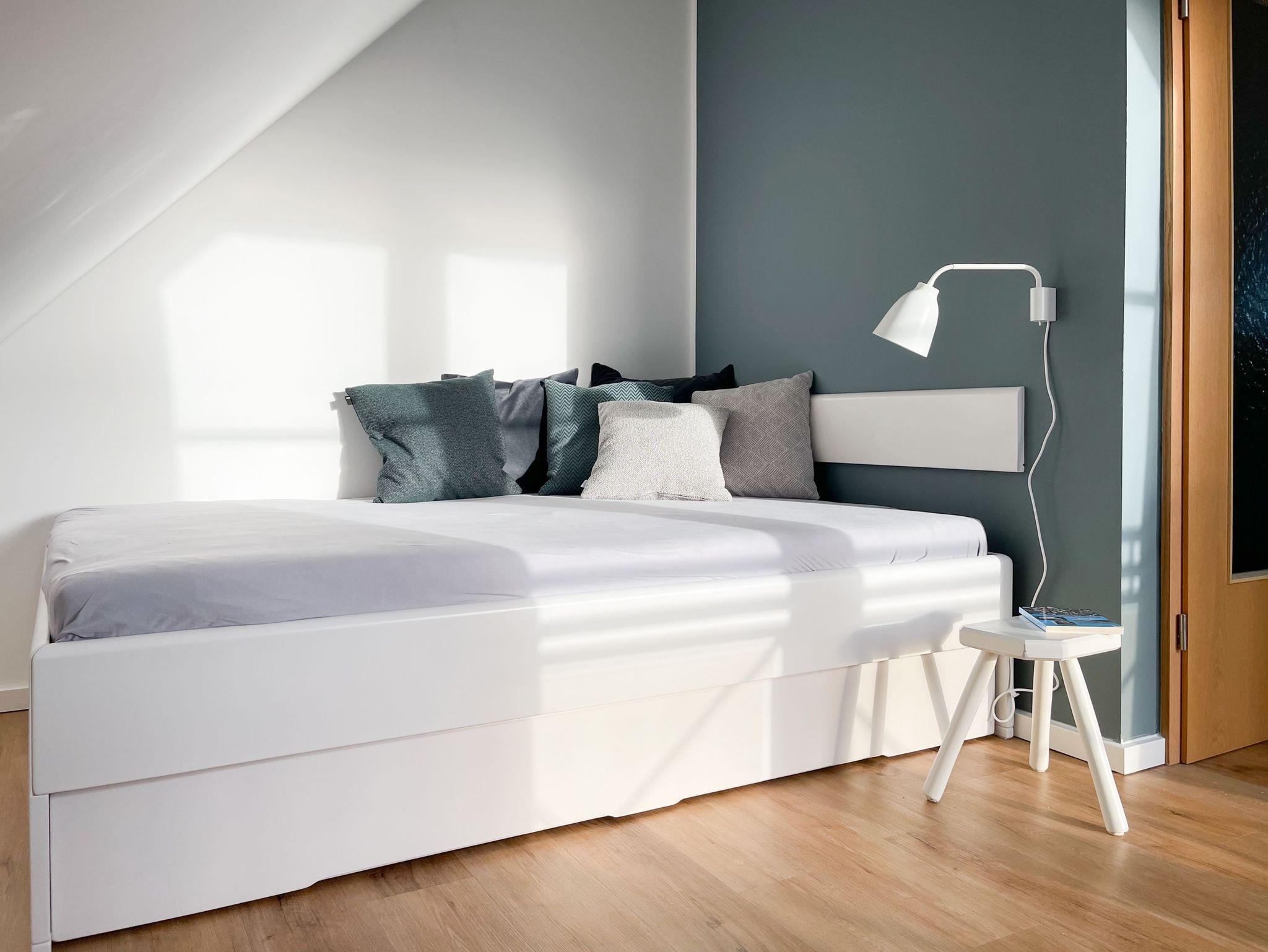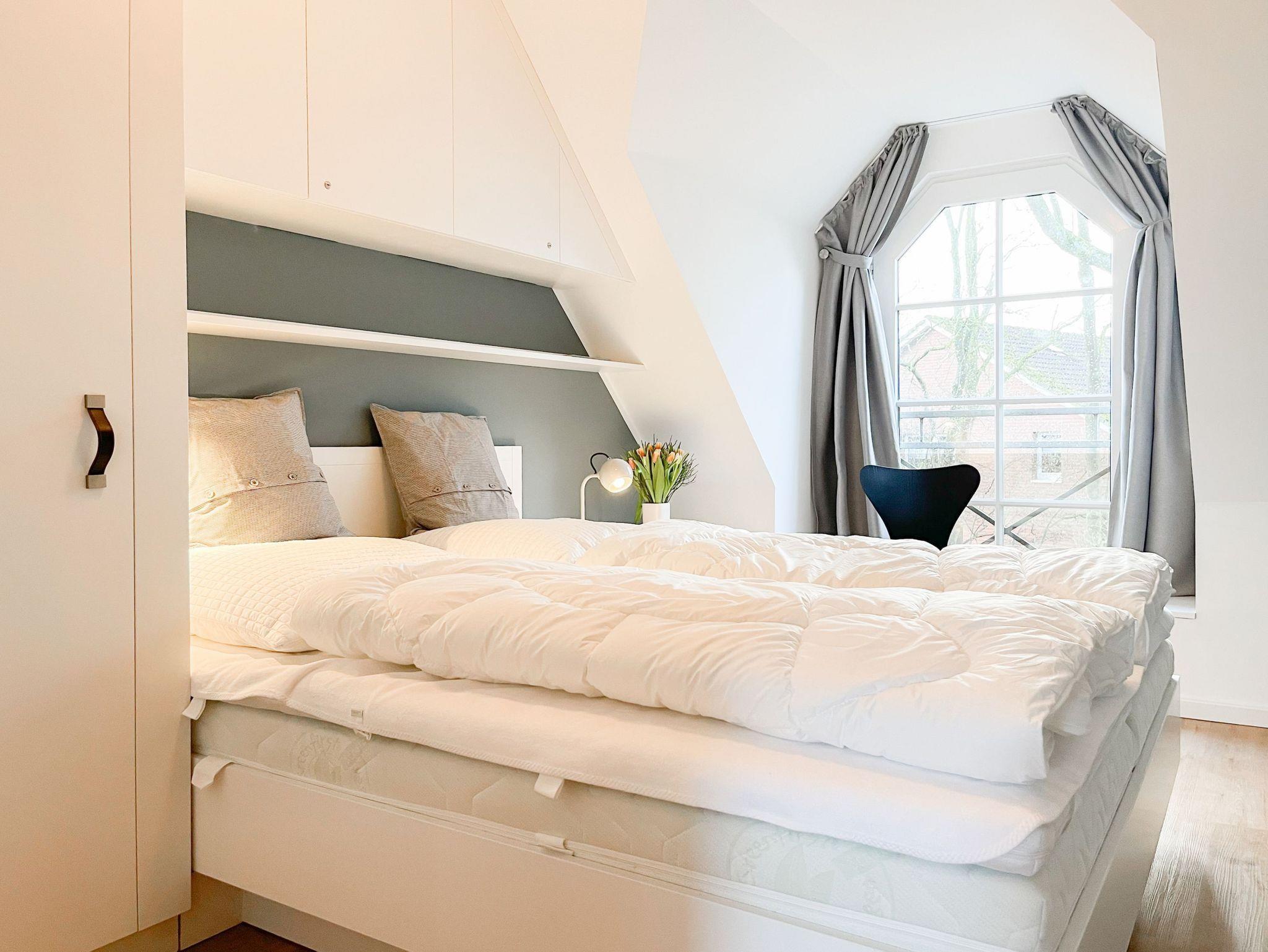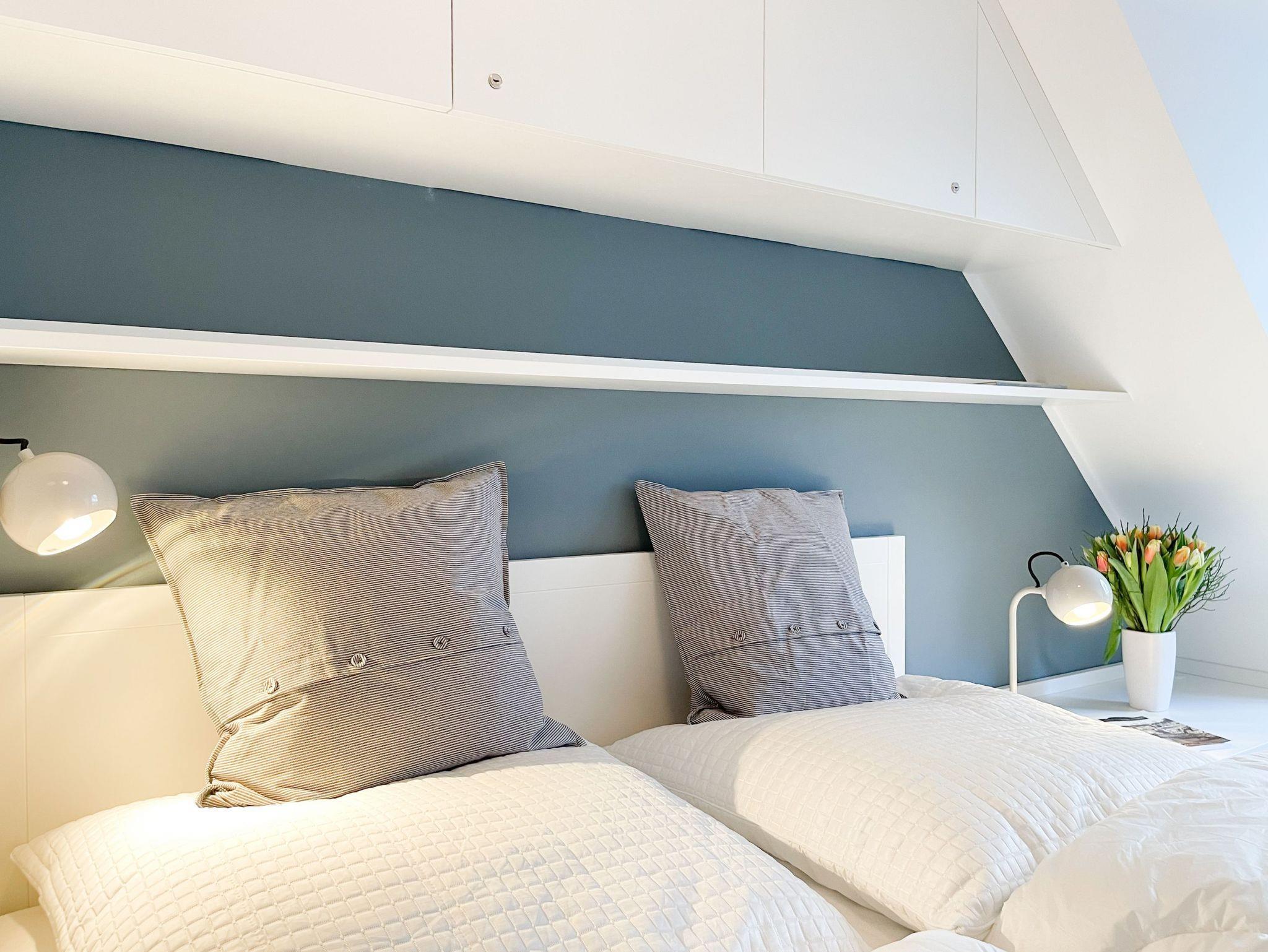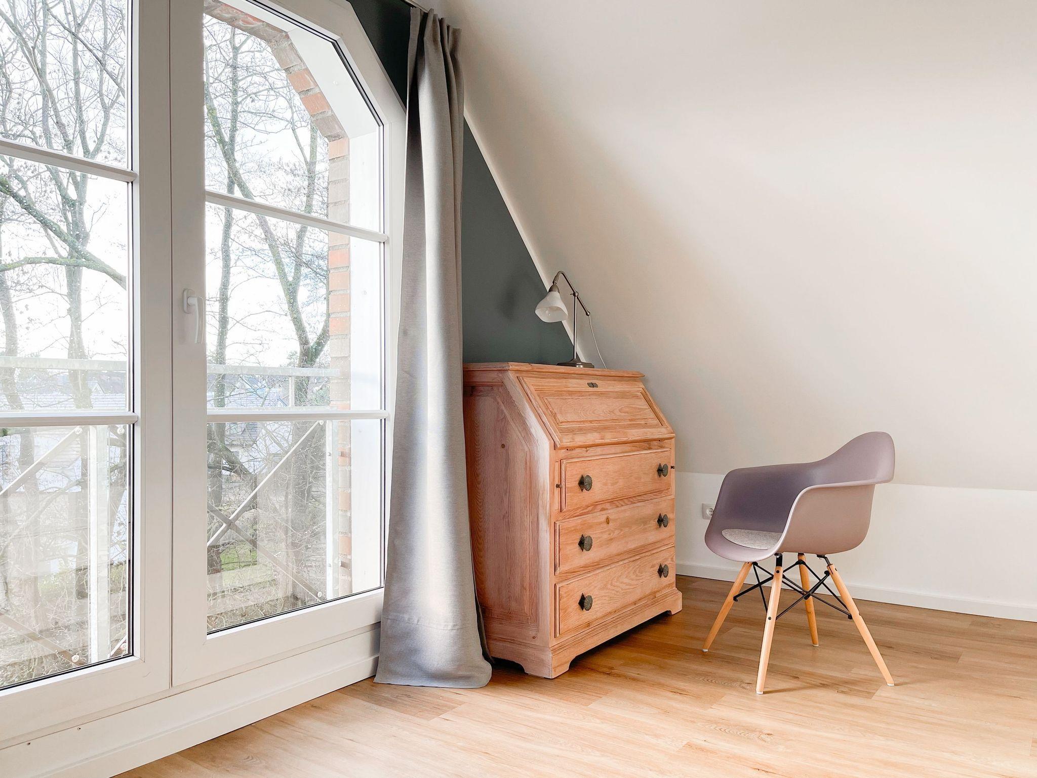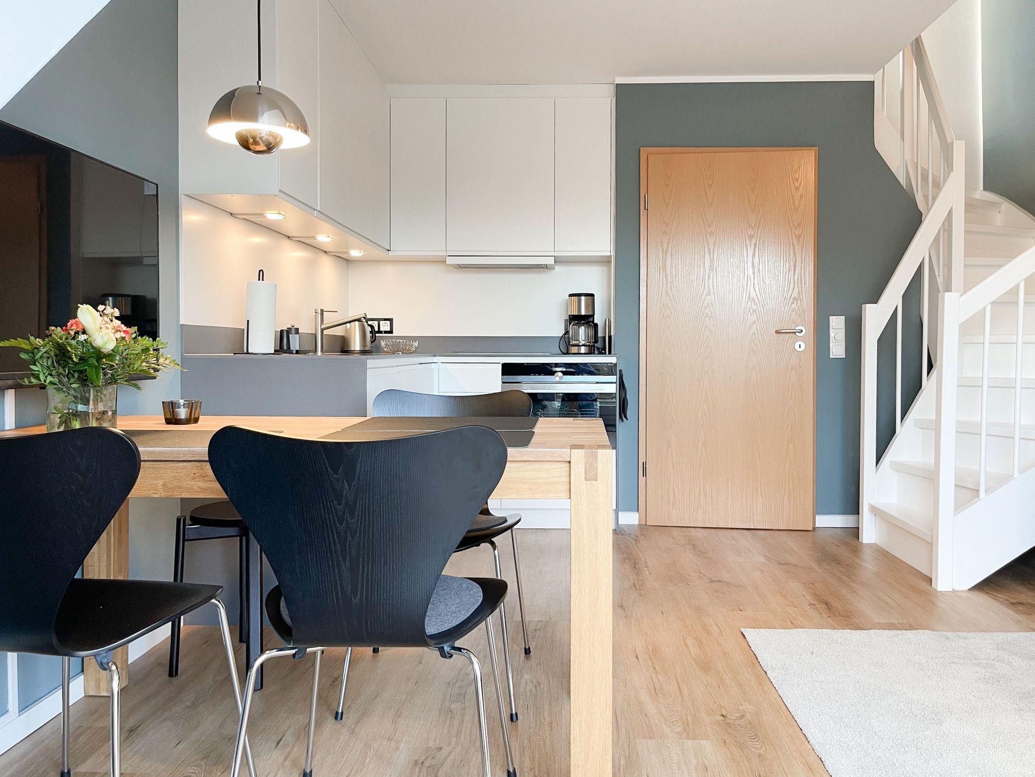 Die lichtdurchflutete Maisonette liegt im 2. Obergeschoss und erstreckt sich über zwei Ebenen zur sonnigen Süd-Ost-Seite. Die stilvolle, skandinavische Einrichtung mit liebevollen Details schafft ein behagliches Ambiente für zwei Personen. Der hochwertig eingerichtete Wohn- und Essbereich bietet neben einem TV und einem Bluetoothradio selbstverständlich auch kostenloses WLAN. Die vom Tischler angefertigte, voll ausgestattete Küche lässt keine Wünsche offen. Das separate Schlafzimmer, ebenfalls passgenau vom Tischler, verfügt über ein Doppelbett (160cm x 200cm, getrennte Matratzen 80x200 mit Toppern) und einen Kleiderschrank. Verdunkelungsvorhänge sorgen für einen erholsamen Schlaf. Das neue, hochwertige Bad ist mit einer Dusche, WC, Waschtisch und Fenster ausgestattet.Die obere Wohnebene, erreichbar über eine Treppe vom Wohnbereich ausgehend, bietet einen weiteren gemütlichen Rückzugsort. Hier finden Sie eine Kommode/Schreibtisch, eine gemütliche Leseecke und ein Bett, das sowohl als „Daybed“ als auch für die Nacht genutzt werden kann.