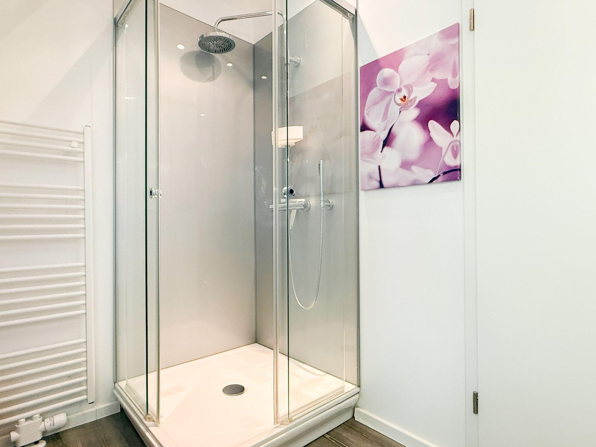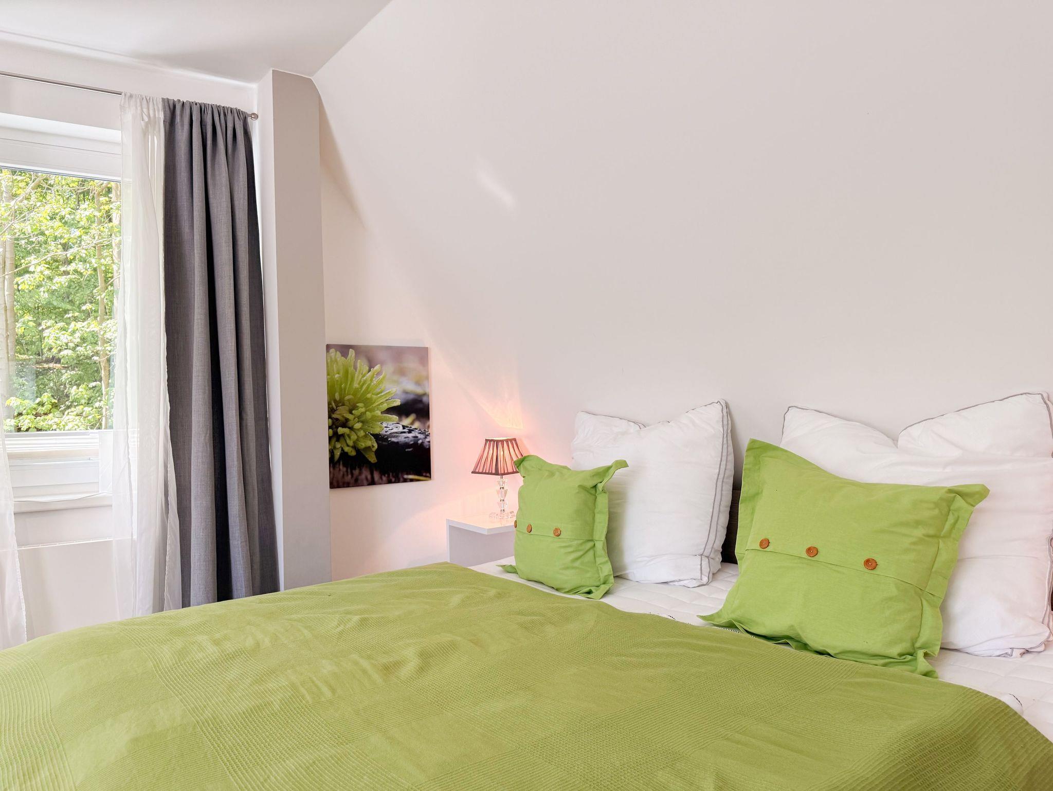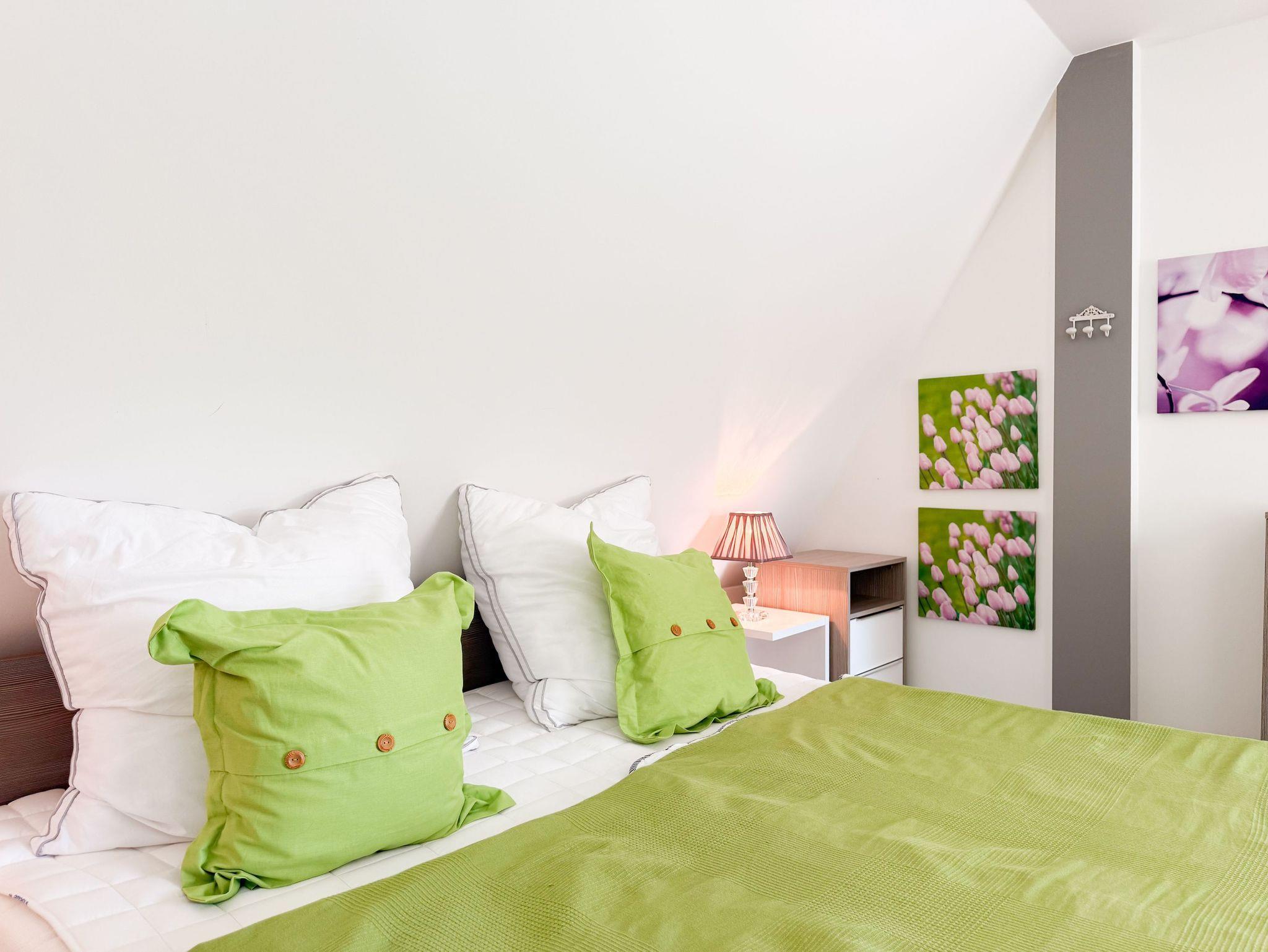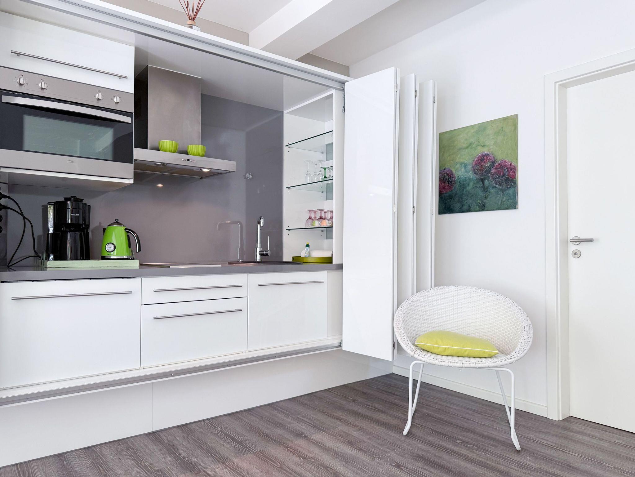 Diese Wohnung erstreckt sich über zwei Ebenen. Im unteren Bereich finden Sie einen gemütlichen Wohnbereich mit einem hochwertigen Schlafsofa, einen Essbereich sowie eine gut ausgestattete Küche. Durch eine praktische Schiebetür lässt sich der Bereich bei Bedarf verstecken. Der großzügige Balkon bietet absolute Privatsphäre und besticht durch einen herrlichen Blick ins Grüne ? perfekt für entspannte Stunden im Freien. Eine Garderobe und ein separates Gäste WC sind ebenfalls auf der unteren Wohnebene unterbracht. Das Dachgeschoss ist über eine Wendeltreppe zu erreichen. Dort gibt es eine kleine Galerie mit einem Schreibtisch ? perfekt für Workation oder kreative Pausen. Das großzügige Schlafzimmer ist mit einer Klimaanlage, einem zusätzlichen TV und Verdunkelungsvorhängen ausgestattet. Das exklusive Duschbad mit Tageslichtfenster sorgt für ein angenehmes und helles Ambiente.