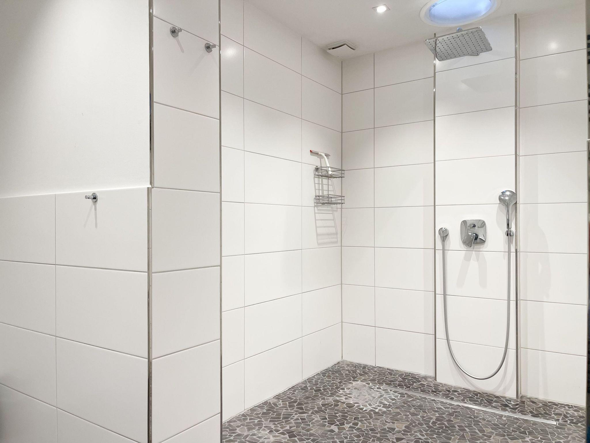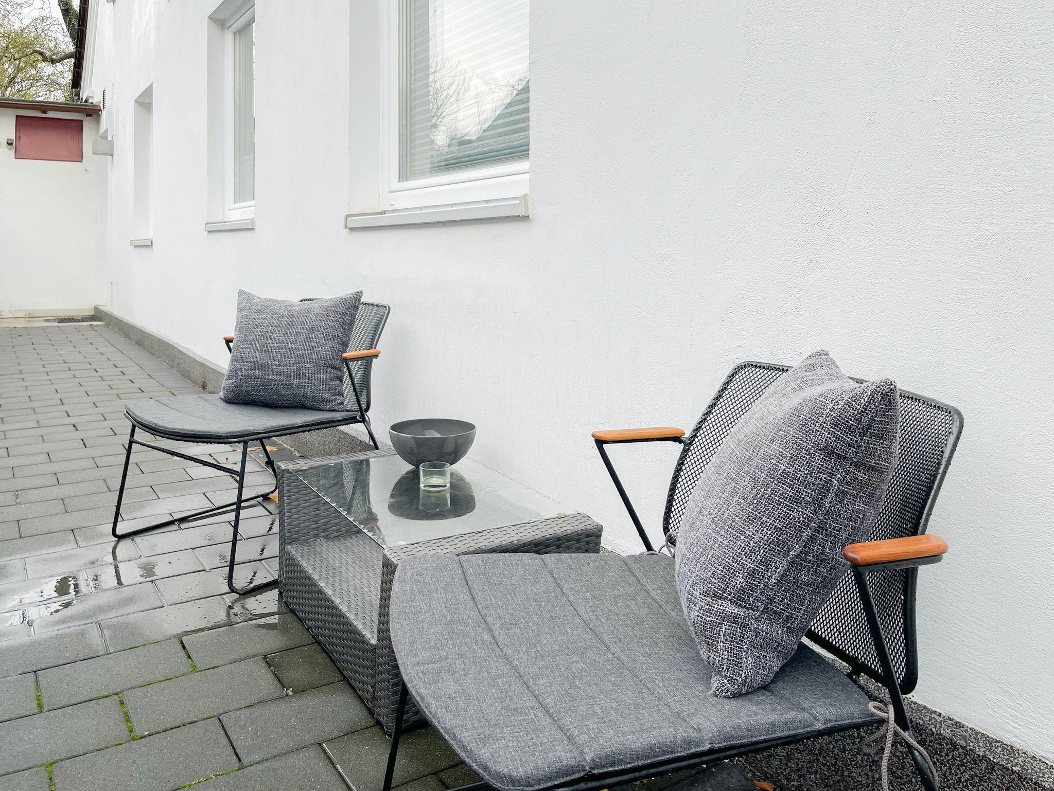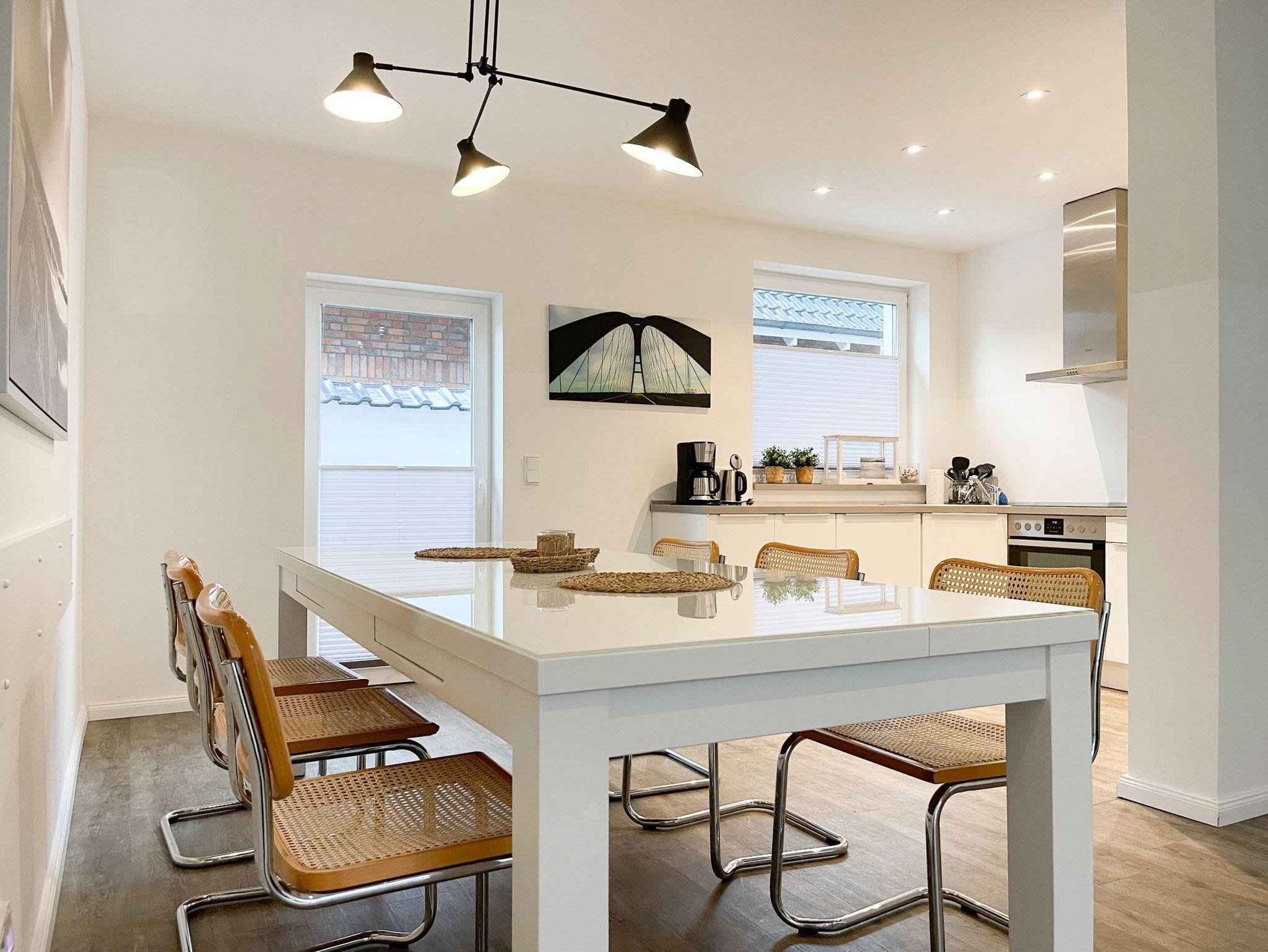 Die Ferienwohnung Waterkant #5 befindet sich im Erdgeschoss und bietet mit 2 Schlafzimmern auf 80 qm ausreichend Raum für 4 Personen, um einen entspannten Ostseeurlaub in Strandnähe zu verleben. Es erwartet Sie ein großzügiger Wohnbereich mit Sofa, ein Essbereich mit XL Esstisch mit viel Platz für gemeinsame Mahlzeiten und eine offene Einbauküche, gut ausgestattet mit Ceranfeld, Backofen, Geschirrspüler und Kühl- und Gefrierschrank. Der Terrassenbereich ist schmal und mit einer Mauer zum Nachbarn begrenzt. Das größere Schlafzimmer ist mit einem Doppelbett (180x200), Kleiderschrank und TV eingerichtet. Das kleine Schlafzimmer verfügt über ein Doppelbett (140x200), TV und einen kleinen Kleiderschrank. Die Fenster der Schlafzimmer sind mit Verdunkelungsplissees versehen. Das Bad ist mit einer XXL Walk In Dusche, Waschtisch, WC und Handtuchwärmer ausgestattet sowie einem Dachfenster für ausreichend Tageslicht.[nbsp] WLAN kann selbstverständlich kostenlos genutzt werden. Ein Außenstellplatz gehört zur Wohnung. Ein abschließbarer Fahrradraum kann gemeinschaftlich genutzt werden, ebenso Waschmaschine und Trockner, die im separaten Waschraum untergebracht sind.