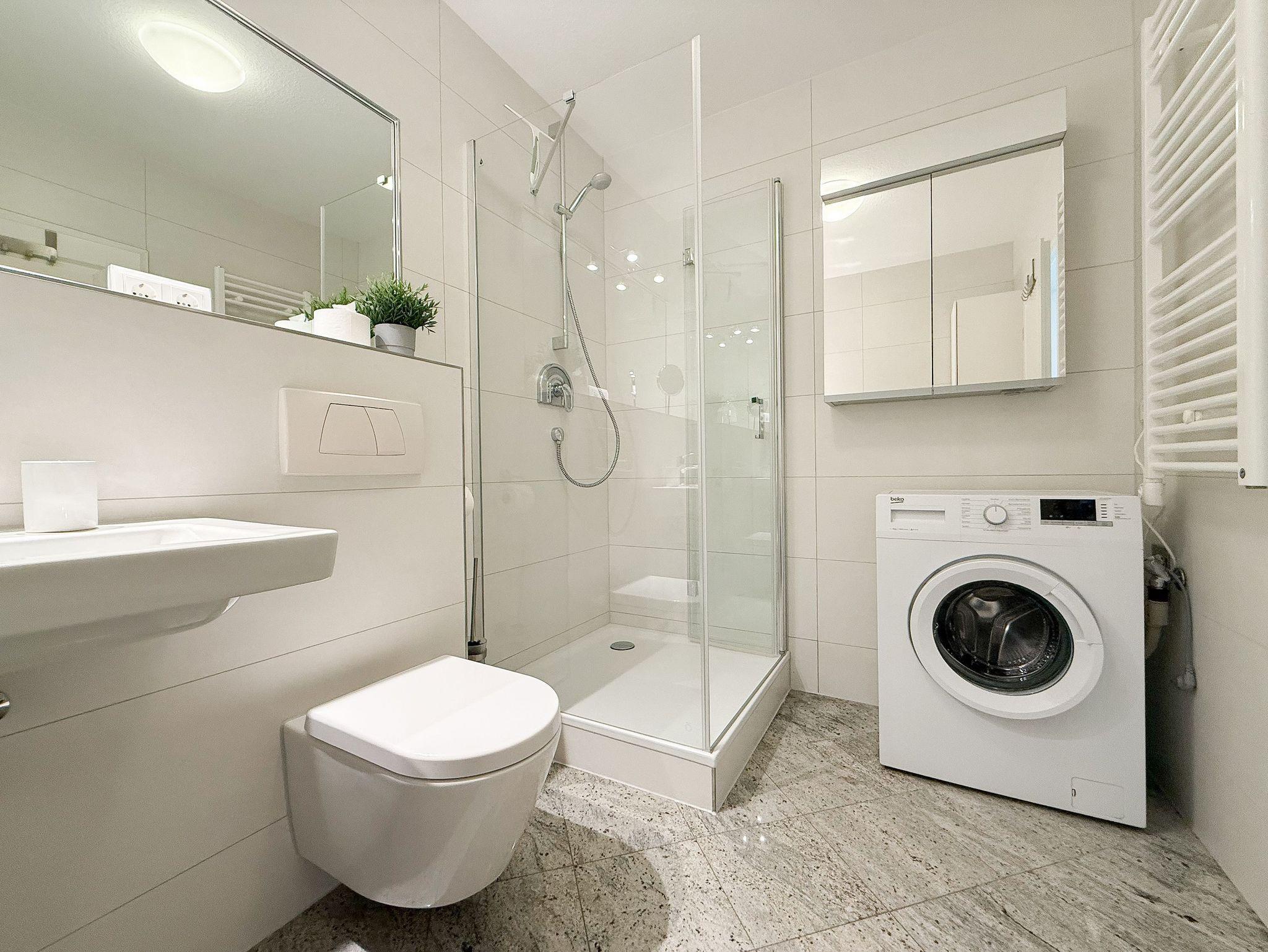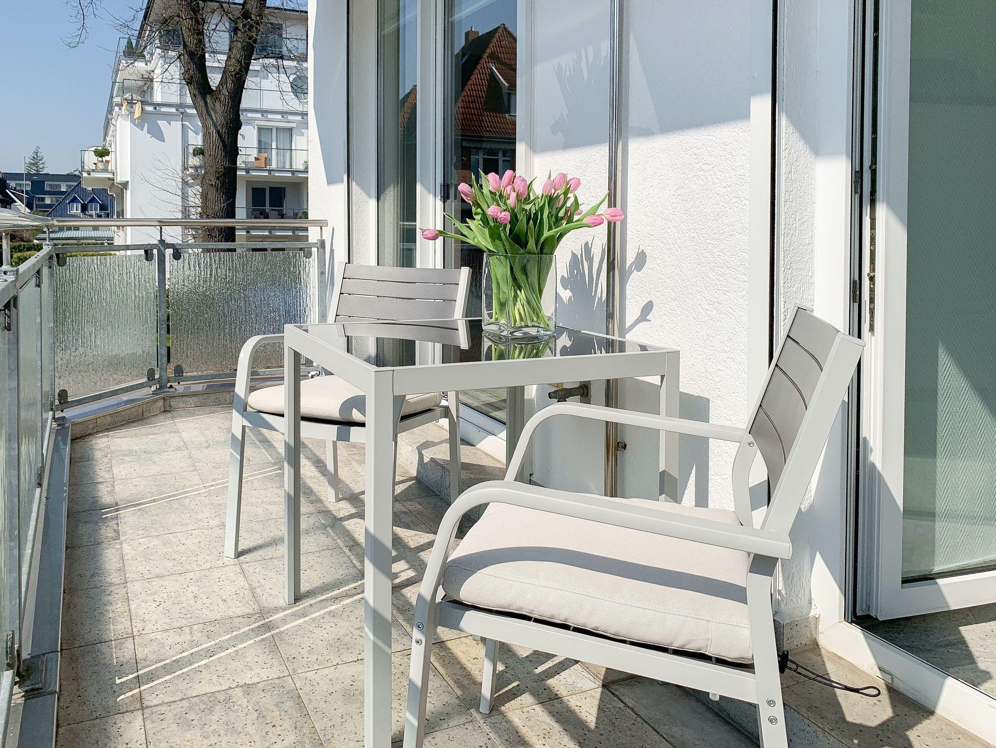 Die hochwertig eingerichtete und ausgestattete Wohnung befindet sich im ersten Obergeschoss und ist zum Südwesten ausgerichtet. Dadurch sind die Räumlichkeiten schön hell und auf den zwei Balkonen, die vom Schlafzimmer, Wohnzimmer und der Küche zugänglich sind, kann den ganzen Tag bis in die Abendstunden die Sonne genossen werden.