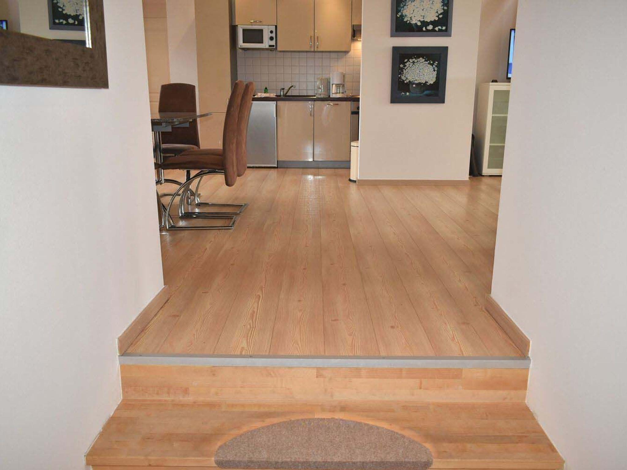 Bodenbelag: In allen Räumen ausser das Bad ist Laminat. Bad ist gefliest. Treppe ist mit Stufenmatten belegt