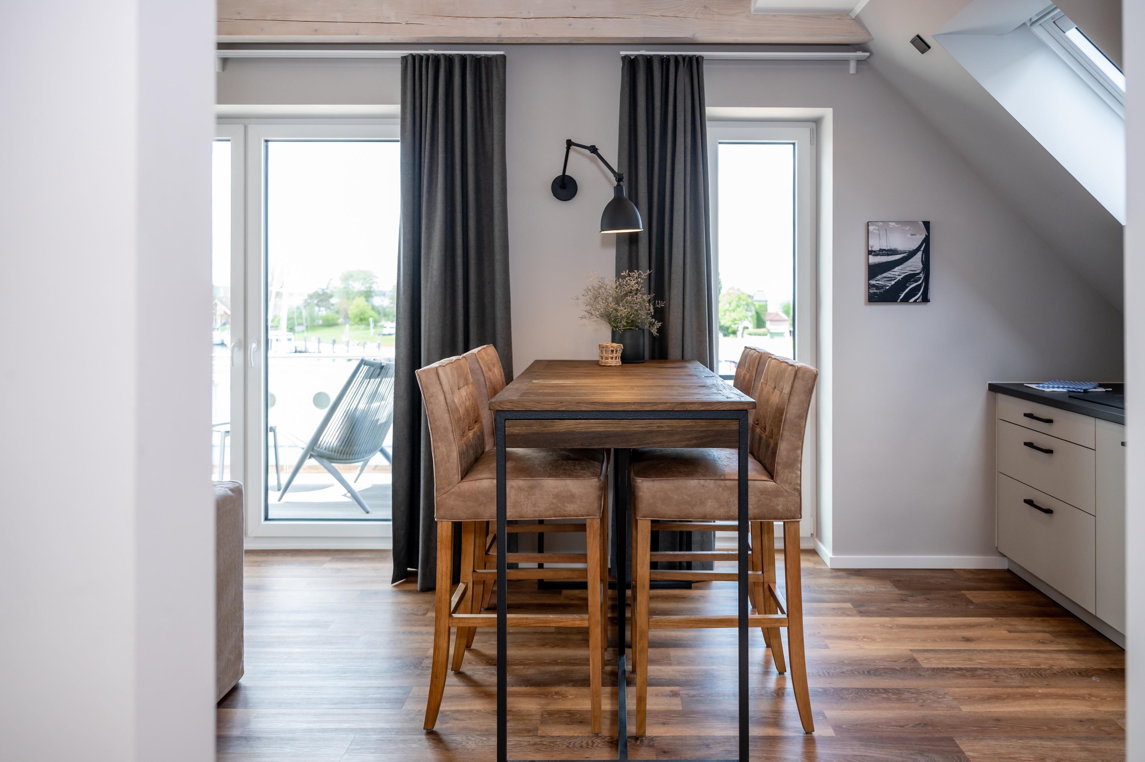 Sie betreten unsere Hamburg durch einen Flur mit einer großzügigen Garderobe mit Sitzgelegenheit. Vom Flur gehen das Wohnzimmer, das Schlafzimmer, ein separates WC sowie das Badezimmer ab. Im Wohnbereich befindet sich eine vollausgestattete Einbauküche mit Bar Table für vier Personen, ein kuscheliges Eck-Hussensofa, ein Sessel und ein Flachbild-TV. Vom Wohnzimmer aus kommen Sie auf den Balkon mit einem eindrucksvollen Blick über den Niendorfer Hafen und die Lübecker Bucht. Auf dem Balkon erwarten Sie ein Tisch mit Stühlen sowie gemütliche Lounger. Hier können Sie den ersten Kaffee des Tages oder am Abend einen erfrischenden Sundowner genießen. Das Schlafzimmer verfügt über ein gemütliches Boxspringbett, einem großen Kleiderschrank mit einem Zimmersafe und einen Flachbild-TV. Entschleunigen können Sie im separaten Badezimmer mit integriertem Internet-Radio, einer Regendusche sowie einer Badewanne. Die hochwertige Einrichtung umfasst u. a. Möbel von Riviera Maison.