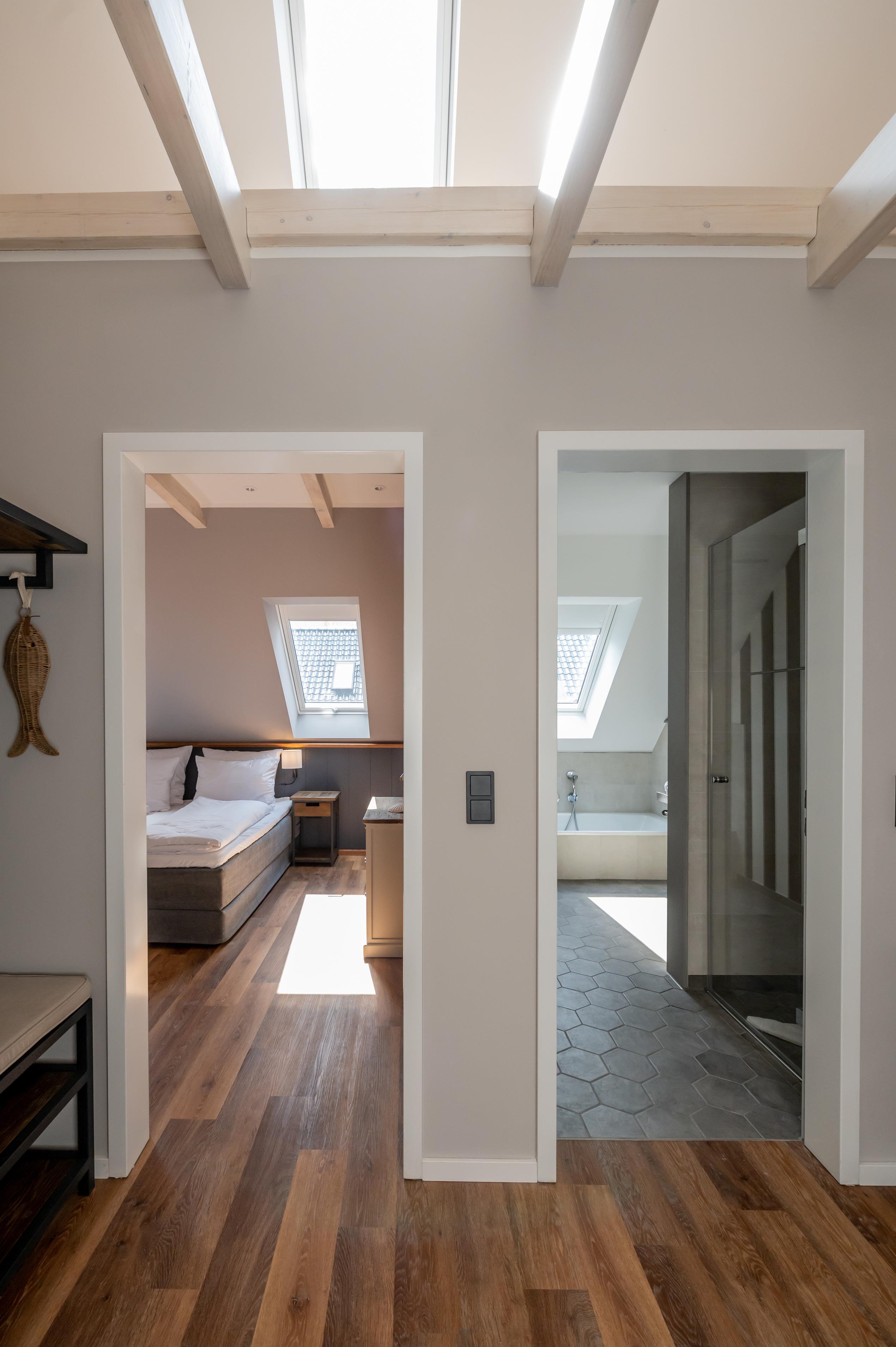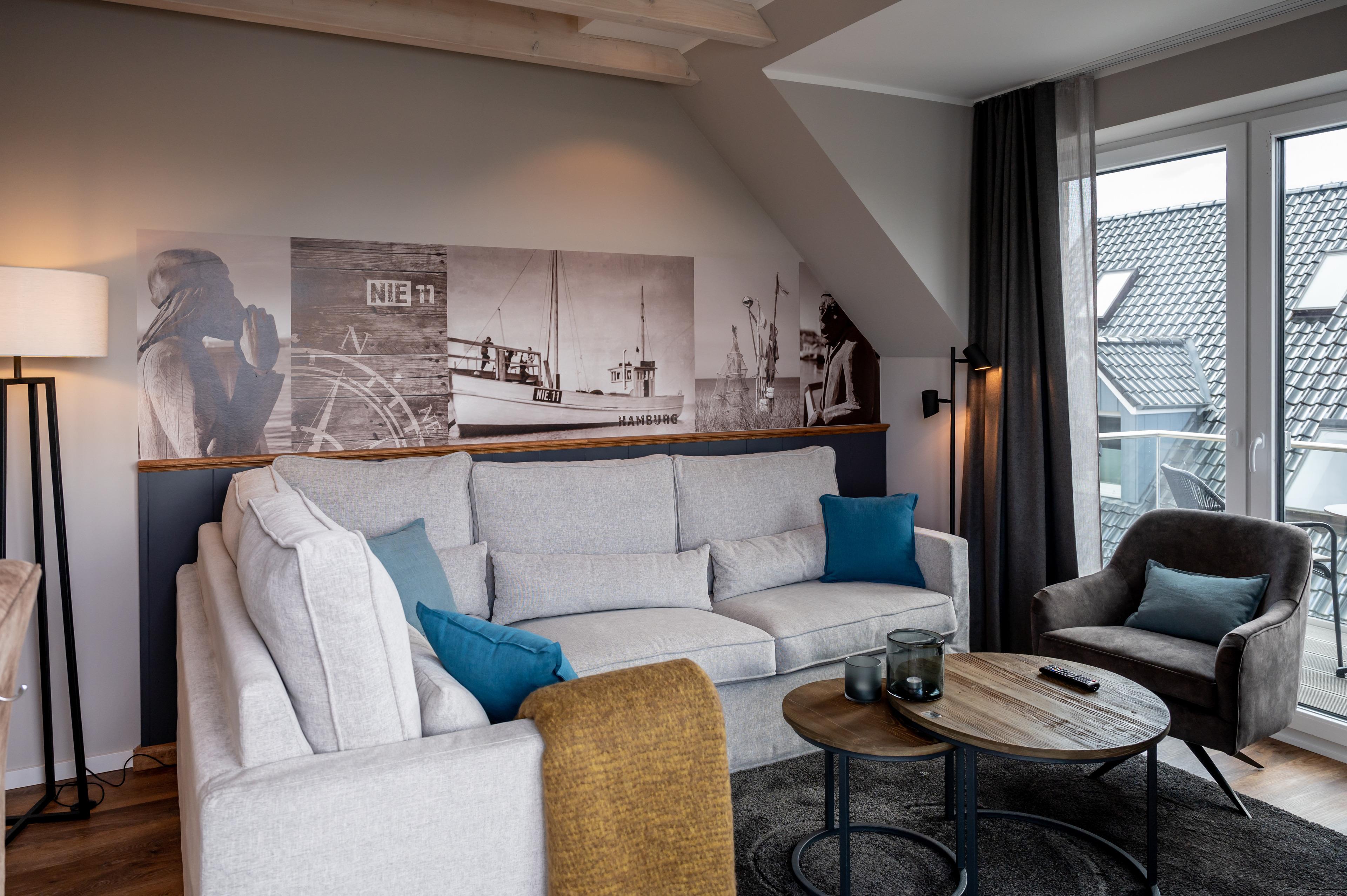 Unsere Premium-Kajüten sind ganz im Stil der Region nordisch-maritim eingerichtet und verfügen jeweils über ein separates Wohn- und Schlafzimmer. Alle unsere Kajüten sind nach Fischkuttern benannt, die früher einmal im romantischen Niendorfer Hafen beheimatet waren.