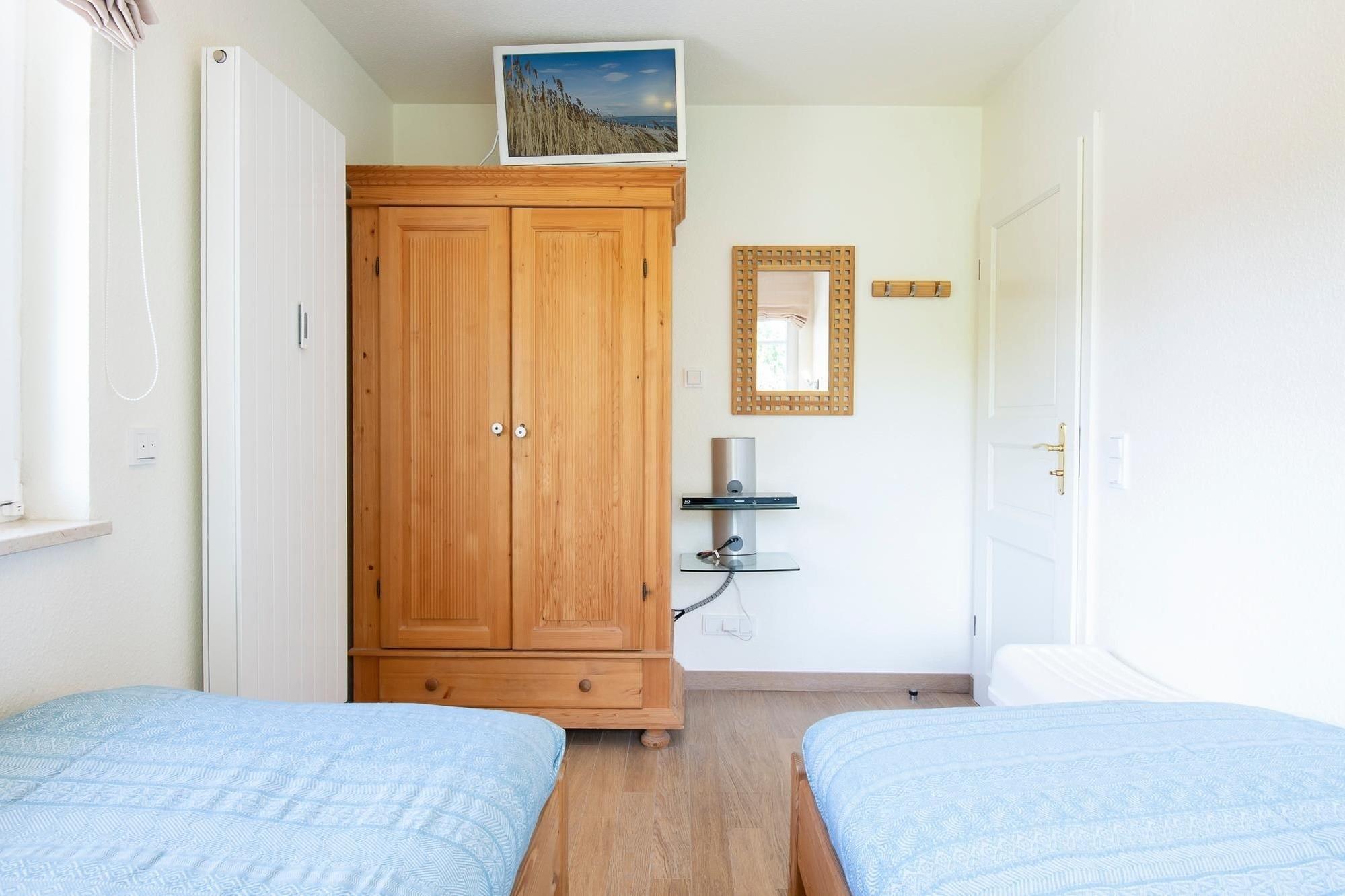 Schlafzimmer 2: 2 Einzelbetten (je 80x200 cm), Kleiderschrank, TV