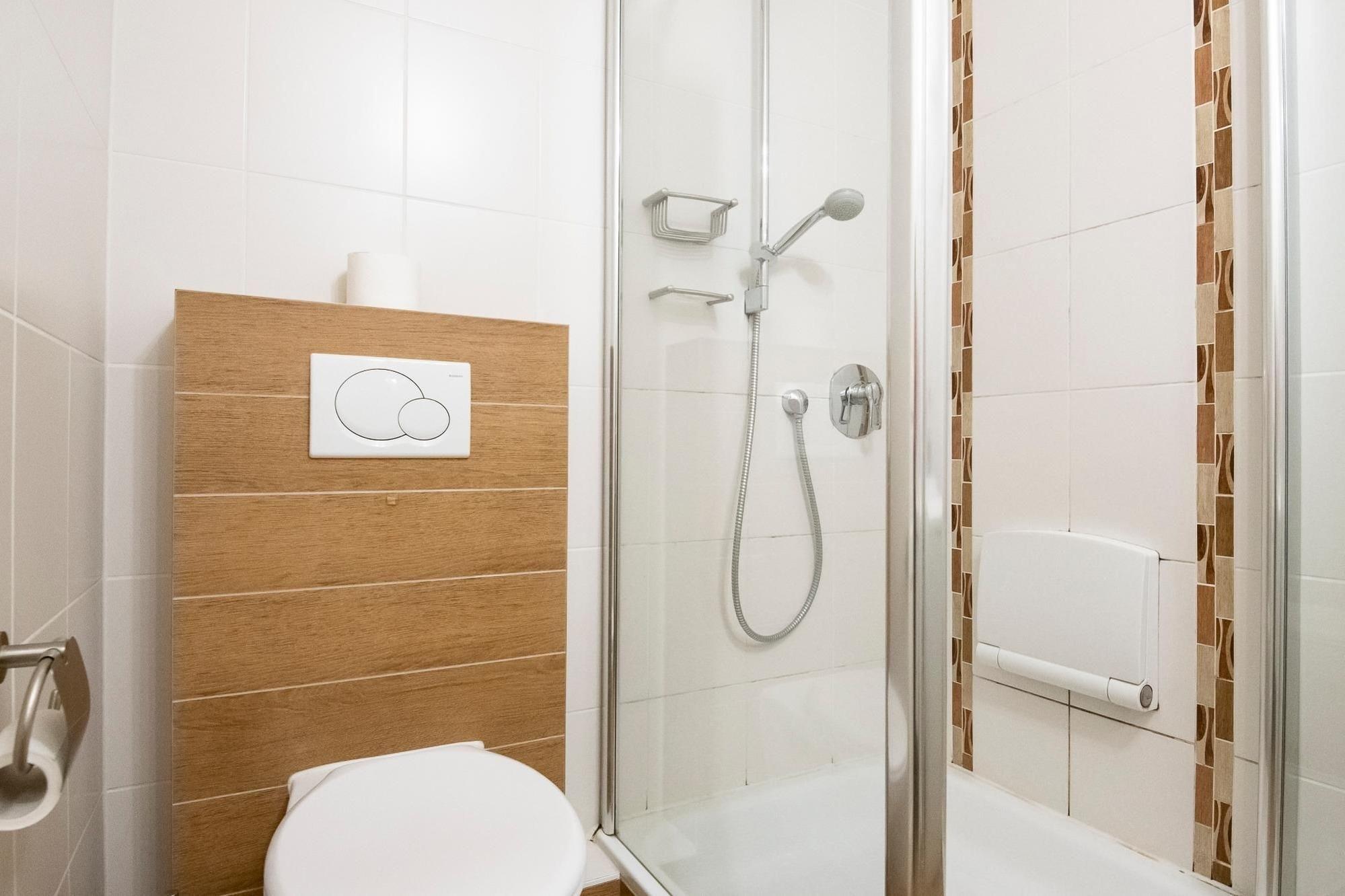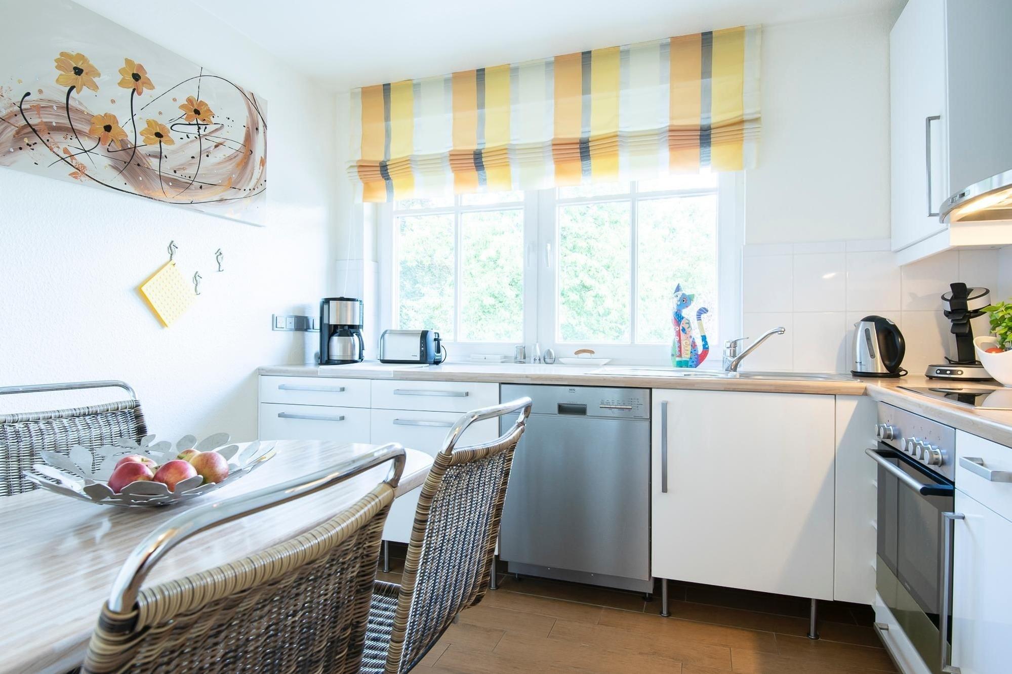 Vom Flur aus gelangen Sie in die zwei Schlafräume, von denen eines mit einem Doppelbett (2x 80x200 cm) und eines mit zwei Einzelbetten (je 80x200 cm) ausgestattet ist. Beide Schlafräume bieten einen LCD-TV mit Blu-Ray-Player, an den auch eine Spielkonsole angeschlossen werden kann. Im hellen Wohnraum befinden sich eine moderne Couchgarnitur mit passendem Sessel, eine Musikanlage, ein DVD-Player und ein LCD-TV die für unterhaltsame Abende sorgen. Die separate Küche ist ausgestattet mit Kühlschrank inkl. Gefrierfach, 4-Plattenceranherd, Backofen, Geschirrspüler, Kaffeemaschine, Wasserkocher und Toaster. Sowohl die Küche als auch der Wohnraum verfügen über einen Esstisch. Die beiden möblierten Balkone bieten eine schöne Ausrichtung und laden dazu ein den Tag bei frischer Ostseeluft ausklingen zu lassen. Im modernen Bad mit Glasdusche finden Sie auch eine Waschmaschine. Die Zimmer können mit Rollos bzw. elektrischen Jalousien verdunkelt werden. Die Ferienwohnung verfügt über einen kostenfreien WLAN-Hotspot.