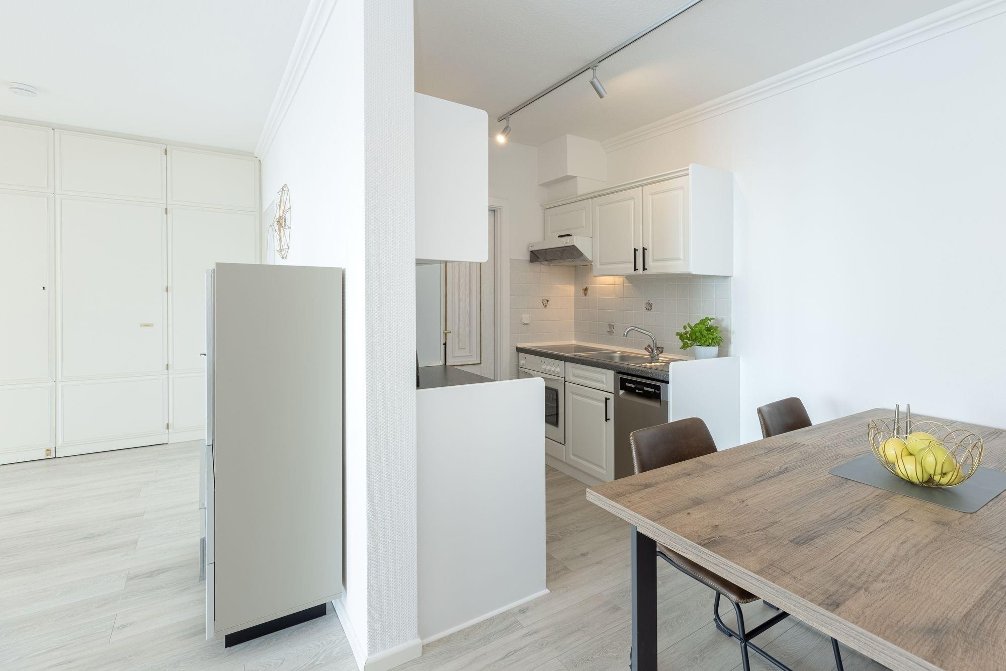 Das Herzstück des schönen Appartements bildet der Wohnbereich mit einem komfortablem Ecksofa, das als Schlafcouch genutzt werden kann (120x200 cm), und einem Flachbildfernseher. Von hier aus gelangen Sie auf den möblierten Balkon, der Ihnen einen fantastischen Meerblick garantiert. Durch die großen Fenster ist der Wohnbereich stets hell und lichtdurchflutet. Der Esstisch und die gut ausgestattete Küchenzeile grenzen offen an den Wohnbereich. Die Küche verfügt u. a. über einen Herd mit Ceranfeld, einen Kühlschrank mit Gefrierfach, einen Backofen und über einen Geschirrspüler. Das separate Schlafzimmer erwartet Sie mit einem Doppelbett (2x 90x200 cm, durchgehender Topper mit 180x200 cm) und einem Kleiderschrank mit Ganzkörperspiegel. Von hier aus haben Sie ebenfalls Zugang zum Balkon und können vom Bett den Blick auf die Ostsee genießen. Das innenliegende Badezimmer verfügt über eine Dusche. Der WLAN-Anschluss ist für Sie selbstverständlich inklusive.