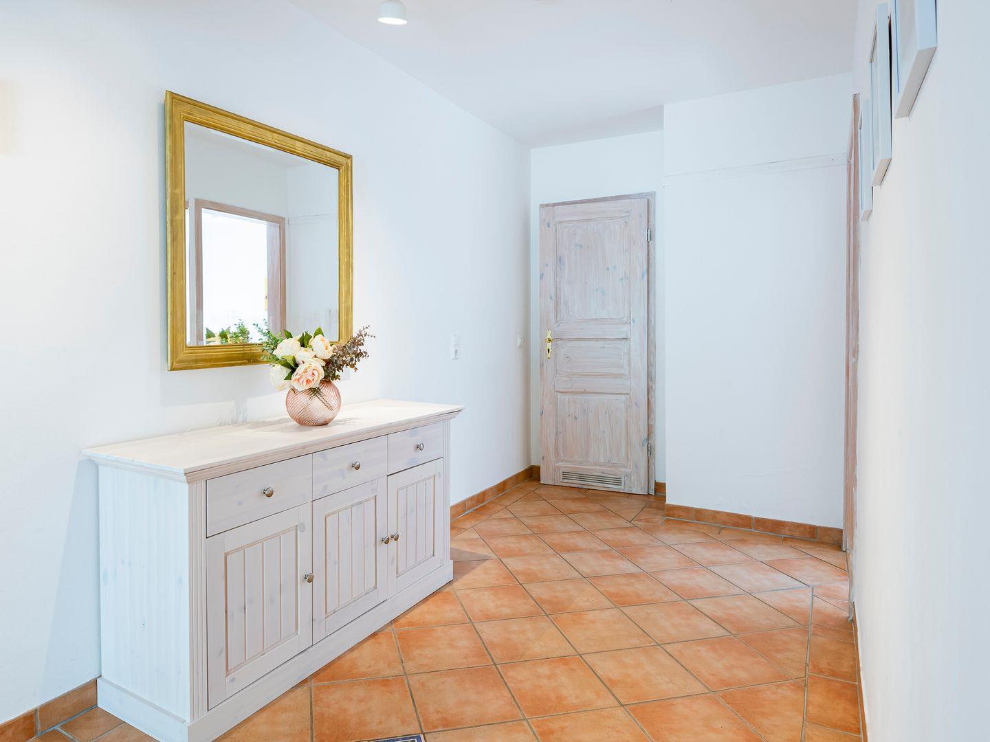 Das geschmackvoll möblierte Schlafzimmer bietet ein hochwertiges Doppelbett (2x 90x200 cm) und einen geräumigen Kleiderschrank. Bei Bedarf ist hier auch Platz für ein Kinderreisebett. Das angrenzende Badezimmer ist hell gefliest und verfügt über eine erfrischende Dusche, ein WC, einen Fön sowie ein Waschbecken mit einem beleuchteten Spiegel.