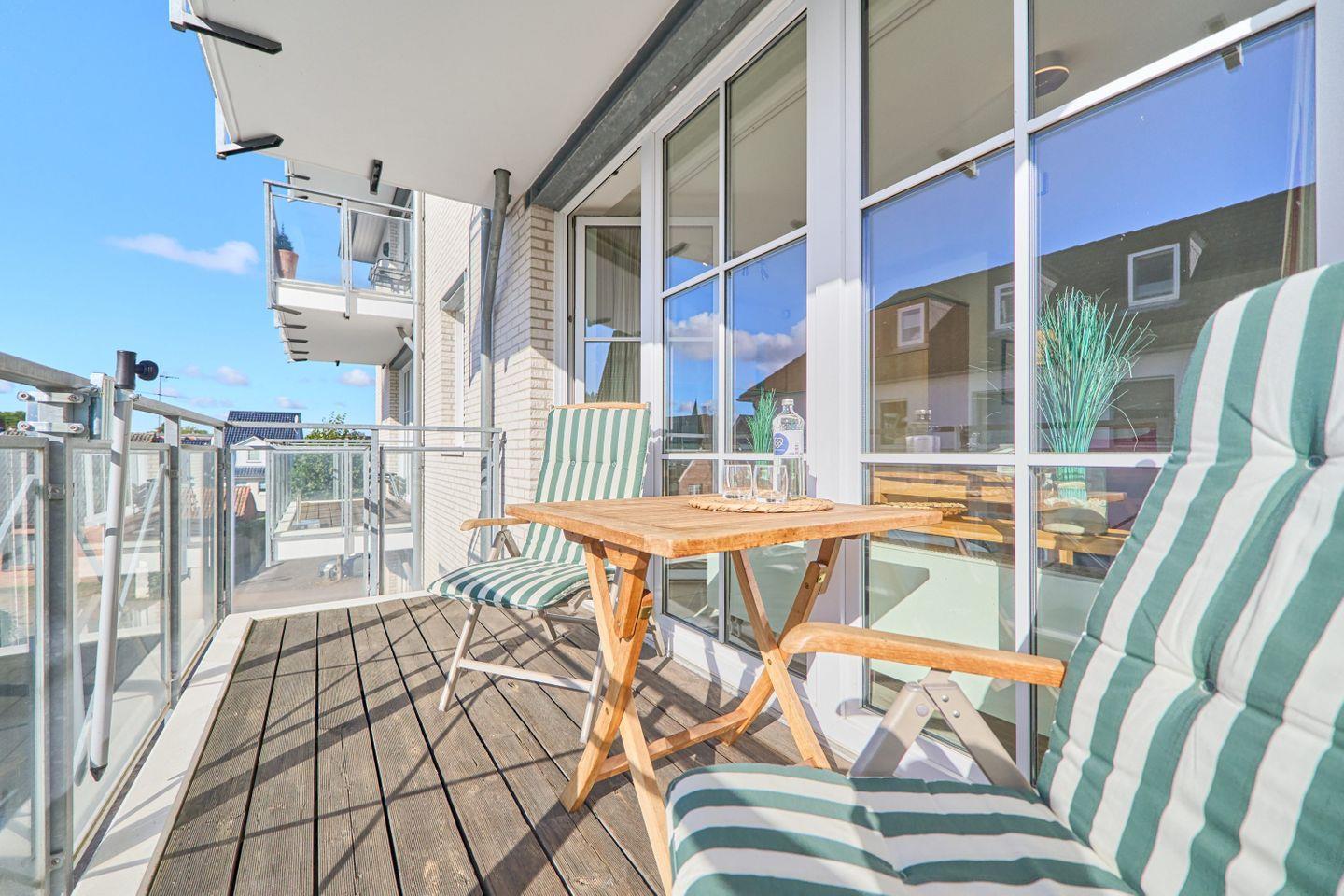 Eine Besonderheit sind die zwei Balkone, die Ihnen das einzigartige Ostseeflair bieten. Auf dem nach Osten ausgerichteten Balkon können Sie die Morgensonne genießen und den Tag bei einem entspannten Frühstück beginnen, während der nach Süden gelegene Balkon zum Sonnenbaden und Genießen der frischen Ostseeluft einlädt.