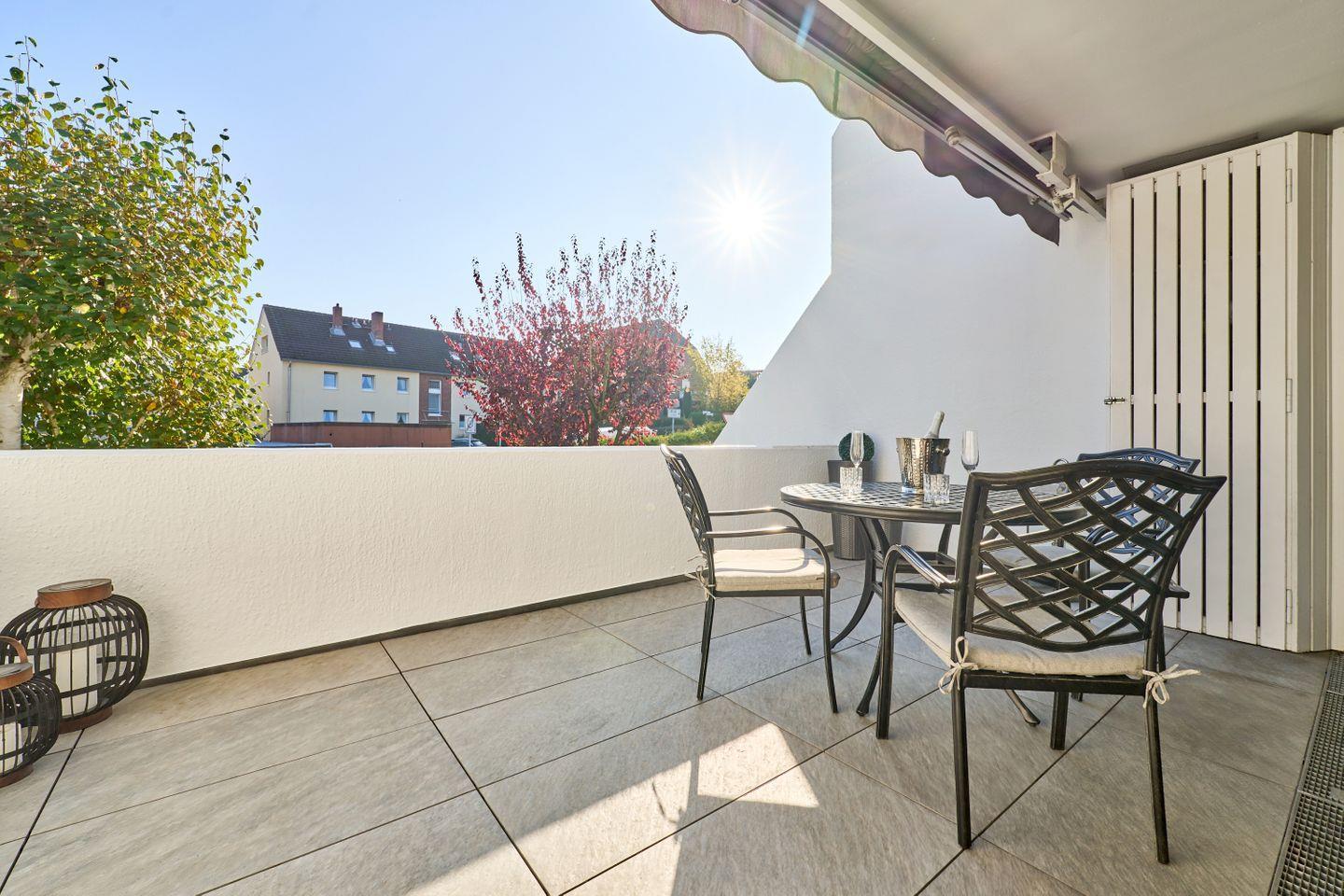 Ein weiteres Highlight des Apartments ist der sonnige Balkon. Hier können Sie den Tag mit einem entspannten Frühstück im Freien beginnen oder den Abend bei einem Glas Wein ausklingen lassen. Genießen Sie die frische Ostseeluft und die Ruhe des nahegelegenen Kurparks, die Sie direkt vor Ihrer Tür erwartet.
