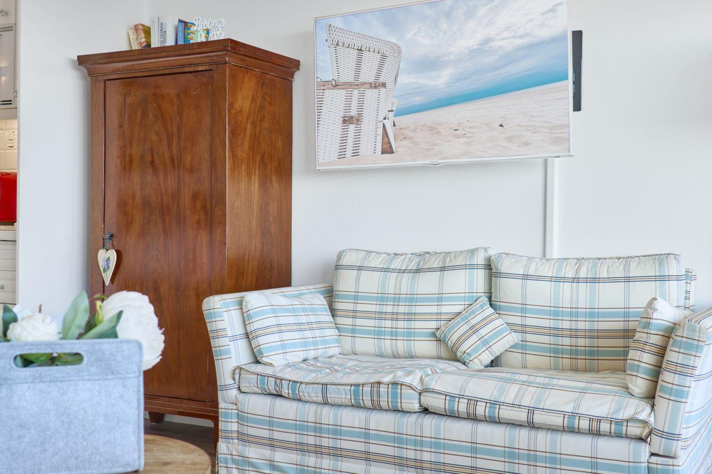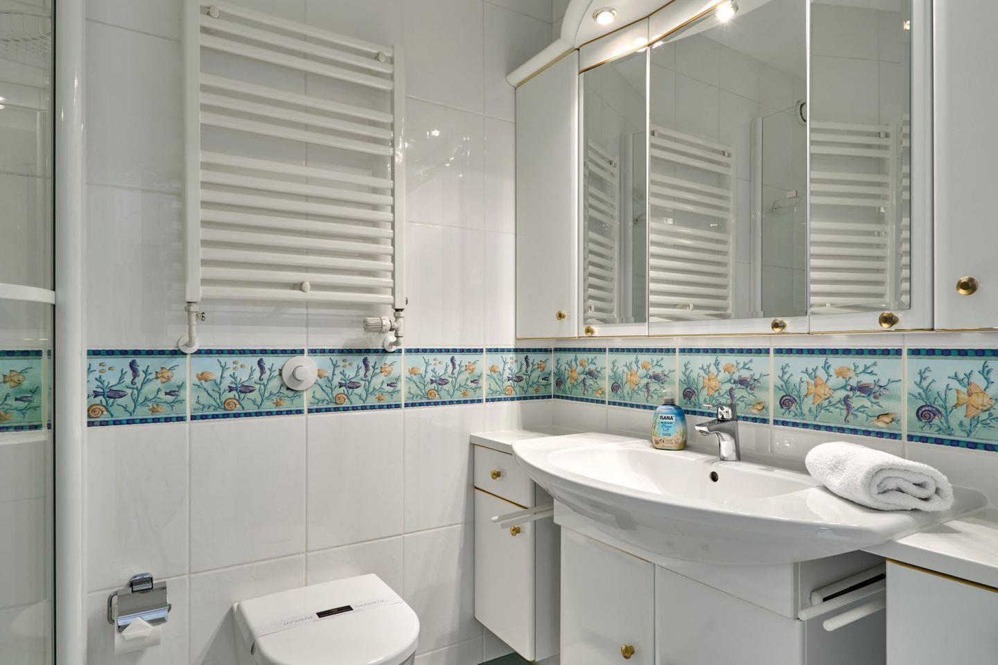 Das helle, moderne Duschbad sorgt für zusätzlichen Komfort und ermöglicht Ihnen, sich nach einem Tag am Strand zu erfrischen. Durch die zentrale Lage sind sowohl der breite Sandstrand als auch zahlreiche Restaurants, Cafés und Geschäfte bequem zu Fuß erreichbar. In dieser idealen Umgebung erleben Sie erholsame Tage in einem gemütlichen Zuhause auf Zeit, in dem der Alltag fern und das Meer zum Greifen nah ist.