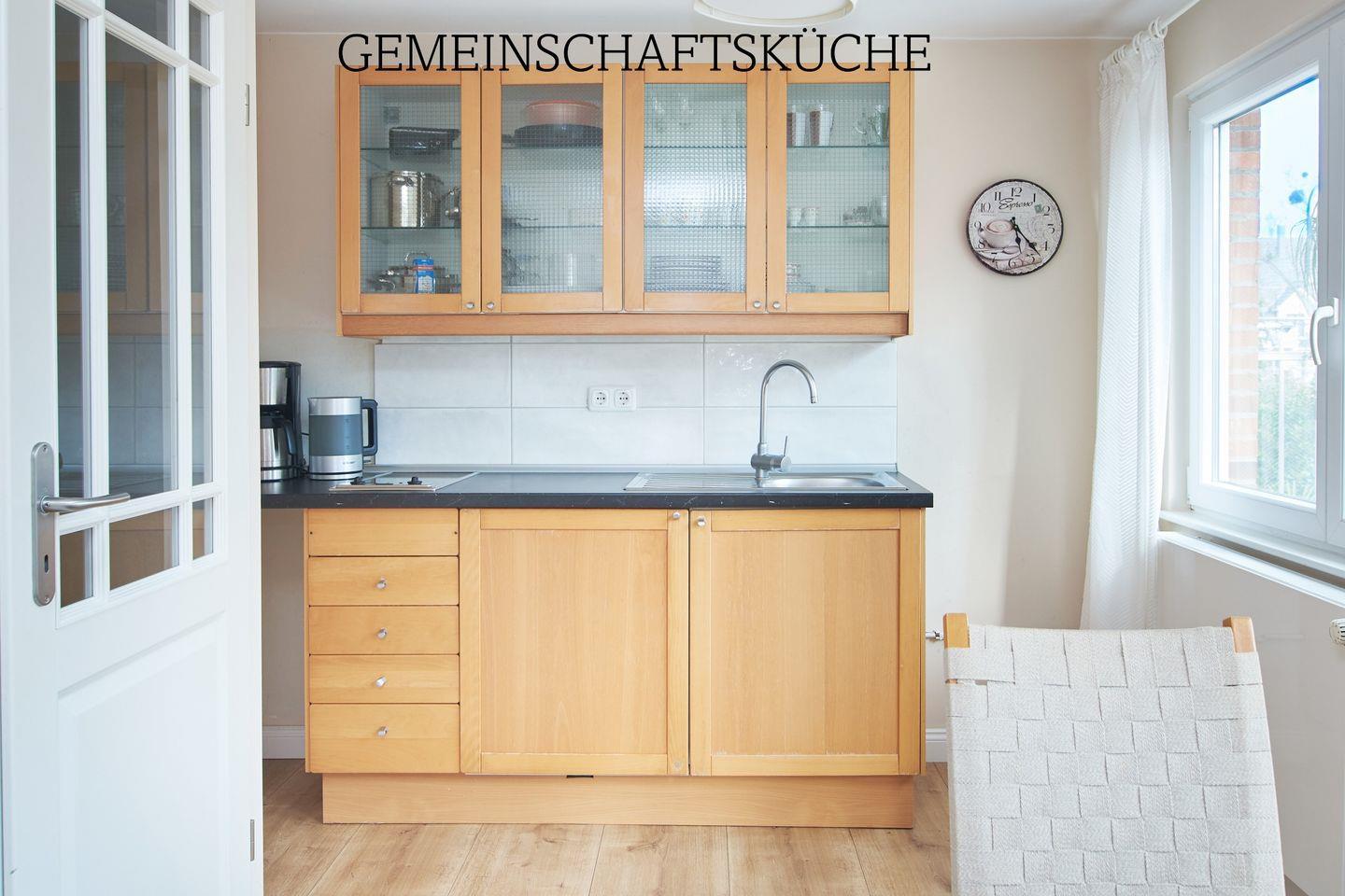 Die Gemeinschaftsküche im Hochparterre der Villa Dünenblick steht Ihnen bei diesem Doppelzimmer zur freien Nutzung zur Verfügung. Sie wird lediglich mit zwei weiteren Zimmern des Hauses geteilt.