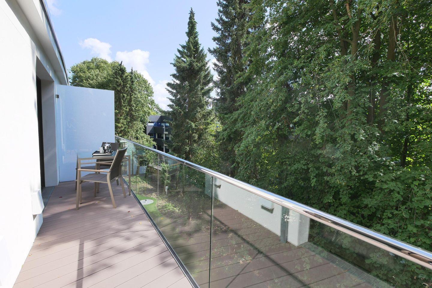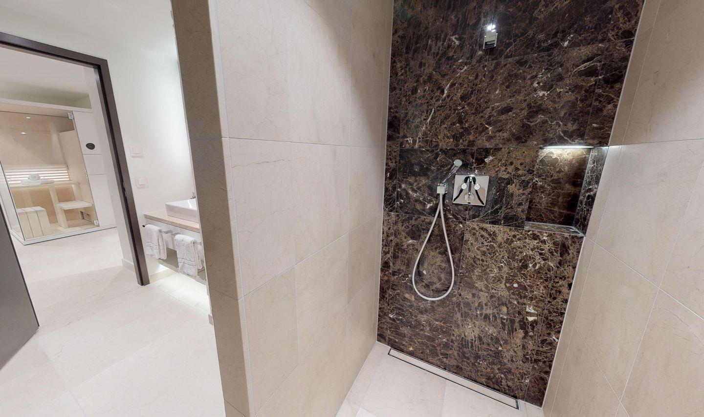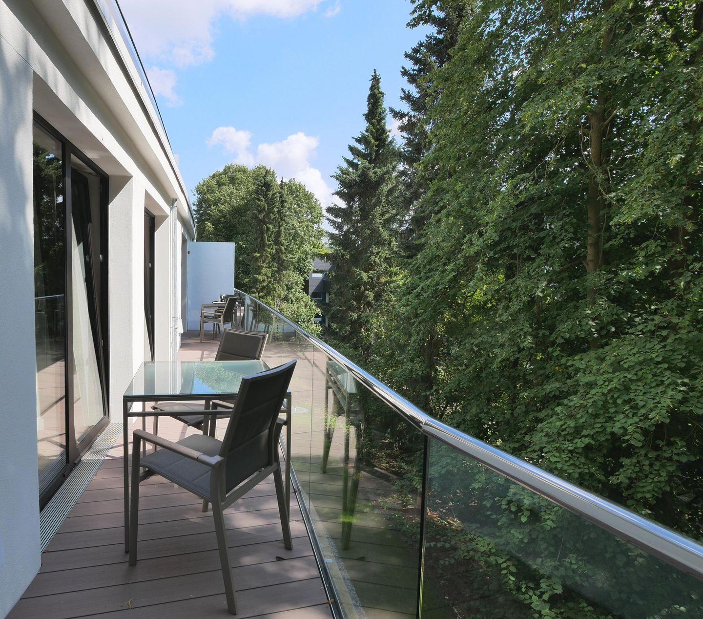 Highlights der Suite sind die eigene kleine Sauna (1,17m × 1,17m) sowie der möblierte Balkon Richtung Ostseite, der zu entspannten Stunden an der frischen Luft einlädt! Zur Wohnung gehört ein Tiefgaragenstellplatz.