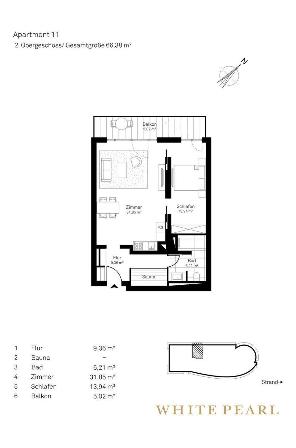 Nur wenige Meter vom Strand entfernt befindet sich das Luxusapartment 2.11 im 2. Obergeschoss des "White Pearl" und bietet auf 66 m² Platz für bis zu 4 Personen und Ihren Hund. Die Wohnung verfügt über ein separates, offenes Schlafzimmer sowie ein Schlafsofa im Wohnbereich für zwei Personen.