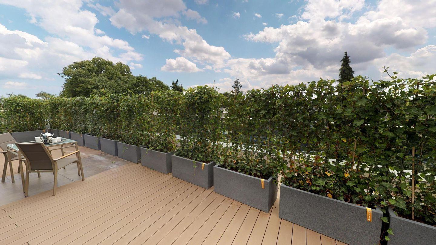 Zu den Highlights des Penthouses gehören eine eigene, gläserne Sauna (2,37m x 1,19m) sowie die langgestreckte, möblierte Terrasse, die zu entspannten Stunden an der frischen Meeresluft einlädt.
