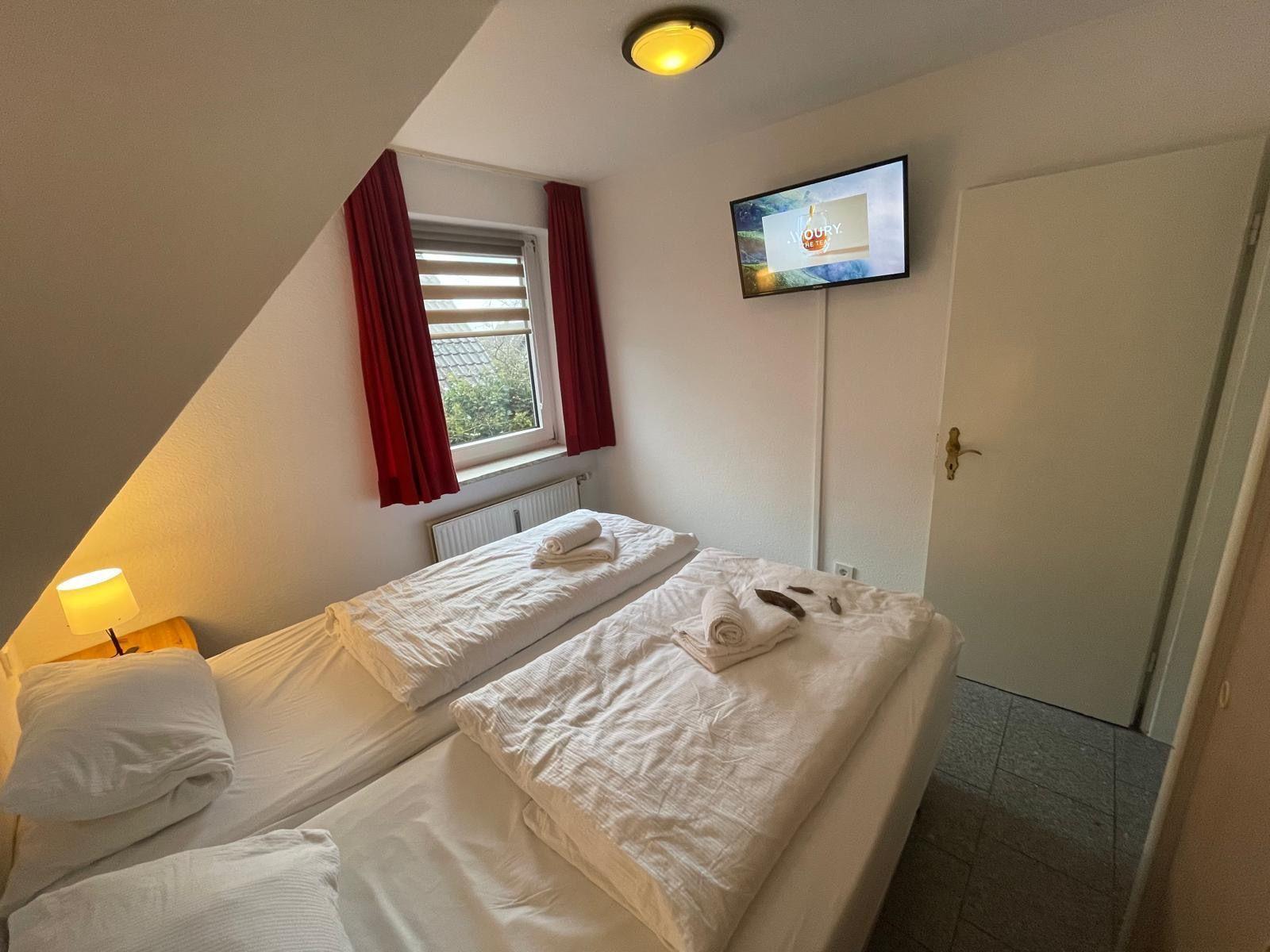 The interior of the holiday flat has been carefully designed to offer you maximum comfort during your stay. Two separate bedrooms, each with two single beds (which can be joined together in the lower room), windows and TVs, ensure peace and privacy. The American-style kitchen is equipped with state-of-the-art appliances such as a ceramic hob, pod coffee machine, dishwasher and kettle - ideal for cosy evenings or shared breakfast moments.