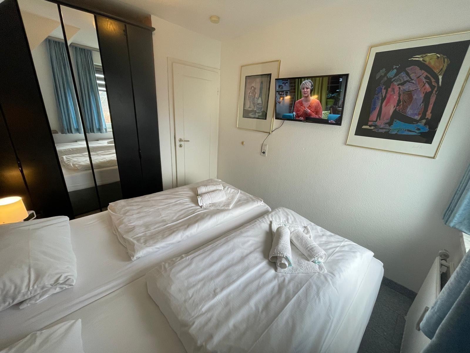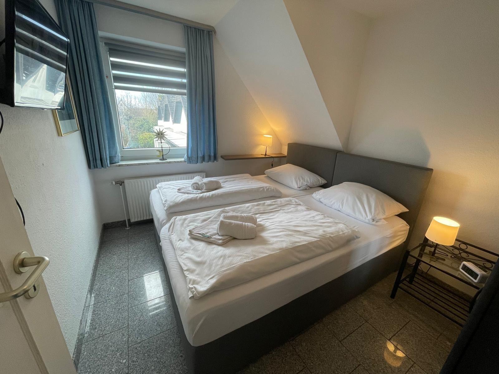 Inside, the flat invites you in with its modernly equipped living room, which includes an American kitchen area with fridge, hob, oven, dishwasher, coffee machine, kettle, toaster and much more. Here you will find everything you need for your kitchen at home. There is also a pull-out sofa bed for two guests. A separate bedroom offers two new single bunk beds, TV & window, while the second bedroom in the converted attic has two single beds and a TV.