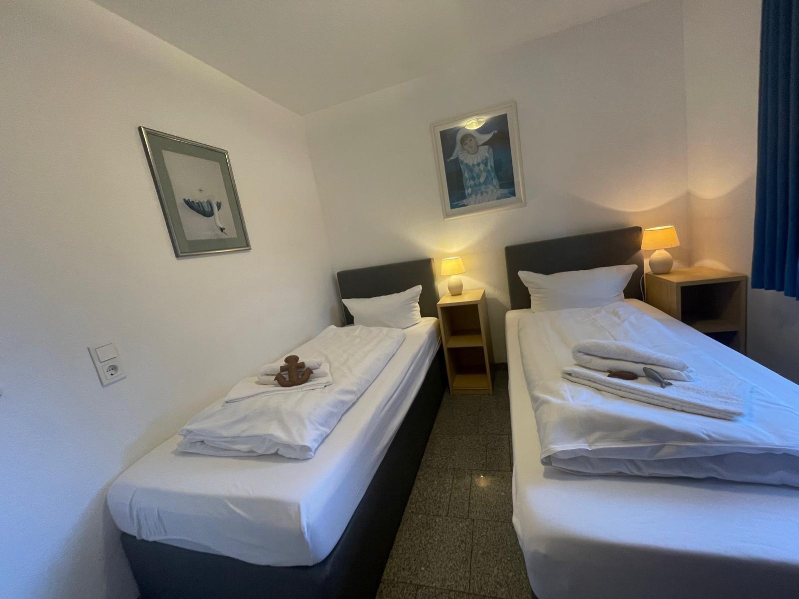 Inside, the flat offers an inviting living room with an American kitchen area that leaves nothing to be desired. From a fridge, hob with oven and dishwasher to a coffee machine, kettle and toaster, you'll find everything you're used to at home. And for additional guests, there is a pull-out sofa bed in the living area, while the separate bedroom is furnished with two new single bockspring beds. These can of course also be put together. The bedroom also has a TV, windows & shutters.