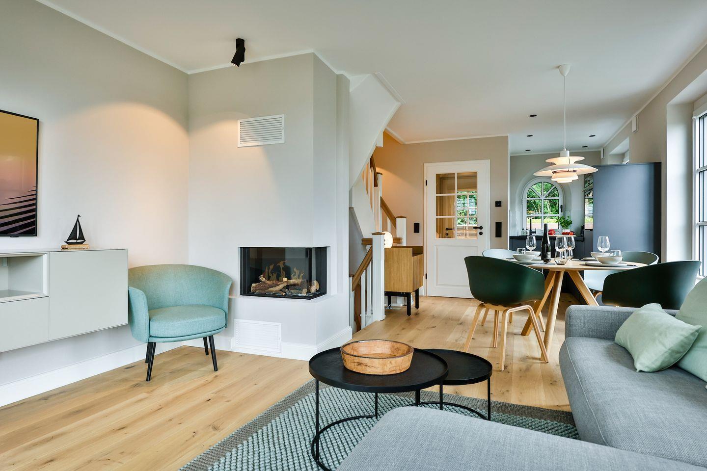 Der lichtdurchflutete Wohnraum des Hauses mit einer offenen und hochwertigen Küche, gemütlicher Sitzlandschaft, großem Smart-TV, Gaskamin und direktem Blick in den Garten. Die beiden Terrassen mit Süd- und Ostausrichtung laden schon zum Frühstück in der Morgensonne ein und bieten bis in die Abendstunden pure Entspannung.