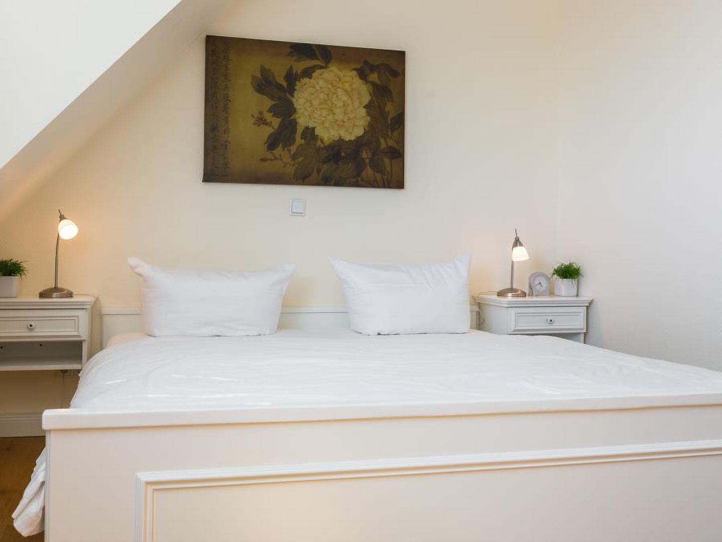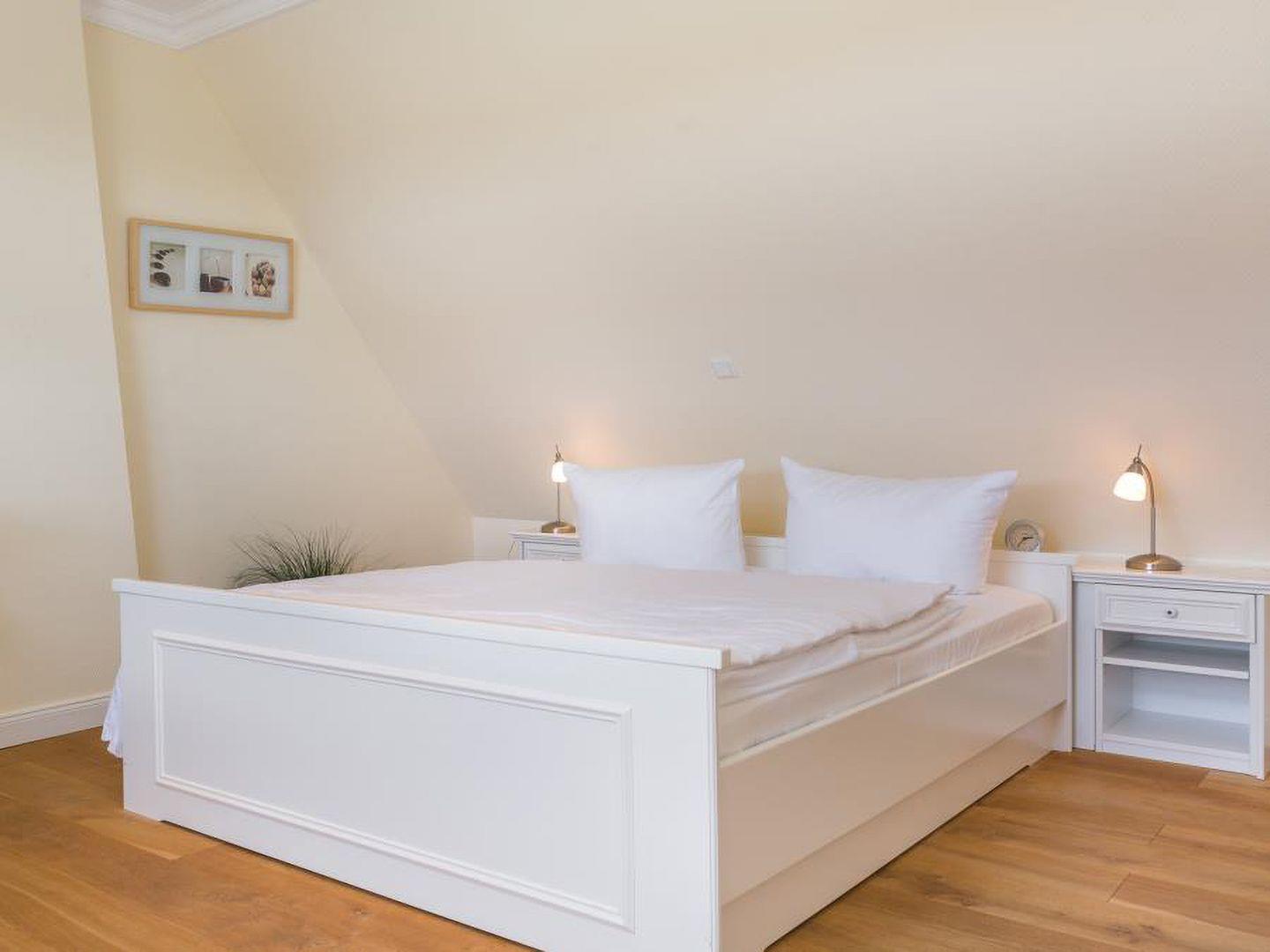 Dieses gemütliche Reiheneckhaus (ca. 118 m²) in Tinnum, Sylt, bietet Platz für bis zu 6 Personen und liegt fernab vom Trubel, jedoch zentral und mit herrlichem Blick auf die Tinnumer Wiesen. Es bietet ländliche Idylle ohne Lärm und Durchgangsverkehr, mit direkten Spazier- und Radwegen vor der Haustür. Der Strand ist ebenfalls nicht weit entfernt, ideal für entspannte Spaziergänge. Im Erdgeschoss befinden sich eine moderne, separate Küche sowie ein Wohnzimmer mit gemütlicher Sitz- und Essecke. Zur Ausstattung gehören ein TV-Flachbildschirm, eine Stereoanlage mit DVD-Player und ein Gäste-WC im Eingangsbereich. Vom Wohnzimmer gelangt man auf die Südterrasse mit großem Garten, Tisch und Stühlen, die zum Sonnenbaden einlädt. Im Obergeschoss gibt es zwei Schlafzimmer mit Doppelbett (180 x 200 cm) und ein Duschbad mit WC und Fenster. Ein weiteres Schlafzimmer mit Doppelbett (180 x 200 cm) befindet sich im Dachgeschoss und verfügt über ein kleines Duschbad mit WC. Zur Ausstattung gehören außerdem eine Waschmaschine in der Garage und ein kostenfreier Stellplatz. Ein Fahrradraum ist nicht vorhanden. Haustiere sind willkommen.