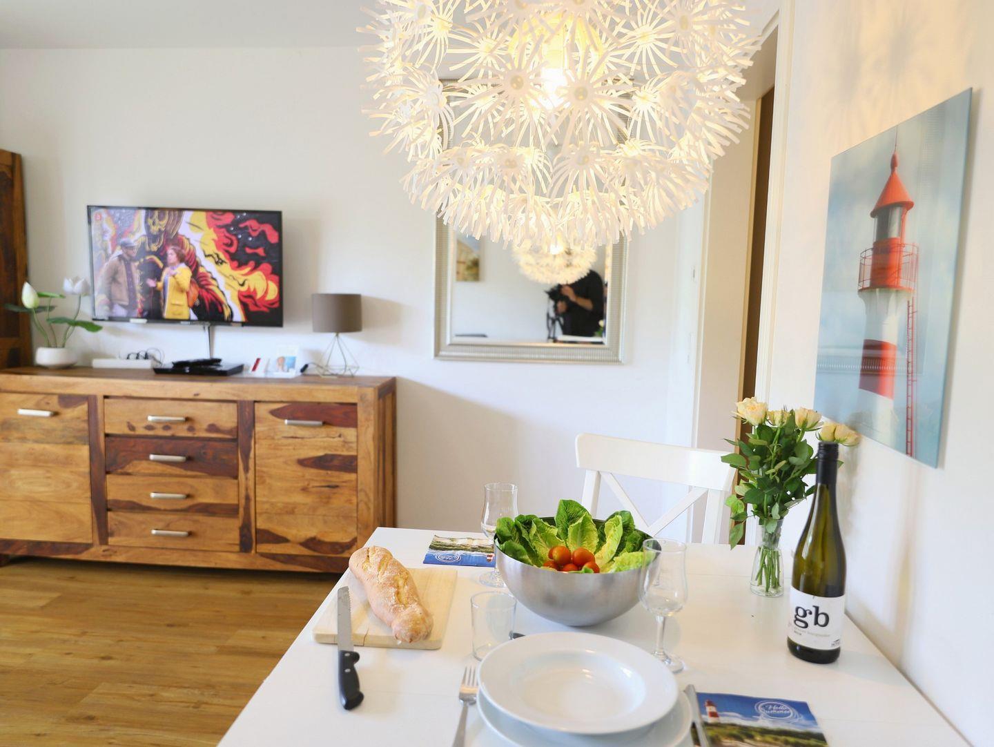 Zentrale, modern eingerichtete Ferienwohnung für 2 Personen in Tinnum mit Süd-Terrasse, Garten und elegantem Stellplatz. Haustiere willkommen!