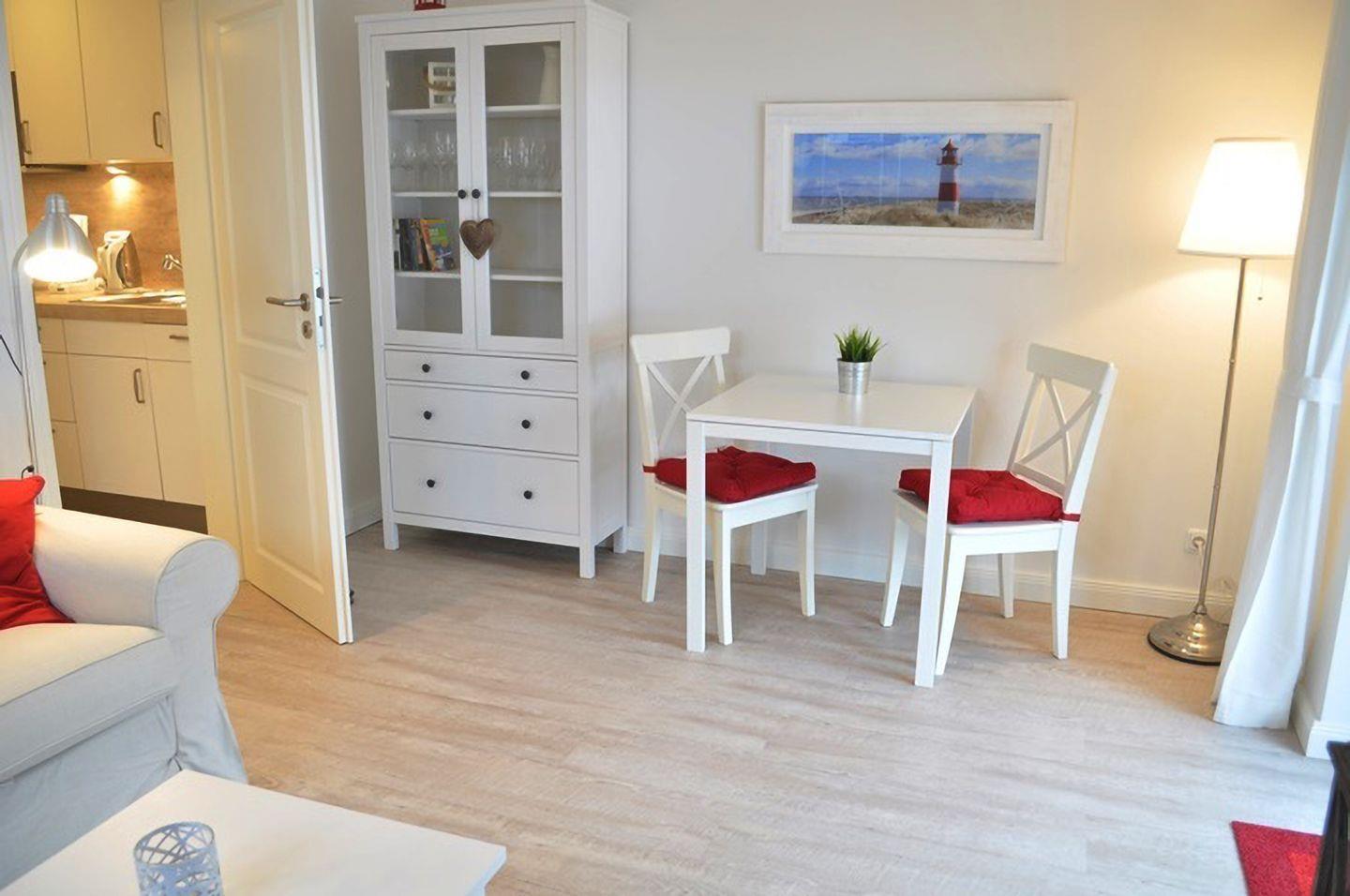 Diese moderne Ferienwohnung in Tinnum bietet auf ca. 55 m² eine ideale Unterkunft für bis zu 3 Personen. Der gemütliche Wohn-/Essbereich mit direktem Zugang zur sonnigen Süd-Terrasse und dem kleinen Garten lädt zum Verweilen und Entspannen ein. Das separate Schlafzimmer verfügt über ein großes Doppelbett (160 x 200 cm) und einen geräumigen Kleiderschrank, der viel Stauraum bietet. Ein komfortables Schlafsofa (160 x 200 cm) steht im Wohnbereich zur Verfügung. Die gut ausgestattete Küchenzeile lässt keine Wünsche offen und lädt zum Kochen ein. Das moderne Badezimmer ist mit Dusche und WC ausgestattet. Im Keller stehen unseren Gästen eine Waschmaschine und ein Trockner zur Verfügung (Münzbetrieb). Einkaufsmöglichkeiten sind nur 2 Minuten entfernt, sodass alles Wichtige schnell erreichbar ist. Ein kostenfreier Stellplatz gehört zur Wohnung. Haustiere sind nicht gestattet.