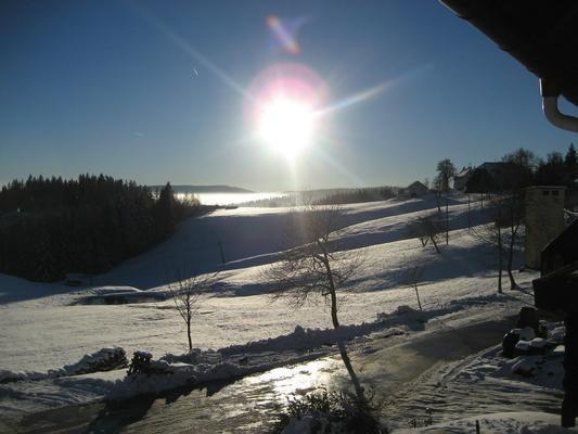Our house is located in the rural district of Schwärzenbach at an altitude of 1,080 metres. In a few minutes by car from the idyllic village area you are at the lively and vibrant Titisee. The flat is on the ground floor and has a separate entrance with terrace and sunbathing lawn. It is fully equipped. In the bedroom you have satellite TV, in the living room satellite TV, video recorder, CD player, stereo system with cassette recorder. In the living room there are 2 very good wall folding beds, so that the flat can be occupied by 4 people and a child. You can access the Internet via WLAN. Towels and bed linen are provided. There is a children's room adjoining the bedroom for your toddler. The cot can also be exchanged for an extra bed if required. A high chair is of course available. The last renovation took place this year. The bathroom and the bedroom have been completely renovated.