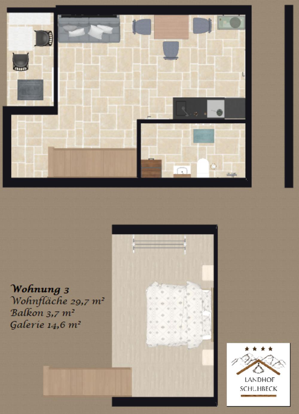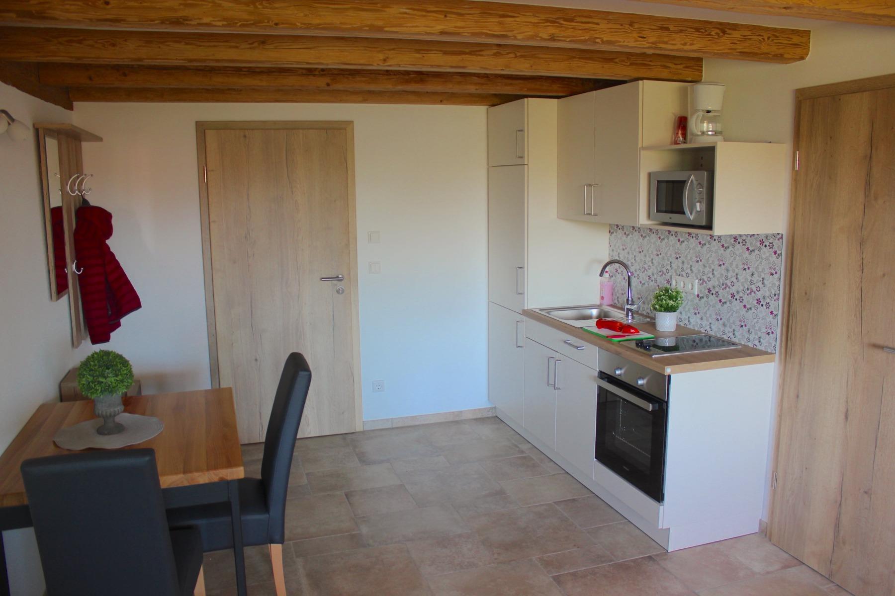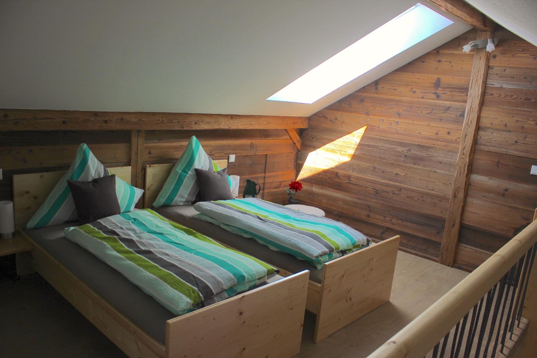 Welcome to the Schuhbeck family in the small and tranquil village of Kay near Tittmoning on the Salzach in the beautiful Chiemgau/Rupertiwinkel.In our new, beautifully furnished vacation apartments in a former stable you will find peace and relaxation. But also for catering by a supermarket, a butcher and a baker and entertainment for your children is provided by the playground nearby.For a restful and relaxing vacation provide our four modernly equipped apartments in historic wooden construction in the former hayloft. They offer a living space between 40 and 52 sqm^2 and can accommodate 2-4 people. Each apartment contains a kitchen incl. dining and living area, a private bathroom and a bedroom in the gallery and is between 40 and 52 sqm. Further details can be found in the individual descriptions of the apartments.We charge a surcharge of € 50.00 for short stays (1-3 days). In addition, you can park with us free of charge.