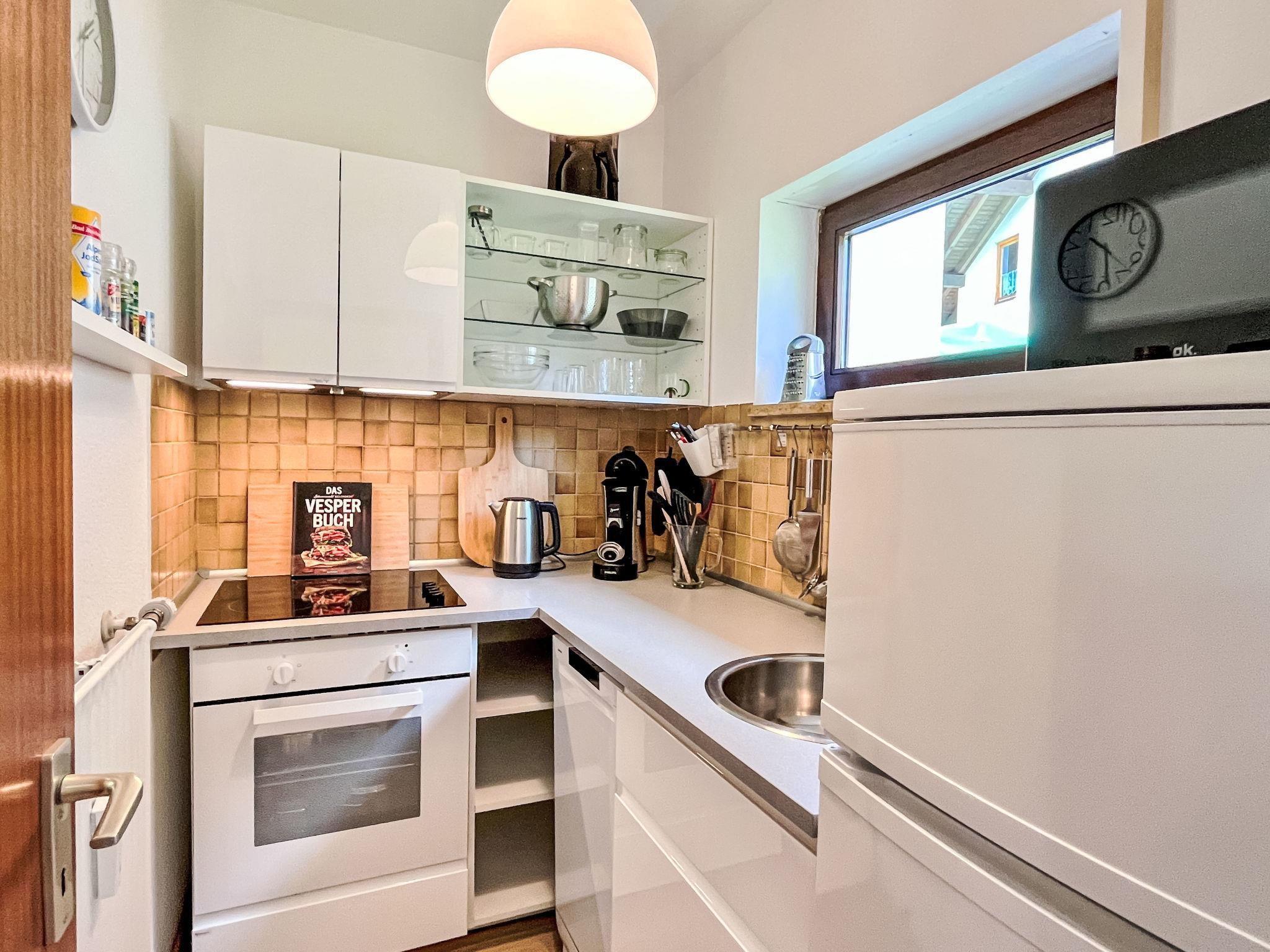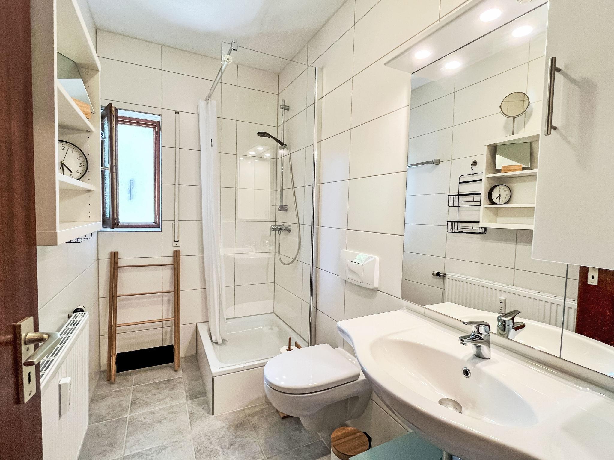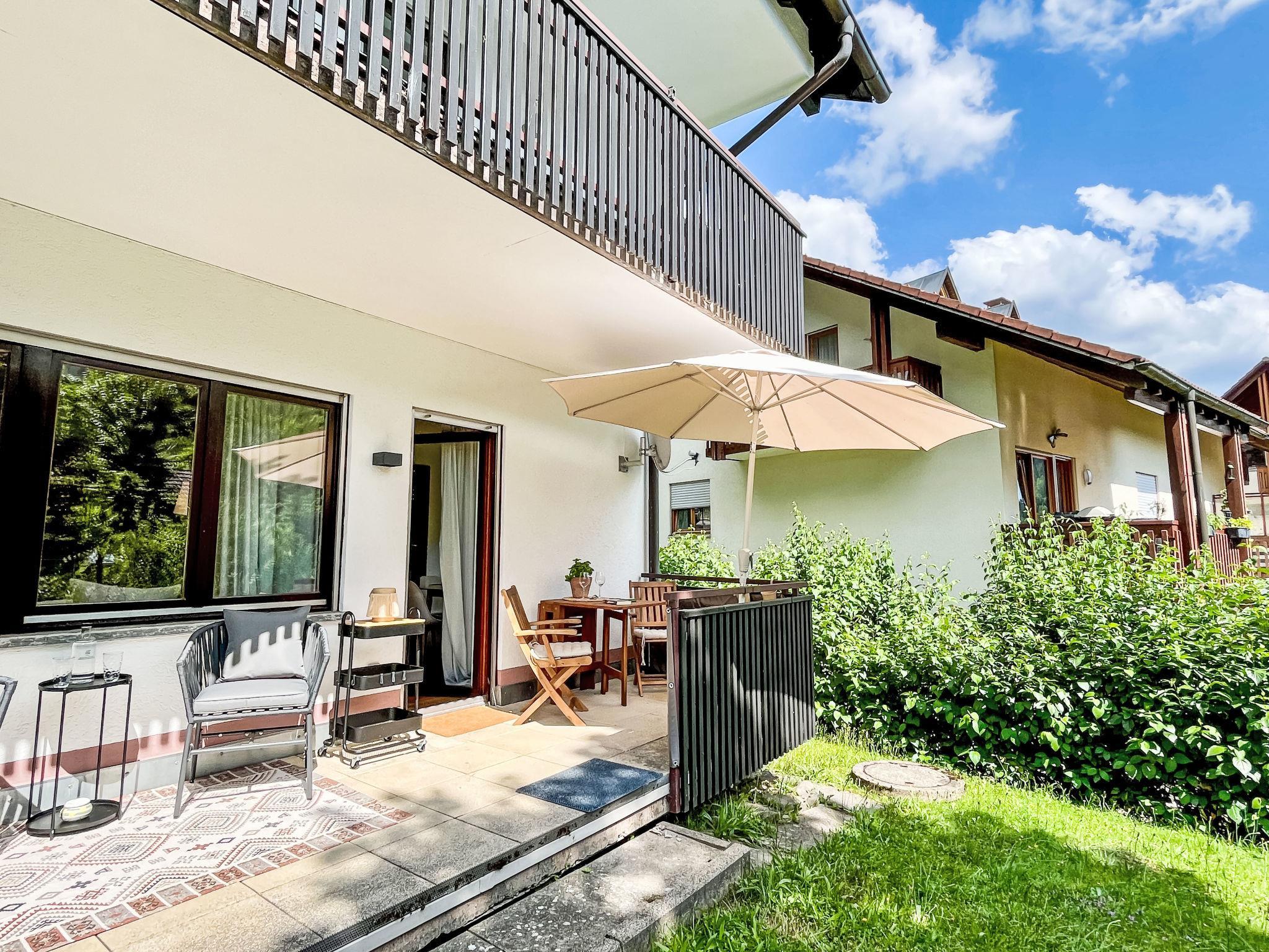 "Bergsonne", 2-room apartment 48 m2, lower ground floor. Spacious and bright, beautiful and tasteful furnishings: entrance hall. Living/dining room with satellite TV (flat screen). Exit to the terrace. 1 large room with 1 double bed (2 x 90 cm, length 200 cm). Small, open kitchen (oven, dishwasher, 3 ceramic glass hob hotplates, toaster, kettle, microwave, electric coffee machine). Shower/WC. Oil heating. Terrace 16 m2. Terrace furniture, electric barbecue (portable), deck chairs (2). Beautiful view of the garden. Facilities: Internet (WiFi, free). Parking at the house. Please note: non-smokers only. Smoke alarm, fire extinguisher, no lift. Bed layout is flexible. There are more sleeping options available than the maximum number of people allowed which may, however, not be exceeded.