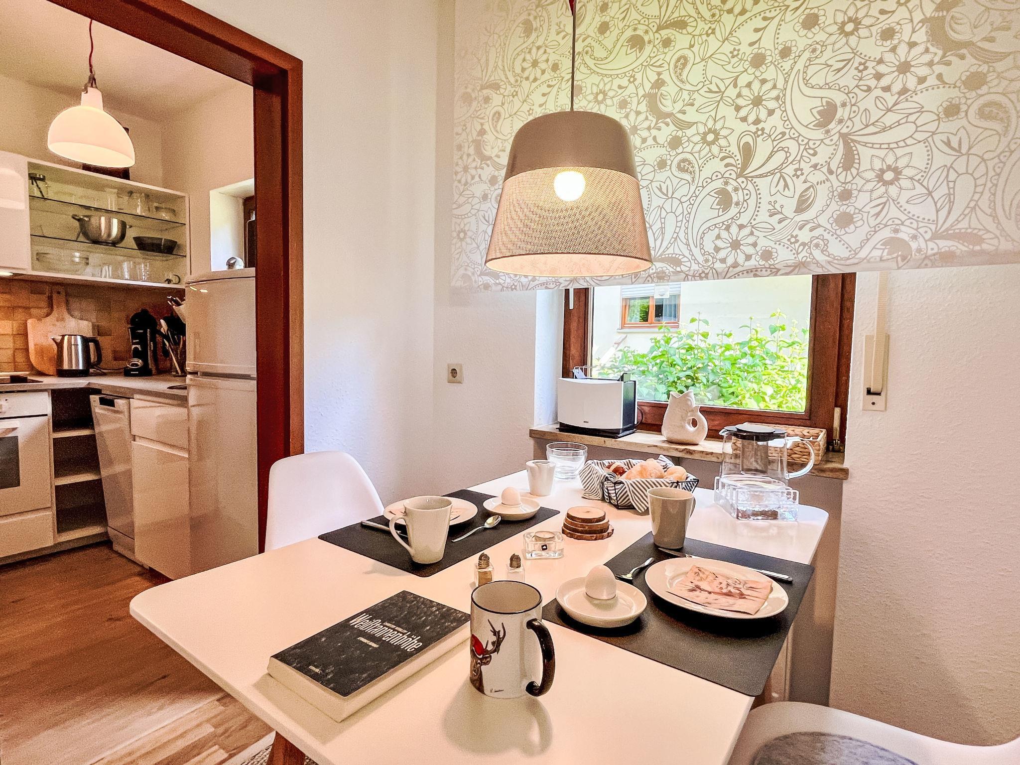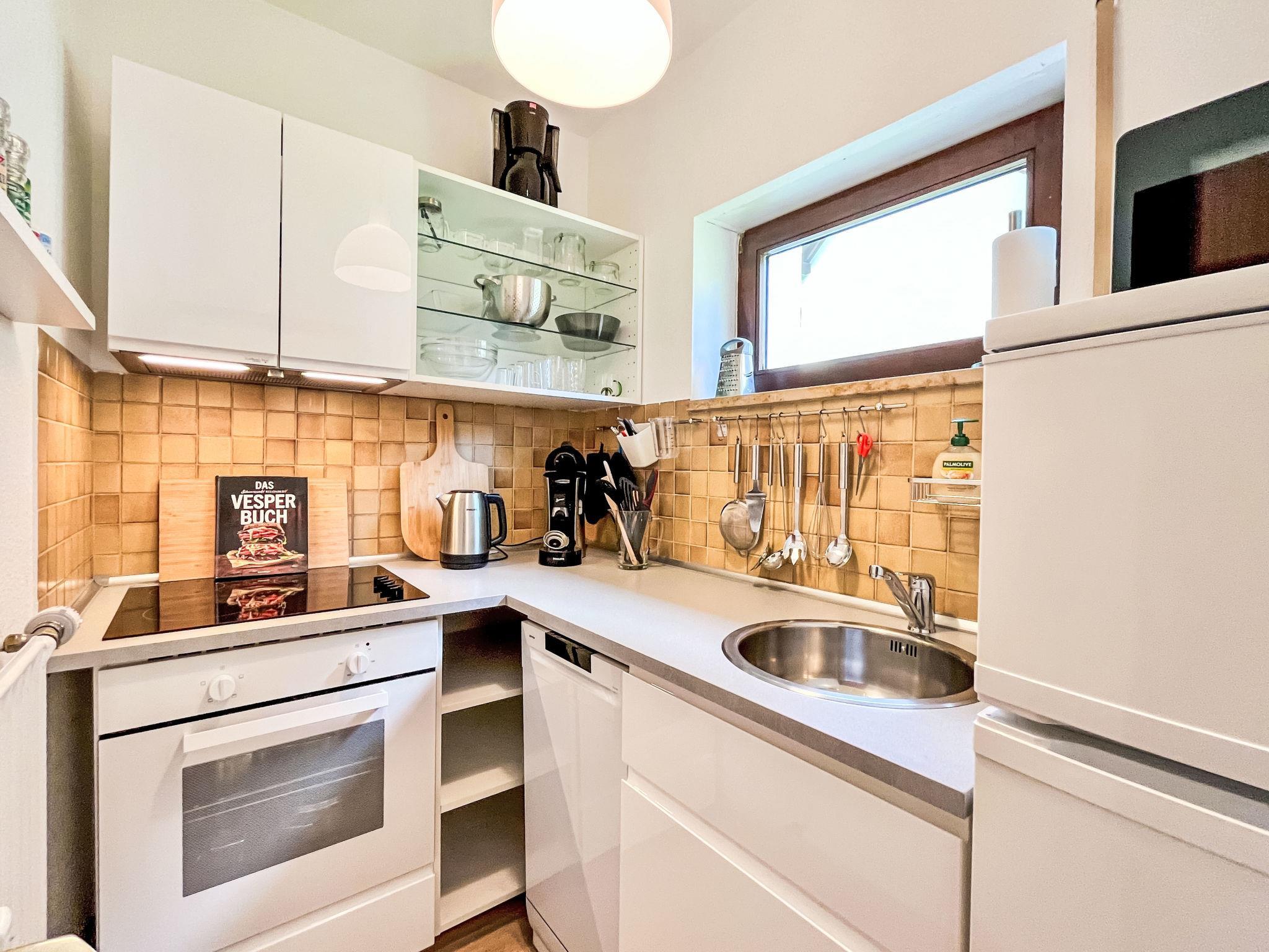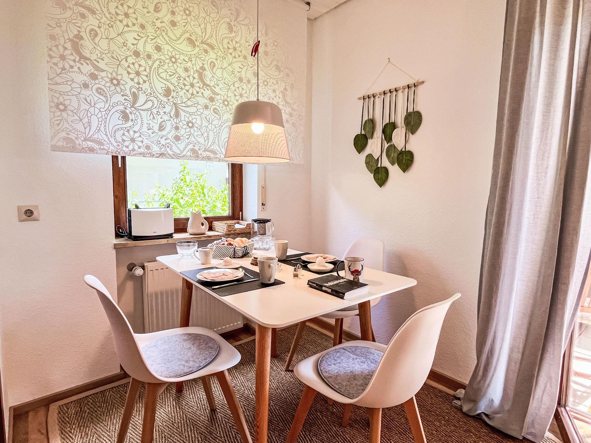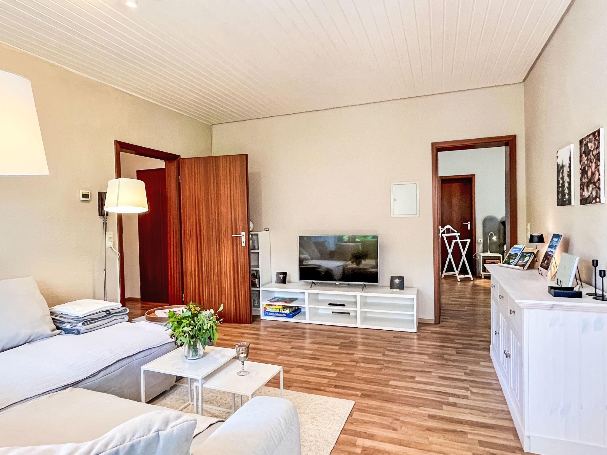 "Bergsonne", 2-room apartment 48 m2, lower ground floor. Spacious and bright, beautiful and tasteful furnishings: entrance hall. Living/dining room with satellite TV (flat screen). Exit to the terrace. 1 large room with 1 double bed (2 x 90 cm, length 200 cm). Small, open kitchen (oven, dishwasher, 3 ceramic glass hob hotplates, toaster, kettle, microwave, electric coffee machine). Shower/WC. Oil heating. Terrace 16 m2. Terrace furniture, electric barbecue (portable), deck chairs (2). Beautiful view of the garden. Facilities: Internet (WiFi, free). Parking at the house. Please note: non-smokers only. Smoke alarm, fire extinguisher, no lift. Bed layout is flexible. There are more sleeping options available than the maximum number of people allowed which may, however, not be exceeded.