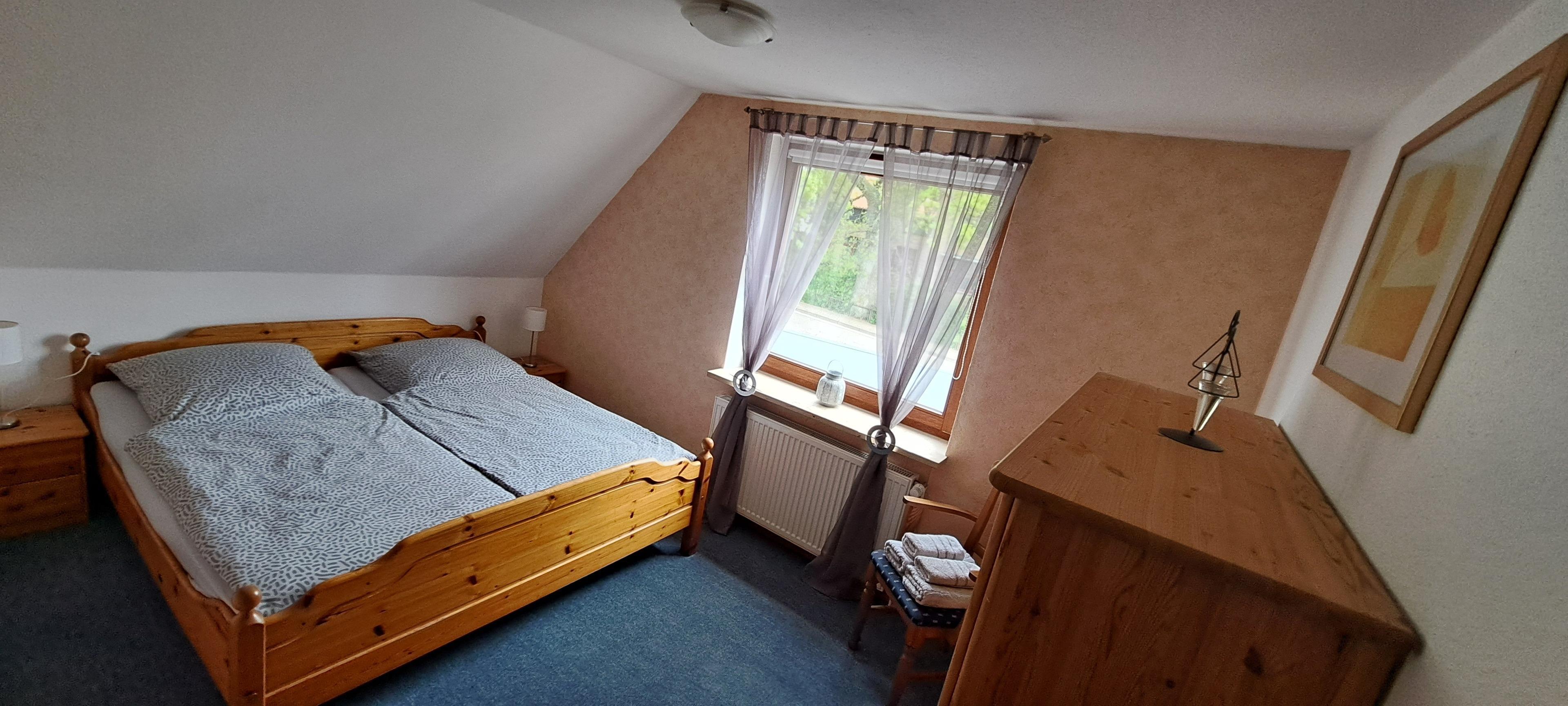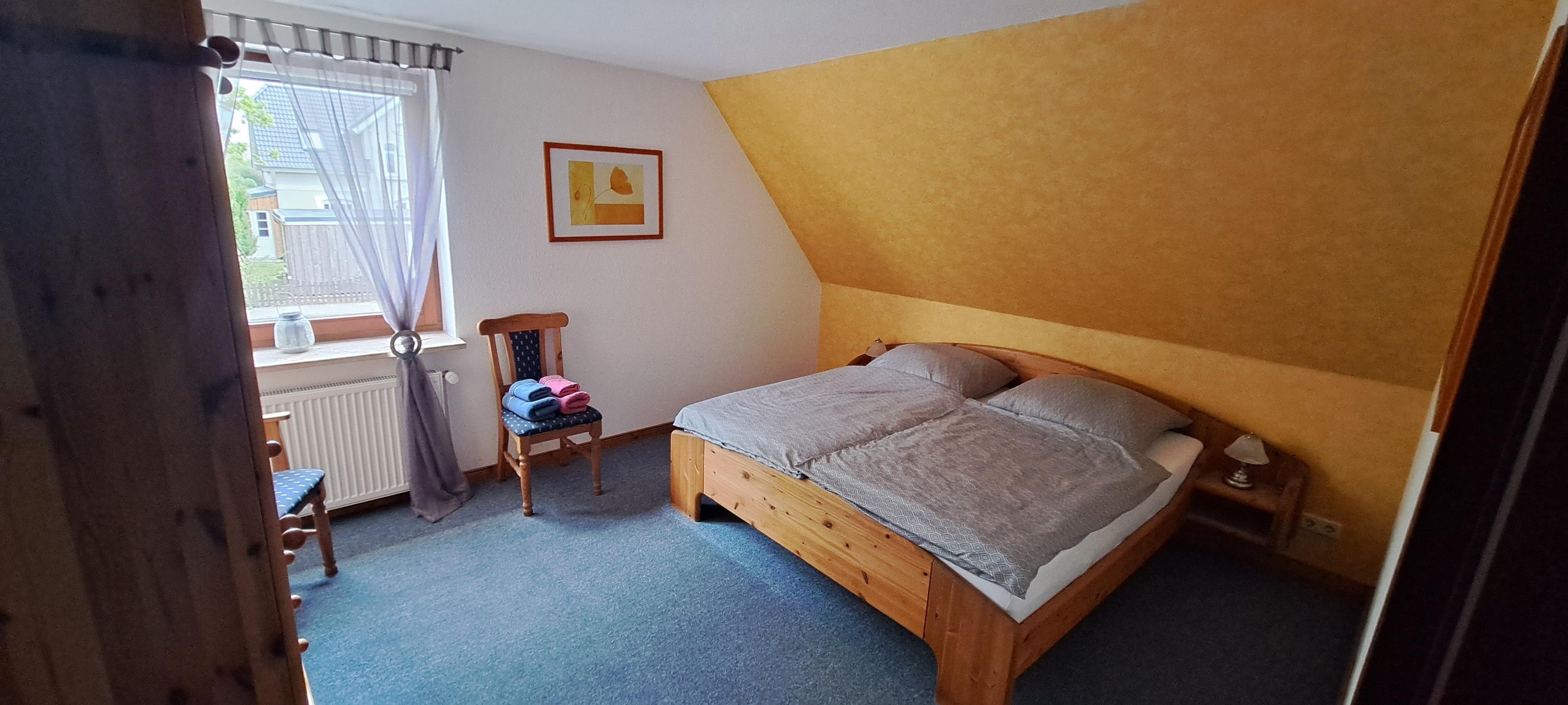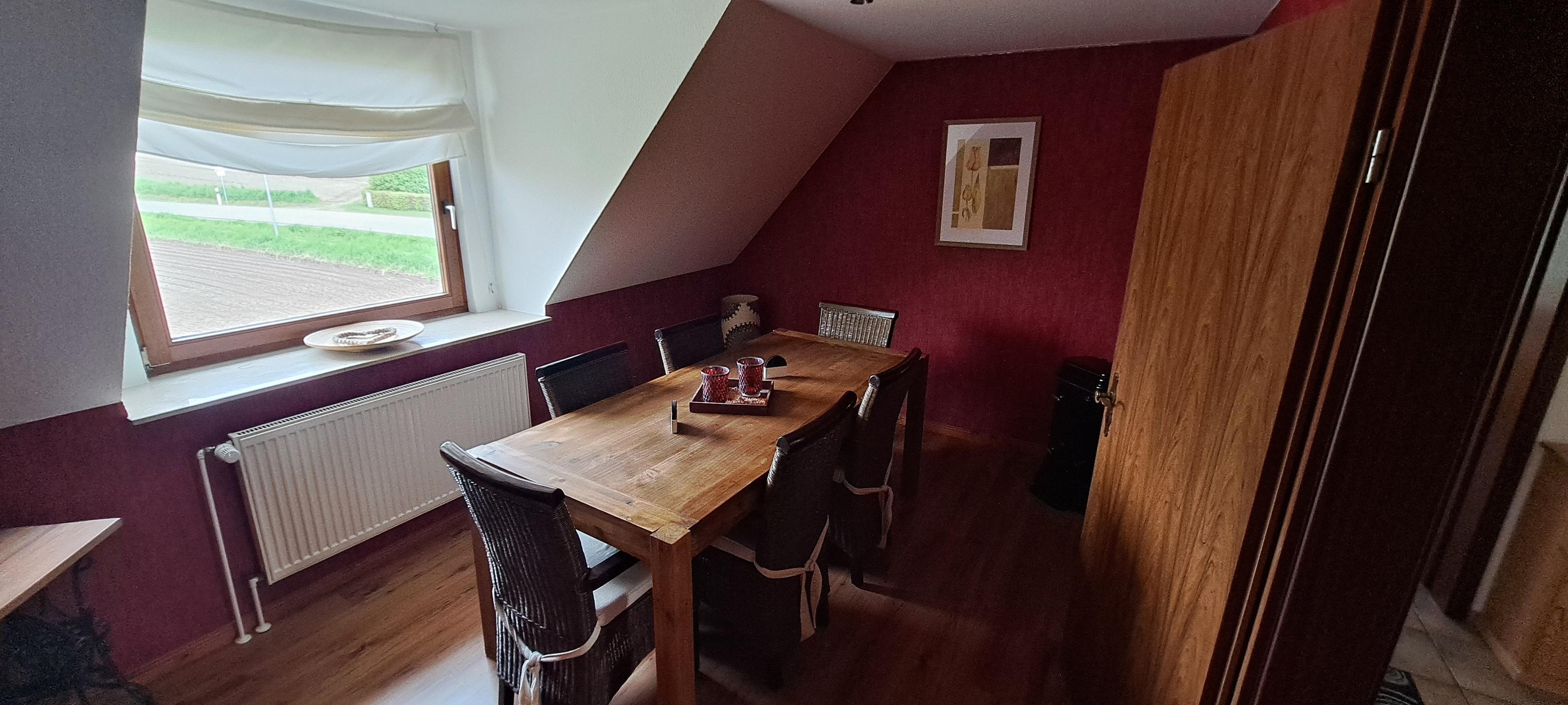 Das Haus wurde 1990 gebaut. Die Ferienwohnung liegt im Obergeschoss. Es stehen zwei Schlafzimmer mit Doppelbetten zur Verfügung. Eine vollausgestattete Küche, ein Badezimmer mit Dusche und WC sowie ein geräumiges Wohnzimmer und ein separates Esszimmer sind ebenfalls vorhanden. Ein nach Süden ausgerichteter Balkon mit Sicht auf Feld und Wiesen lädt zum Entspannen ein.