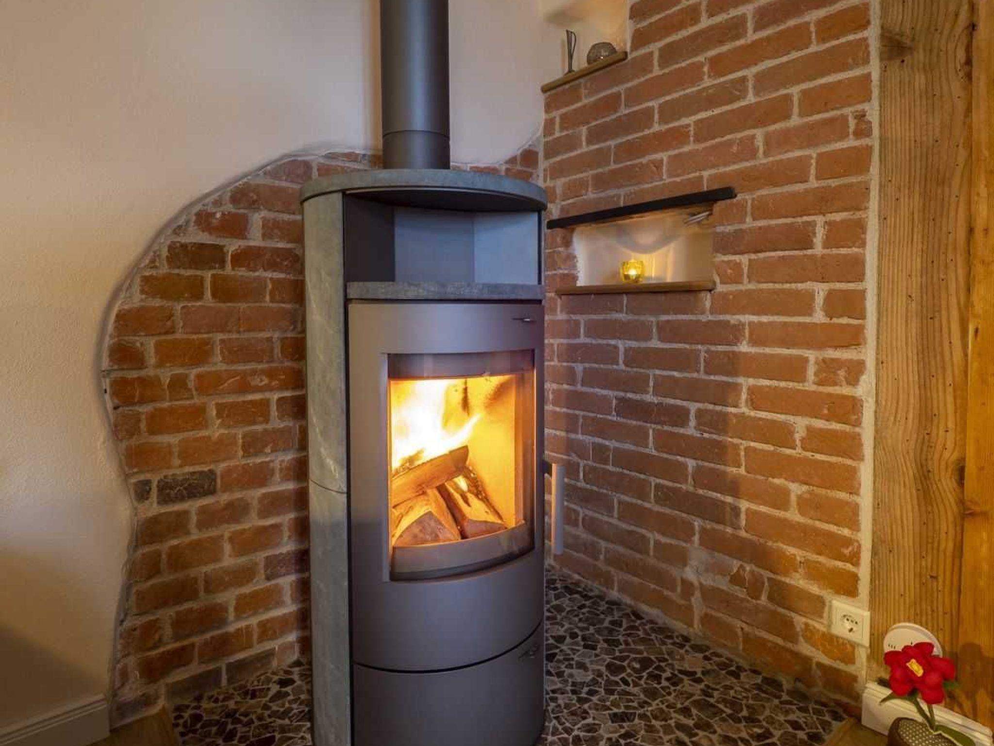 Im großzügigen Wohnraum befindet sich eine bequeme Ledercouch mit Schlaffunktion incl. Matratzentopper (Gel-Schaum) (Liegefläche 1,20 x 2,00m), ein Esstisch mit 4 Stühlen, ein Kaminofen, ein 50“ UHD TV mit Streamingdiensten, Radio mit CD und DAB+ Empfang. Ein besonderes Detail ist die handgefertigte Garderobe aus Mooreichenholz. Infomaterial, Bücher und Spiele sind ebenfalls vorhanden. Ein kostenfreier Internetzugang über WLAN steht zur Verfügung.