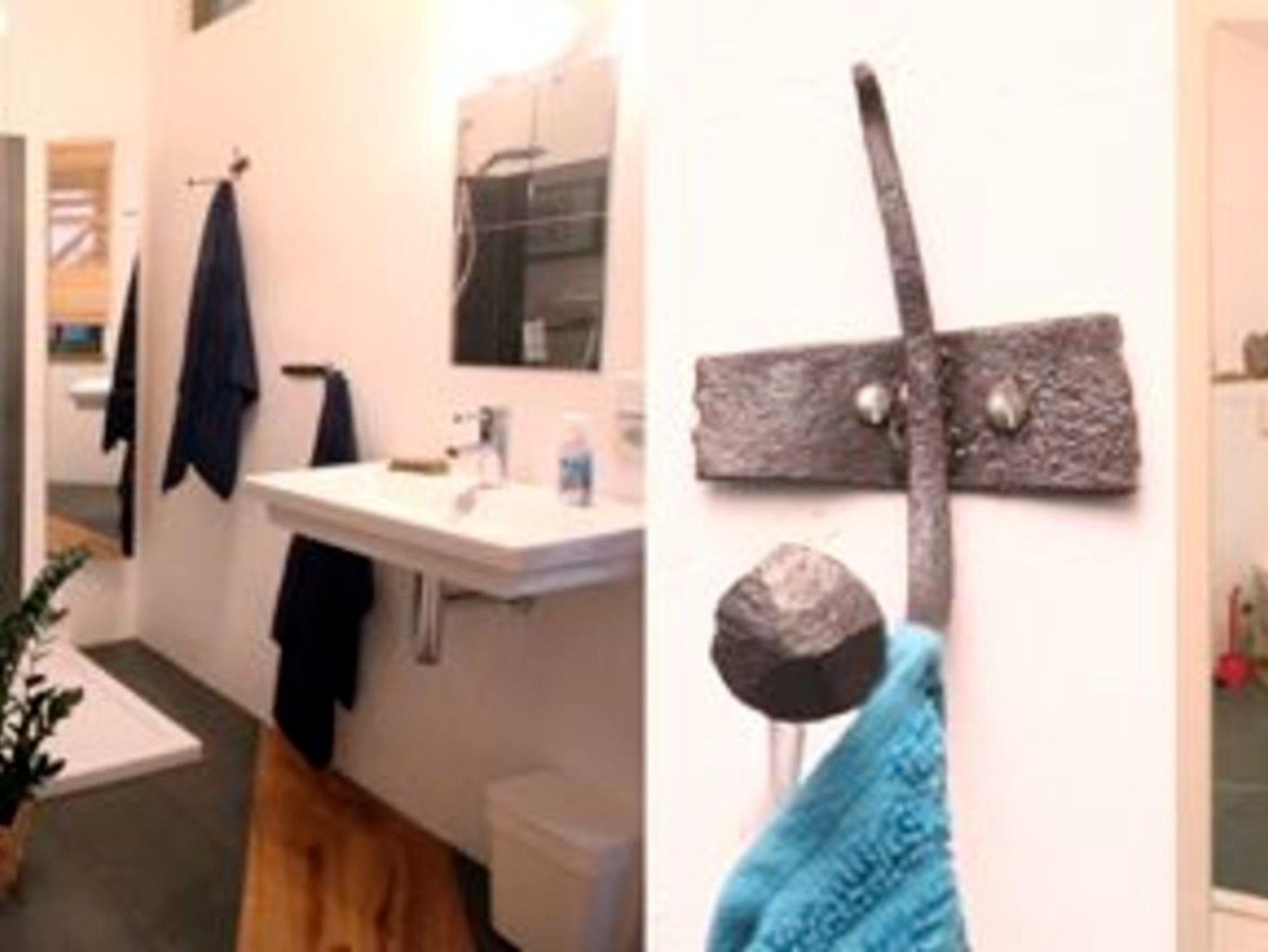 wie Handtuchhalter aus historischen Nägeln. Die große Dusche verfügt über eine automatische Temperaturreglung. Duschbad, Shampoo, Fön und Handtücher sind selbstverständlich vorhanden.