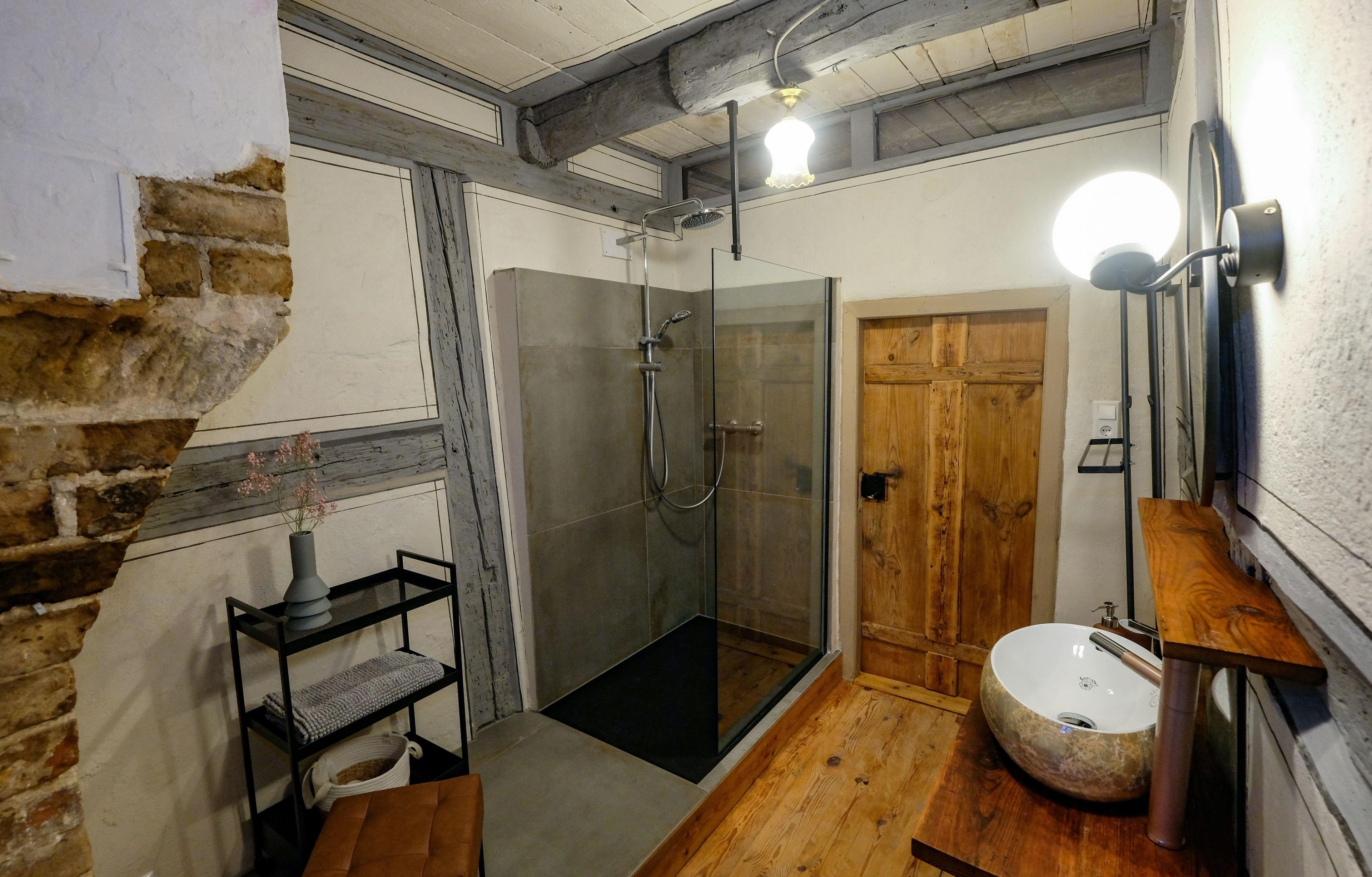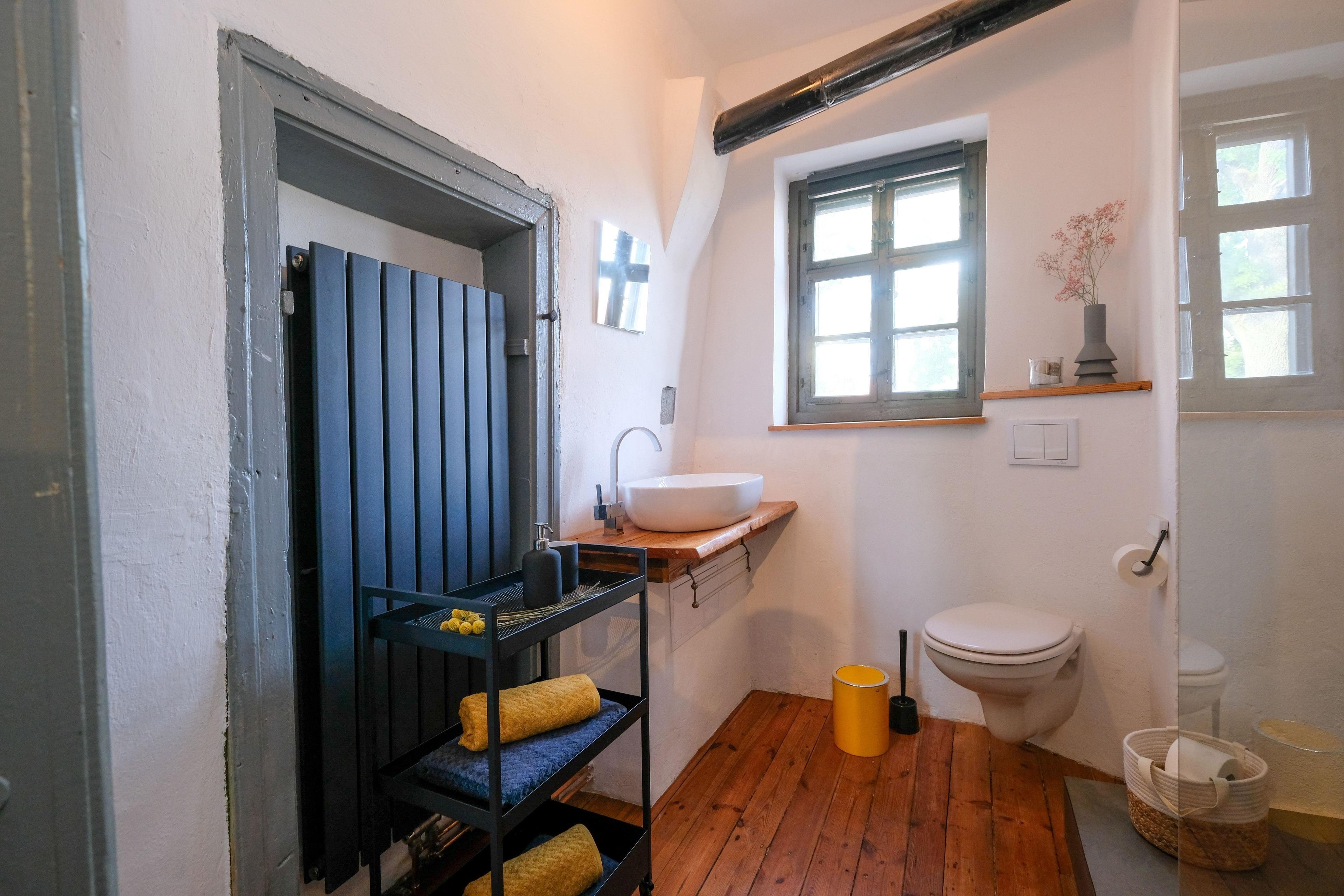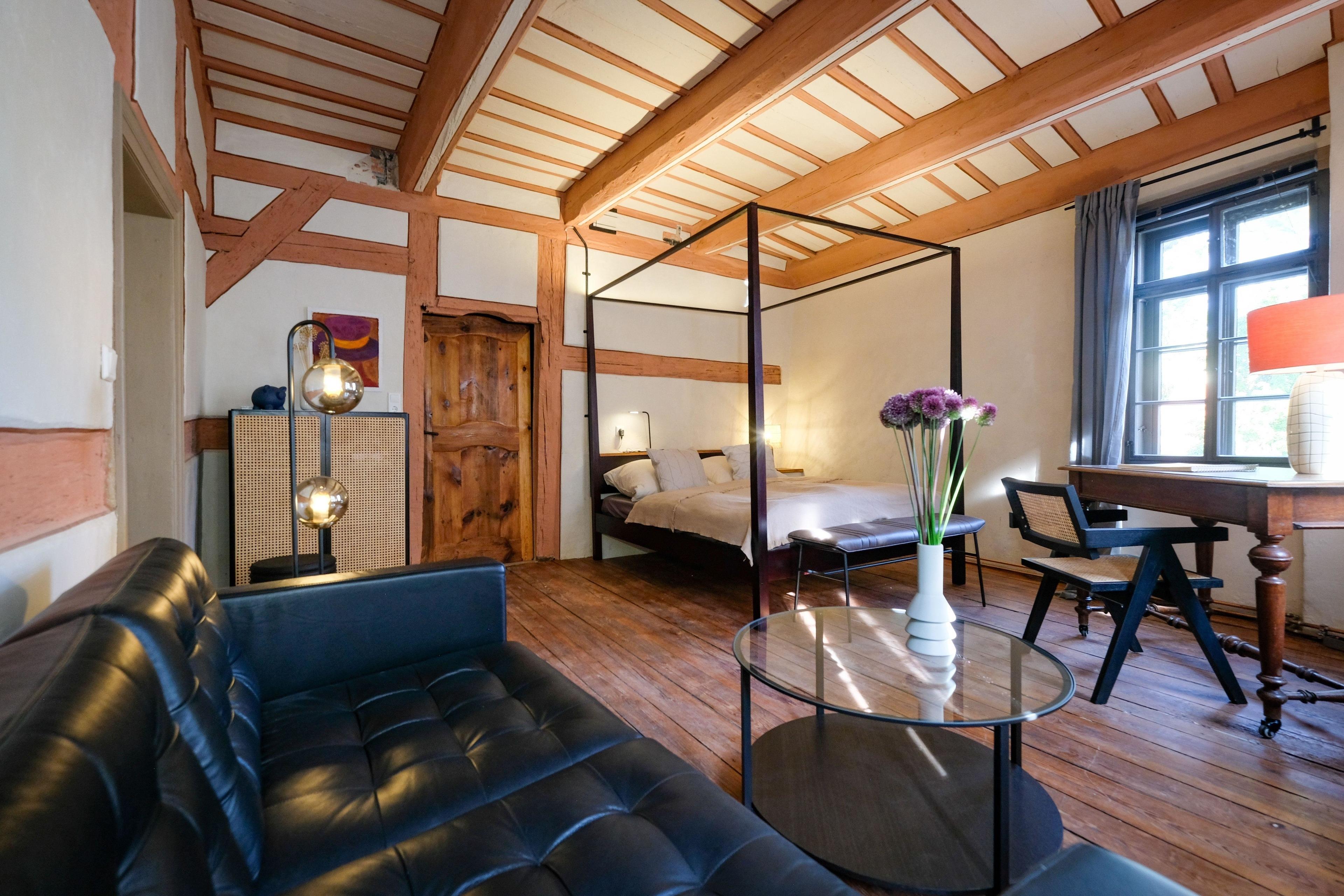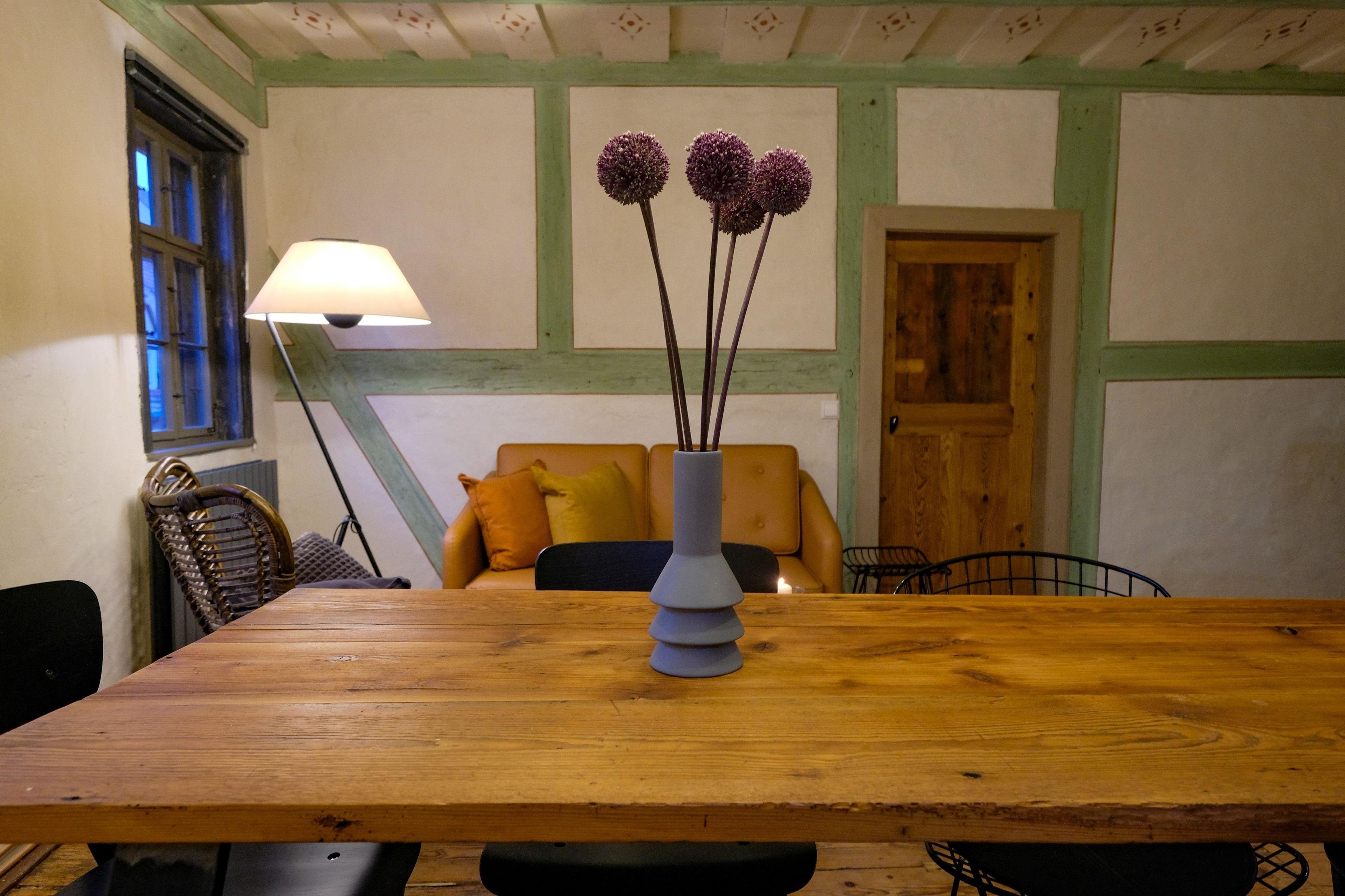 Am Anfang des 16. Jahrhunderts lies der letzte Abt von Doberlugk das Haus bauen. Großzügig über 150m2 vom Erdgeschoss über zwei Etagen ist ein Urlaubsraum für bis zu 7 Personen entstanden. Die historische Bausubstanz mit dem innenliegenden Fachwerk und den Bemalungen an Decke und Wand, die uralten Dielenböden und die in hunderten von Stunden in Handarbeit aufwendig erhaltenen alten Fenster, zeigen die Spuren der Zeit. Hier ist allein die Geschichte Architekt. Durch die sich harmonisch einfügenden, teils auch durch bewusst Kontraste setzende moderne Einrichtungselemente ist ein Ferienhaus voller Individualität entstanden, dass die Spuren seiner Vergangenheit bewusst bewahrt, erzählt und mit modernem Wohnkomfort von heute verbindet.