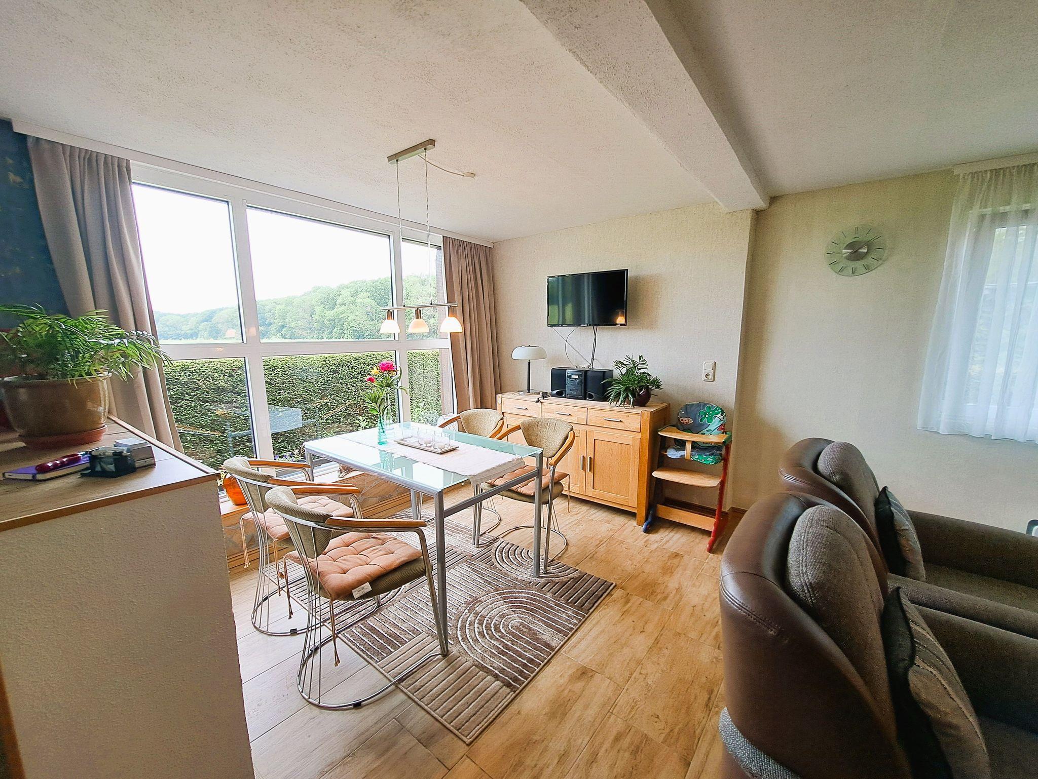 Die gemütliche Couchlandschaft, die bei Bedarf für eine dritte Person ausgezogen werden kann, ist perfekt für entspannte TV-Abende. Zwei Sessel bieten zusätzlichen Komfort, während Sie sich nach einem ereignisreichen Tag erholen.