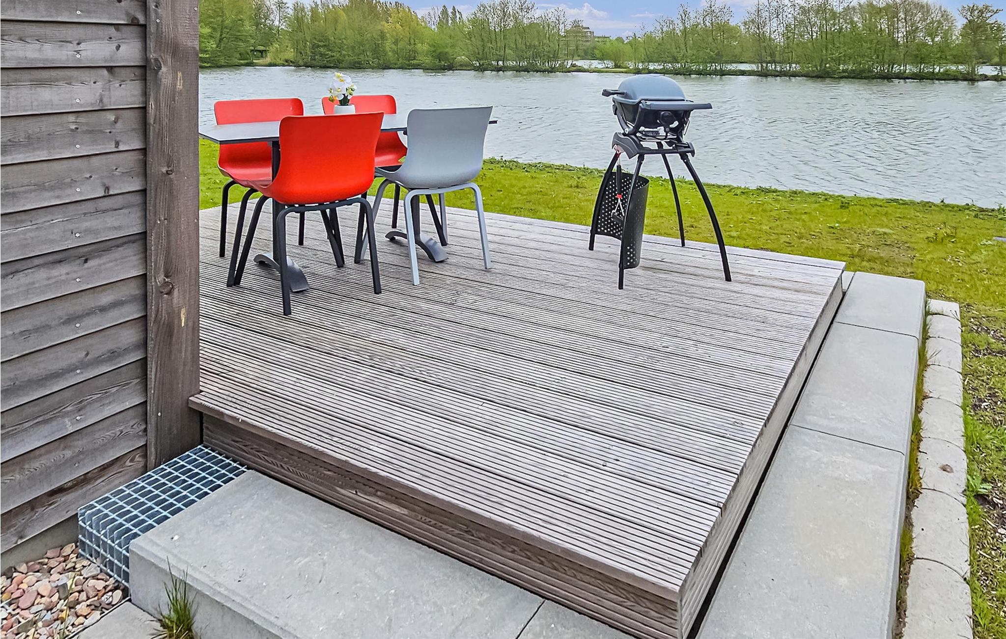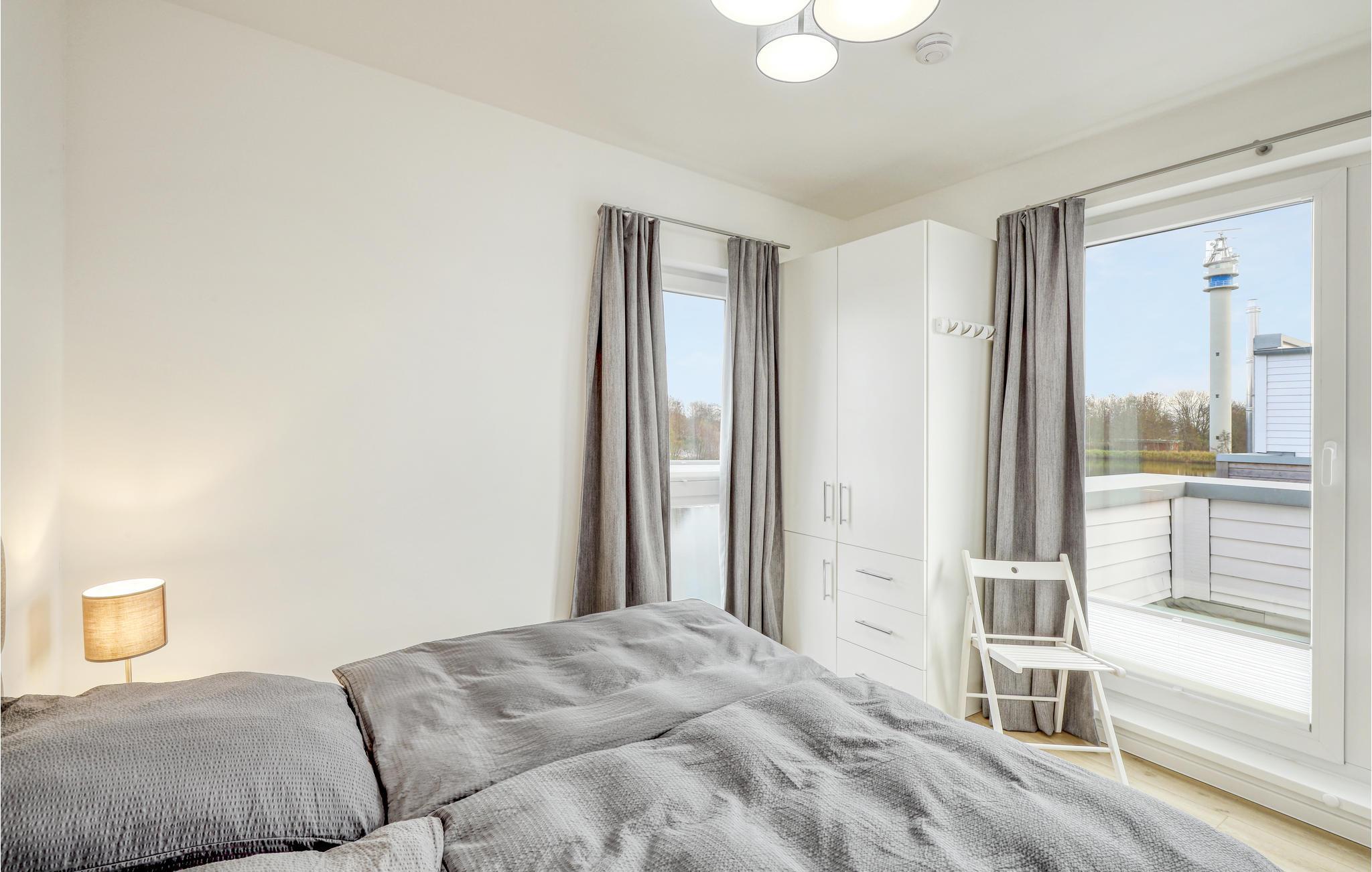 Midt i naturen ligger denne familievenlige feriepark. Jeres hus fordeler sig over to etager. I stueetagen er der en åben, hyggelig opholdsstue med en tilstødende haveterrasse og et moderne køkken, som lægger op til at dvæle gennem de store vinduespartier. På kolde dage kan I finde jer godt tilpas foran den indbyggede pejs. Et soveværelse, gæstetoilet og god plads under trappen fuldender etagen. Fra stueetagen kan I komme op til dobbelthusets overetage via en buet trappe, som fører jer til soveværelset. Nyd jeres nattesøvn her eller slap af i den infrarøde sauna på badeværelset. Her kan I nyde den skønne havluft fra en altan, som er tilgængelig fra værelserne. Møbler af høj kvalitet og en vellykket rumindretning gør dette feriehus til et drømmeferiehus.