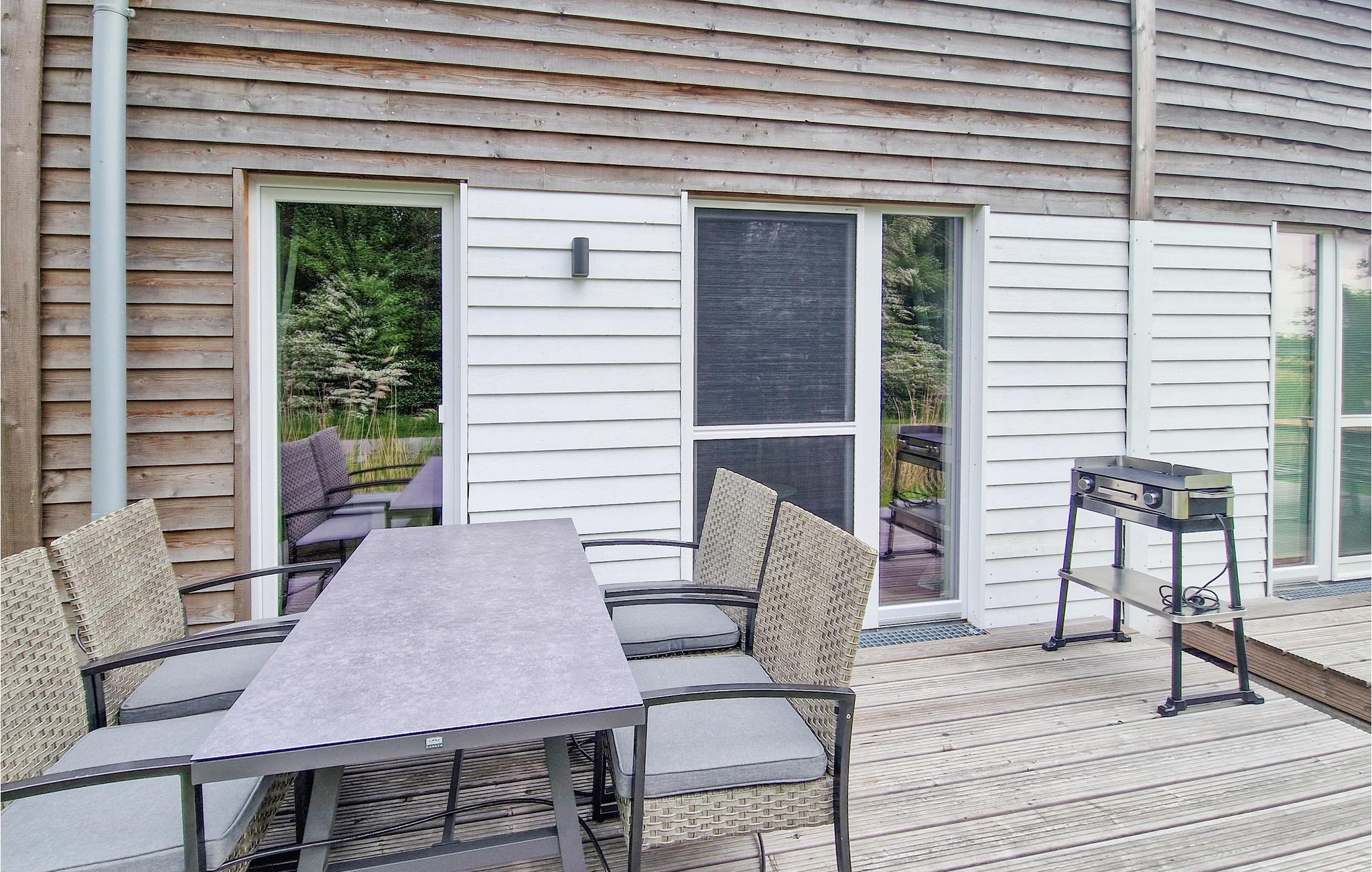 Huset fordeler sig over to etager. I stueetagen er der en åben, hyggelig opholdsstue med en tilstødende haveterrasse og et moderne udstyret køkken, som inviterer til at dvæle gennem vinduerne fra gulv til loft. På kolde dage kan I finde jer godt tilpas foran den indbyggede pejs. Ved siden af opholdsstuen er der lyst badeværelse med brusekabine og infrarød sauna.