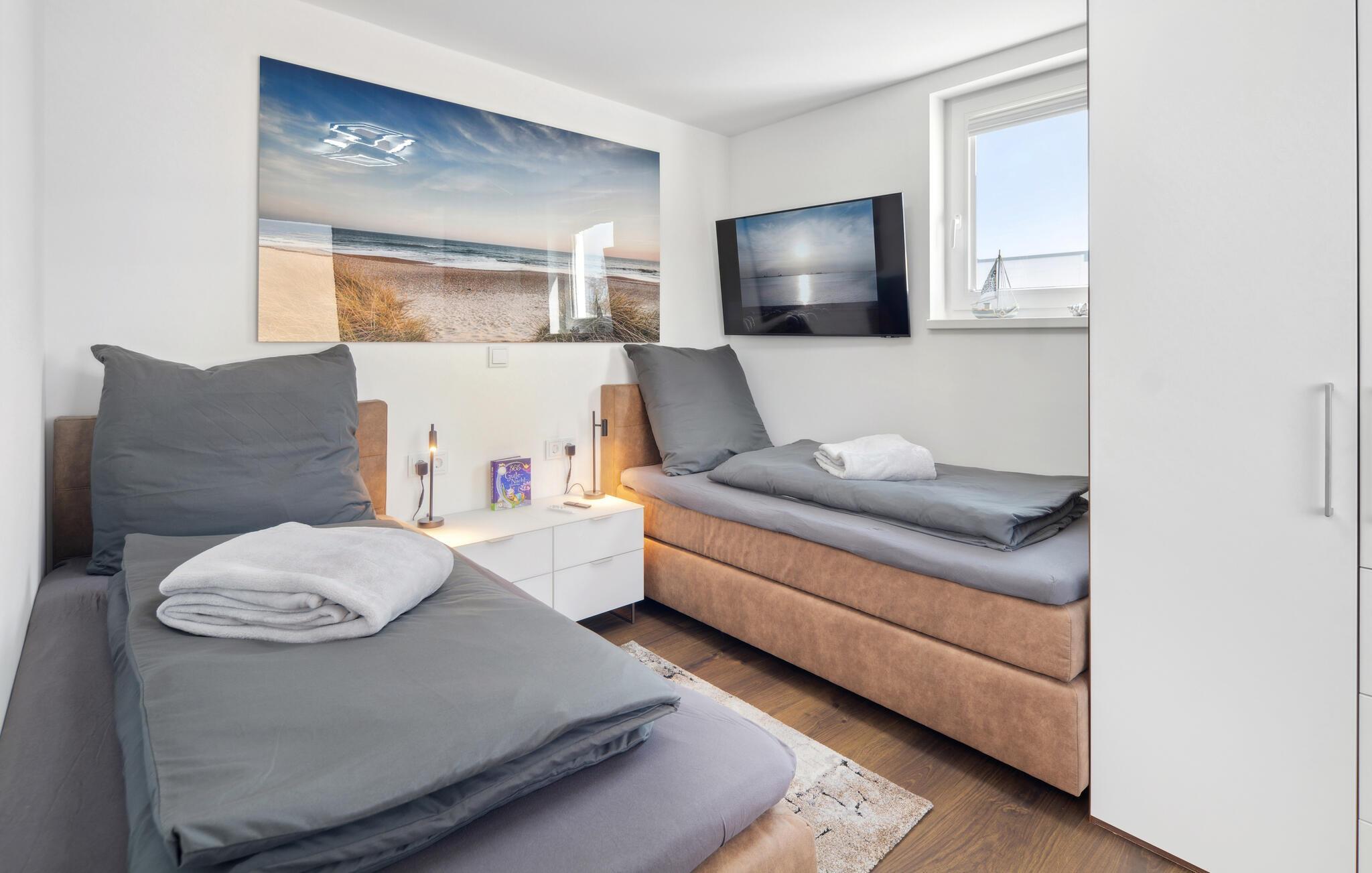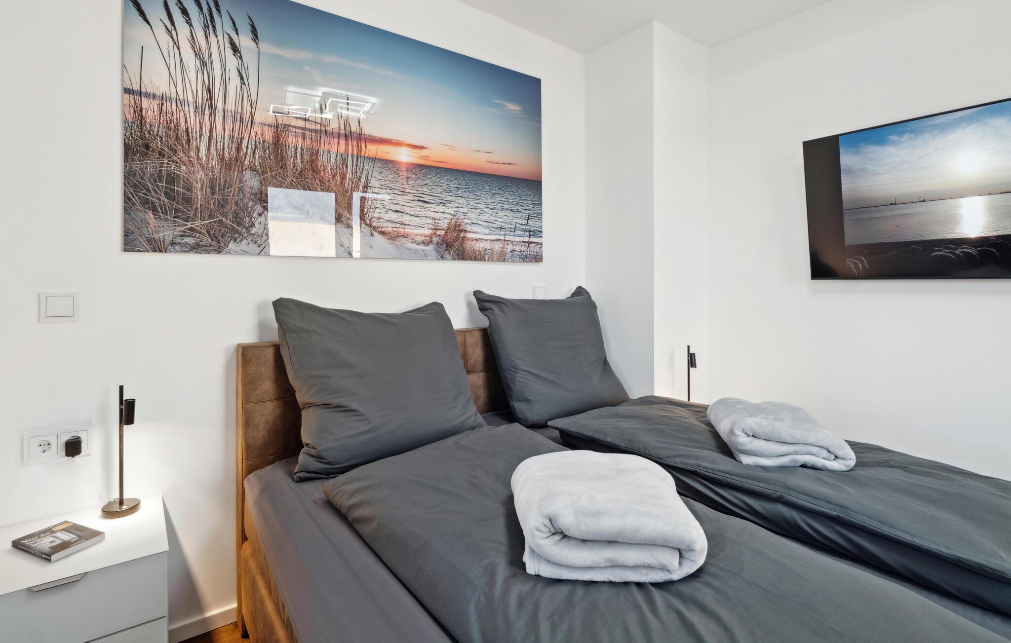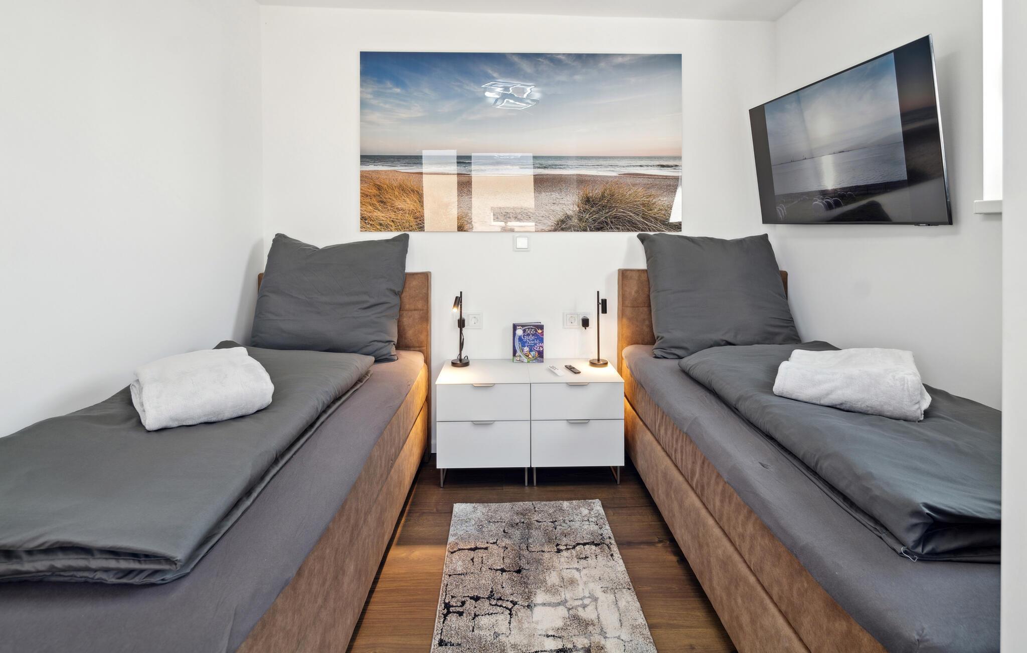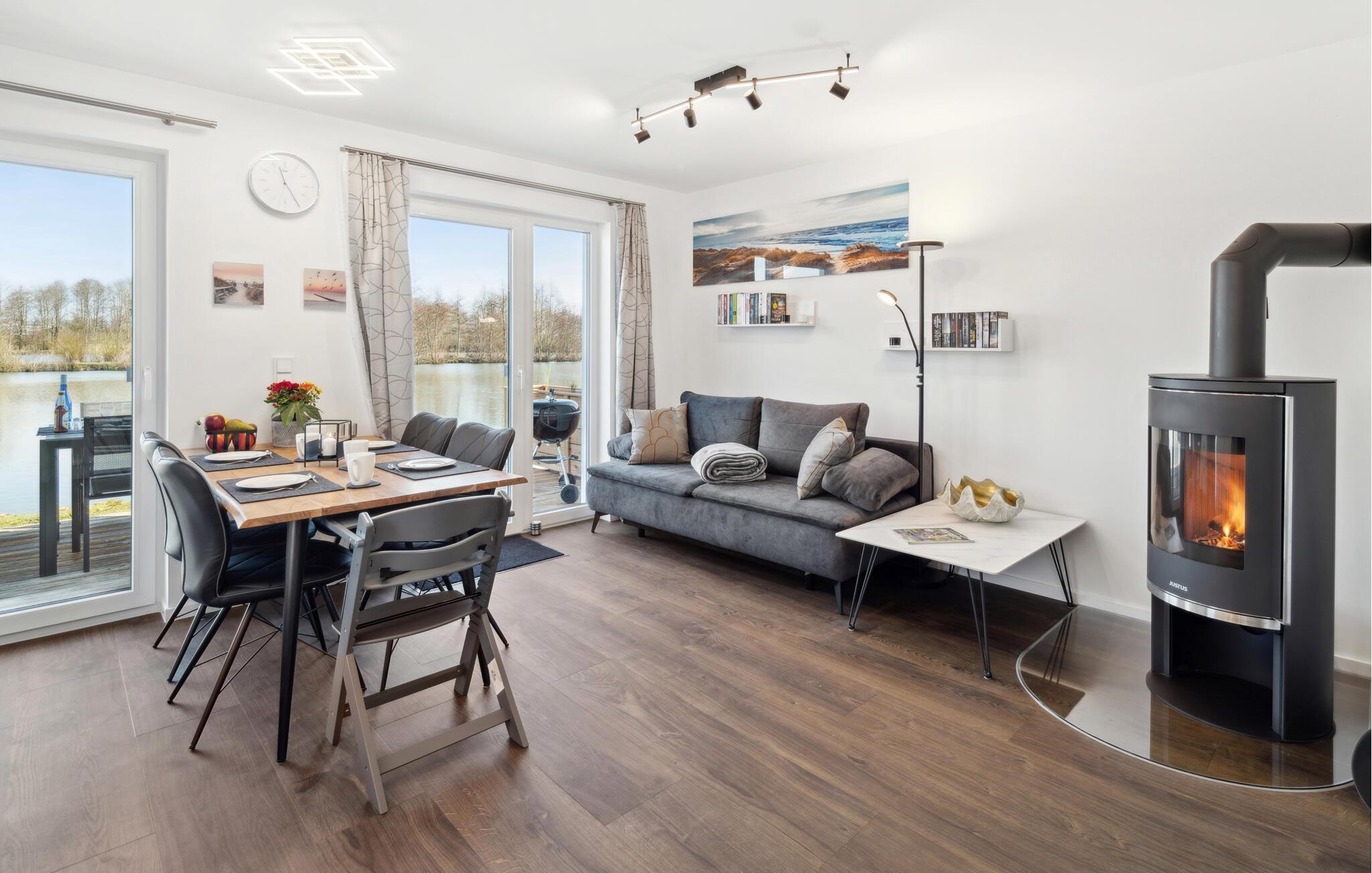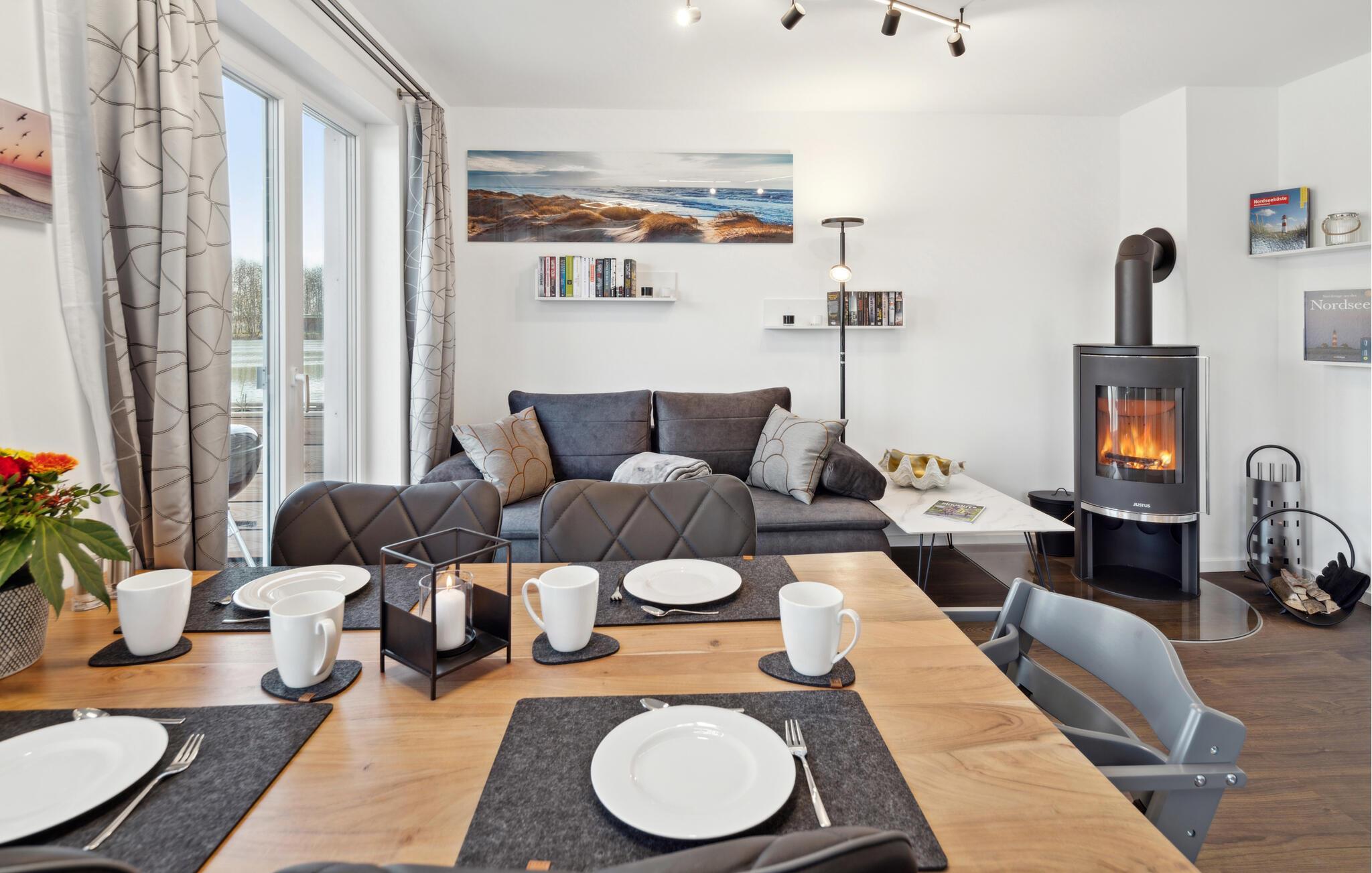 Velkommen til dette indbydende og moderne hus, som har en fantastisk beliggenhed på den smukke halvø Butjadingen ud til Vadehavet og byder på alt, hvad I skal bruge til en afslappende pause med hele familien. Efter dagens aktiviteter og afslapning i den infrarøde sauna kan I slå jer ned i den komfortable sofa, diskutere dagens oplevelser og skabe en særlig hyggelig atmosfære med ild i brændeovnen.